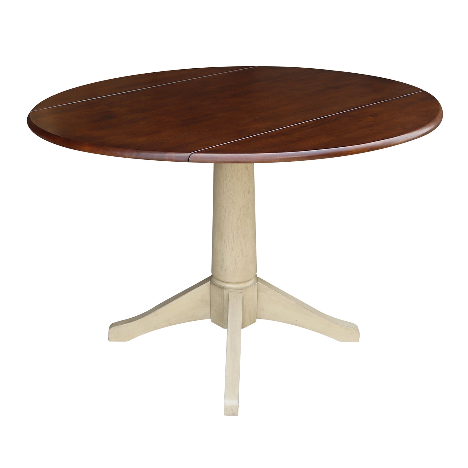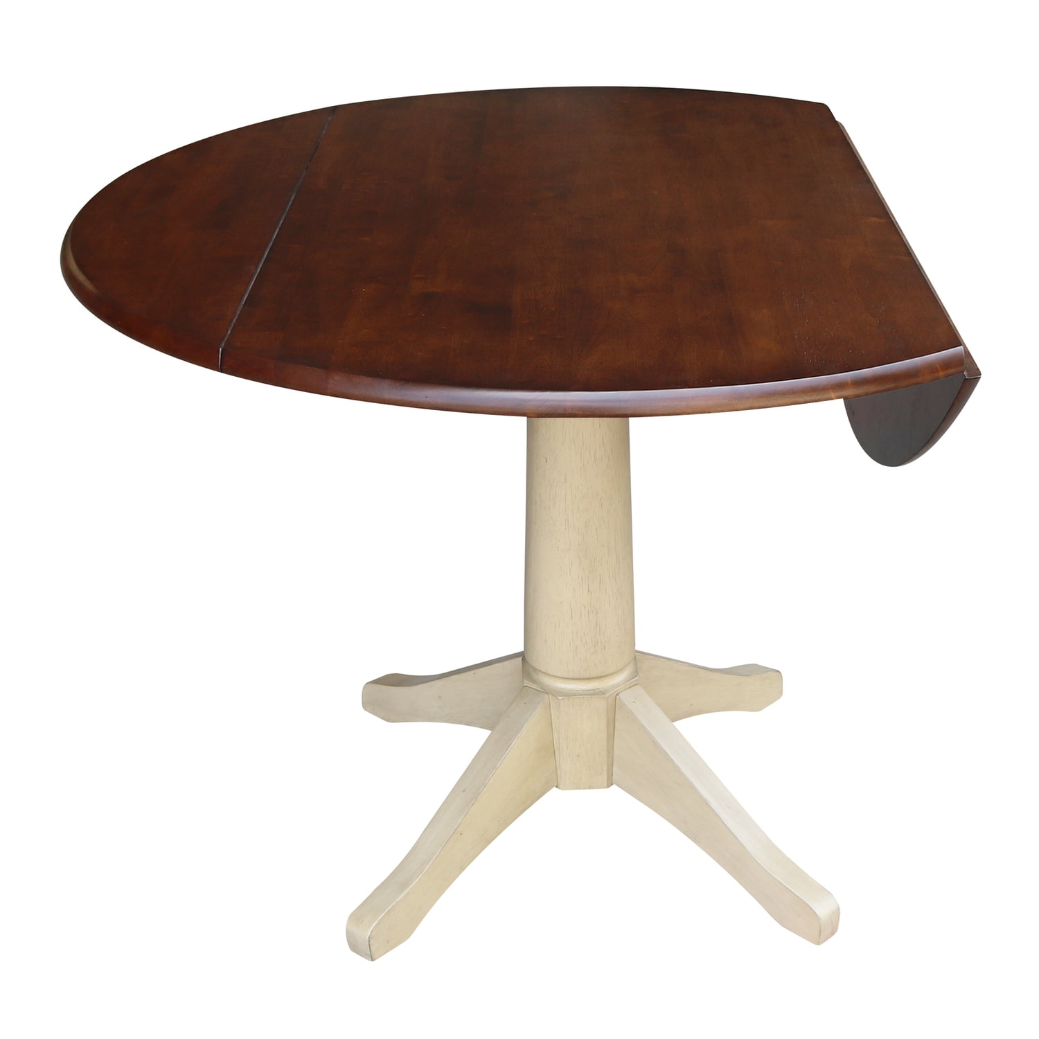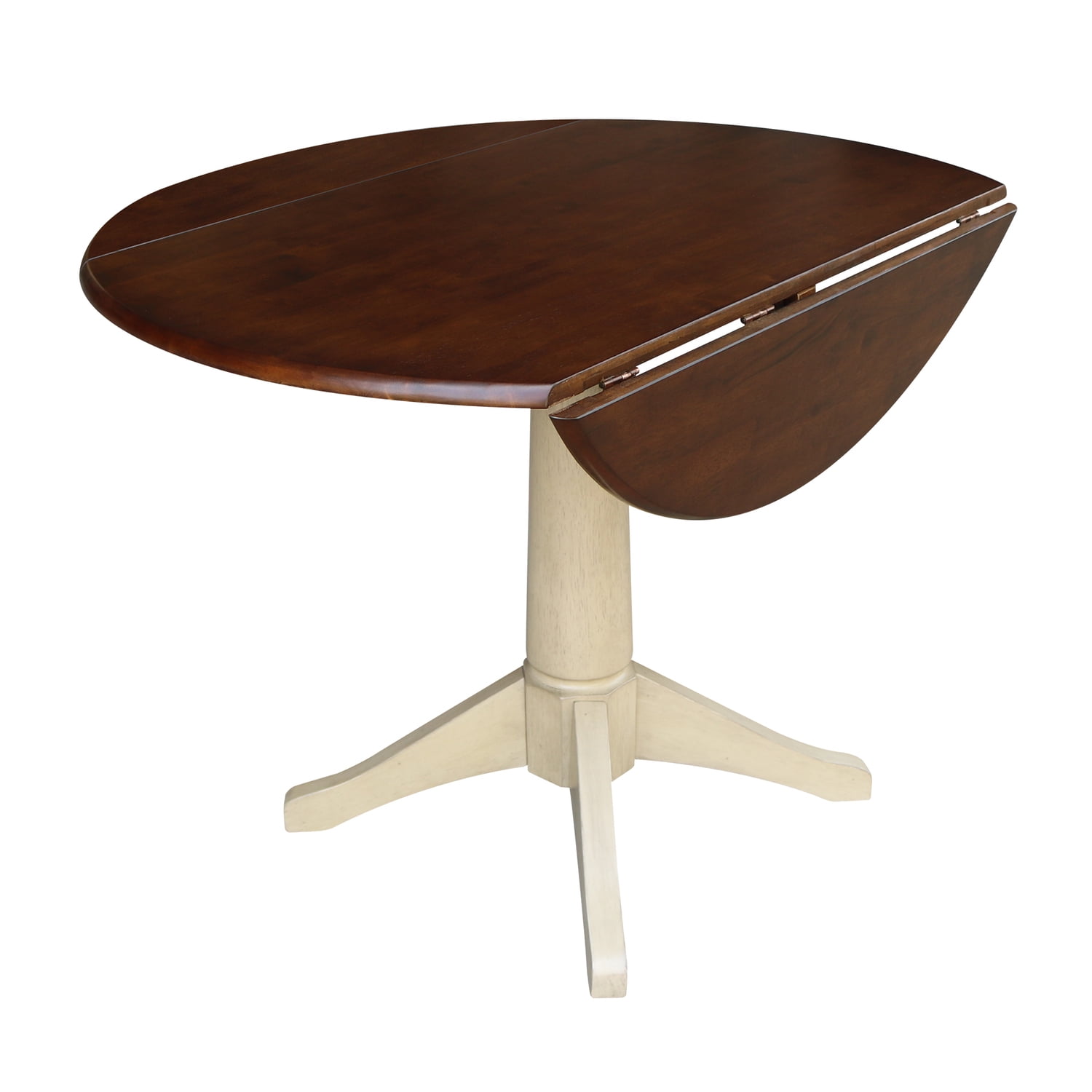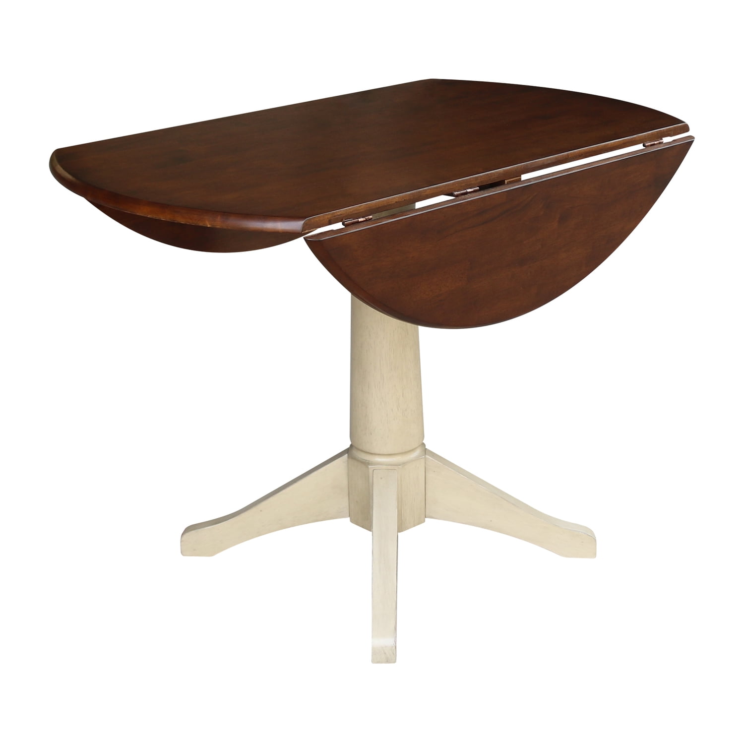 42″ Round Dual Drop Leaf Pedestal Table – 30.3″H Almond Espresso Finish