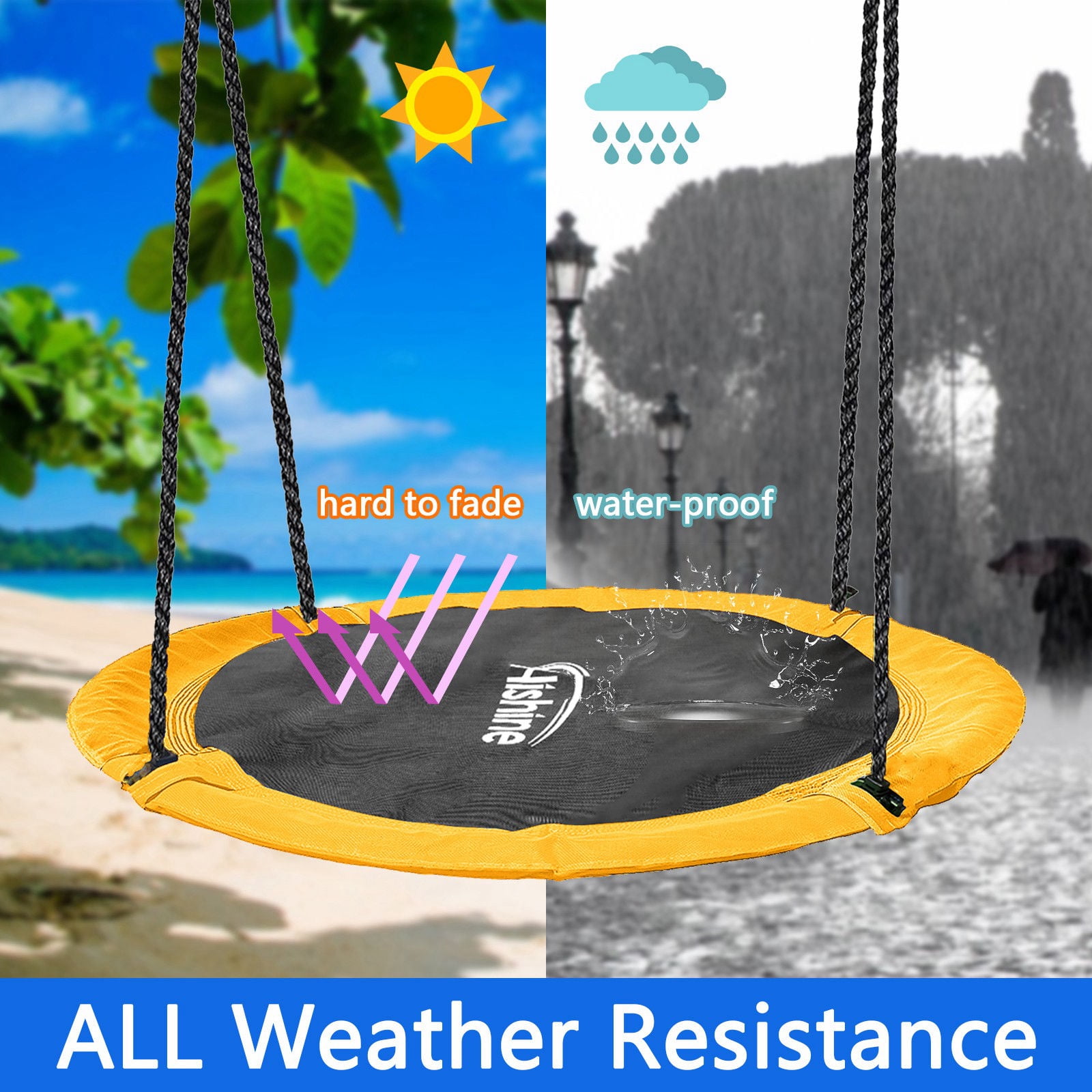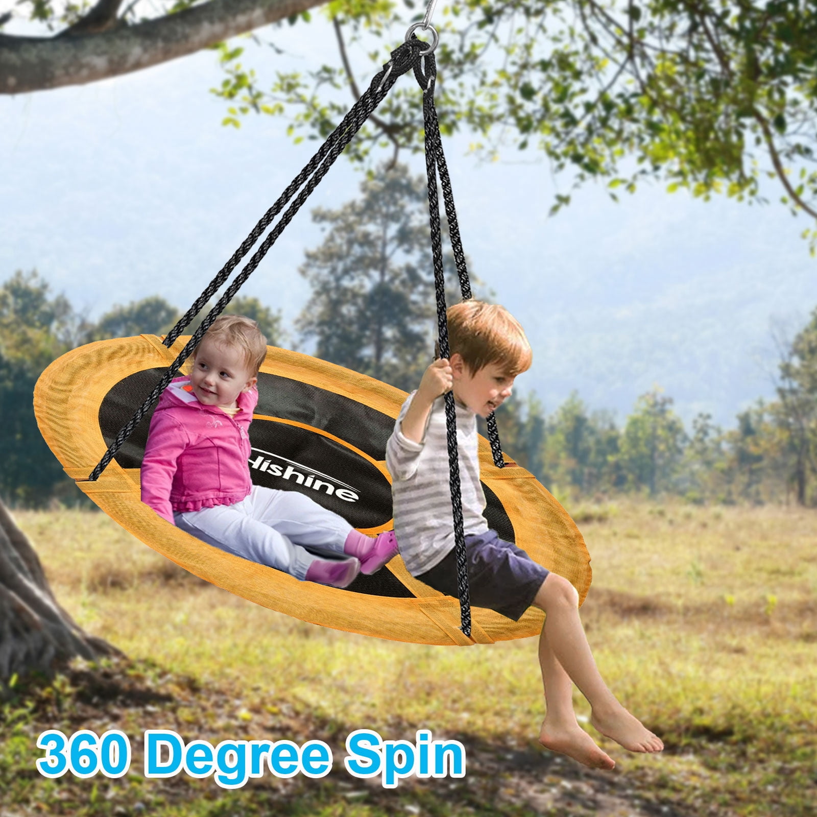 Yorovent saucer tree swings for kids outdoor –Enhance the aesthetics of your backyard with the best saucer swing. Whether you want to relax in the backyard or play with kids, Yorovent round swing is perfect for some fun time. If your lawn has a tree with long branches, you can easily attach the swing and have some fun! Yorovent saucer swing offer a larger space and allows multiple children to sit and relax together,it loads of fun for kids and will get them outdoors in the backyard to play. A tree swing let your kids using their imagination and teamwork to swing or spin as they like,and good for kids growth.