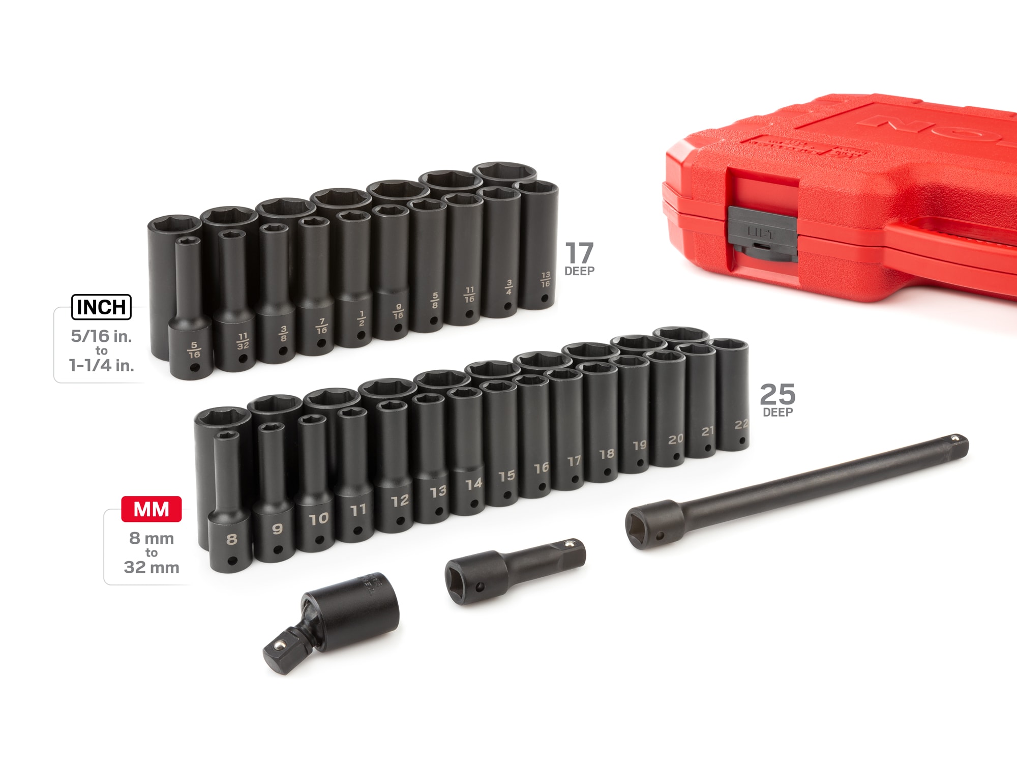 TEKTON impact sockets have both a high-visibility laser marking and a permanent stamped marking that won’t wear off. They’re designed for use with both friction ring anvils and detent pin anvils. Precise 6-point openings provide an exact fit for hex fasteners. Each socket size meets a minimum of 1.3 times the ANSI/ASME standard for proof torque.