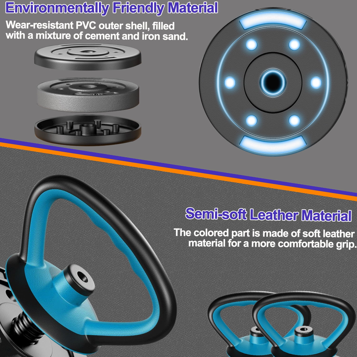 ????【4 in 1 Multifunctional Dumbbell Set】:With it, you can get a pair of dumbbells also barbells, kettlebells, and push-up stands, which help you do many exercises including bench presses, squats, etc. ????【Durable Materials】:Environmentally dumbbell pieces exterior is made of high-quality PE materials, and the inside is mixed with iron, mud, and sand, which effectively prevents floor abrasion. ????【20MM Thickened Foam】:The connecting rod is made of a 5mm thick steel tube + 20mm thick high-quality foam. Curved design fits the neck, which is non-slip and sweat-absorbing, soft and breathable, bringing a more comfortable exercise experience to you. ????【Non-slip Dumbbell Bar】:The surface of the dumbbell bar is made of ABS environmentally material and attached to a non-slip texture, which strengthens the friction of the hand and helps you control the dumbbell better during exercise. ????【Safety Nuts】:The sets contain four safety nuts. Nut thread thickening effectively keeps the dumbbell piece solid, to prevent movement shaking. Ensure your safety in use. info: