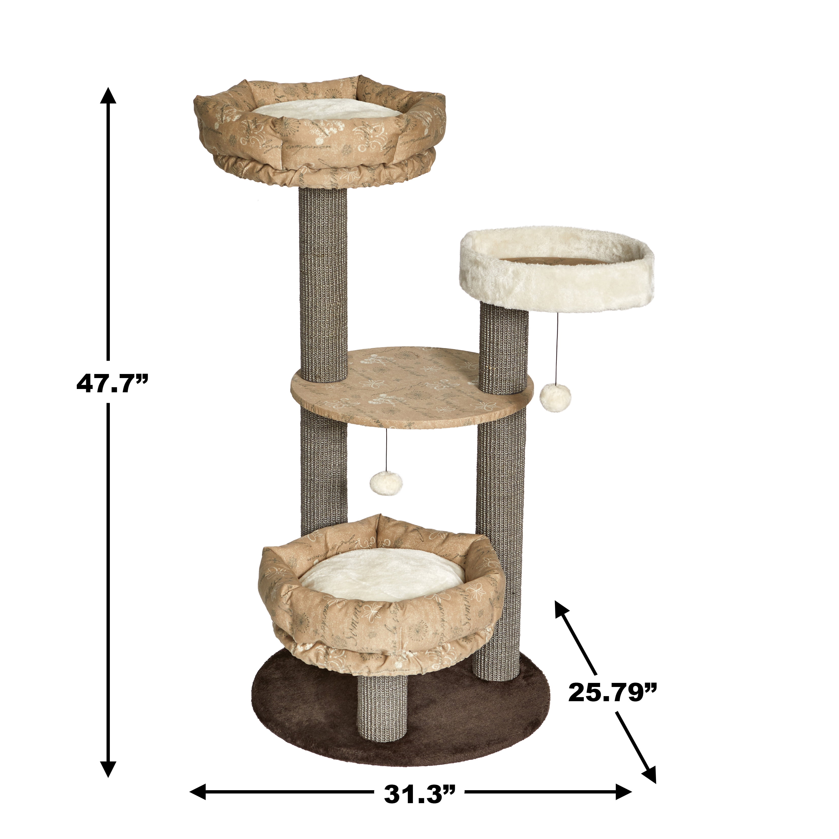 47.7-Inch Feline Nuvo “Summit” Fashionable Cat Tree with Removable Lounging Cat Bed