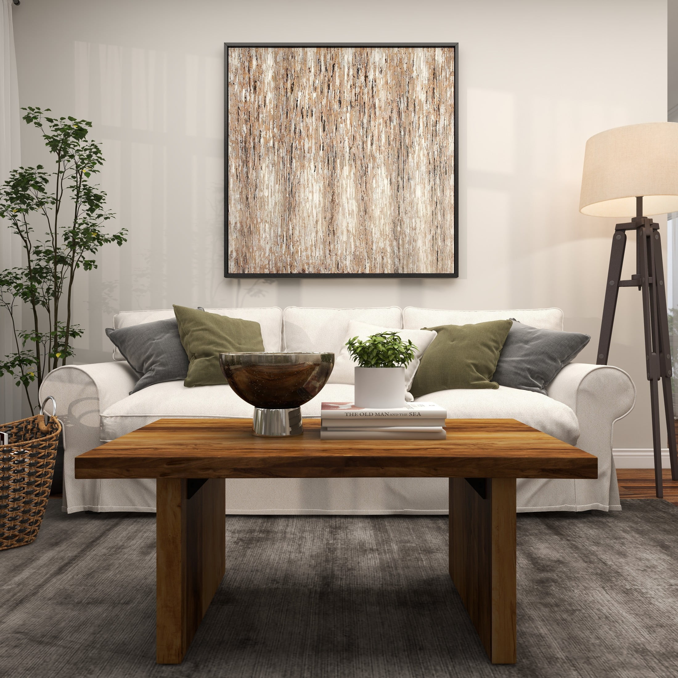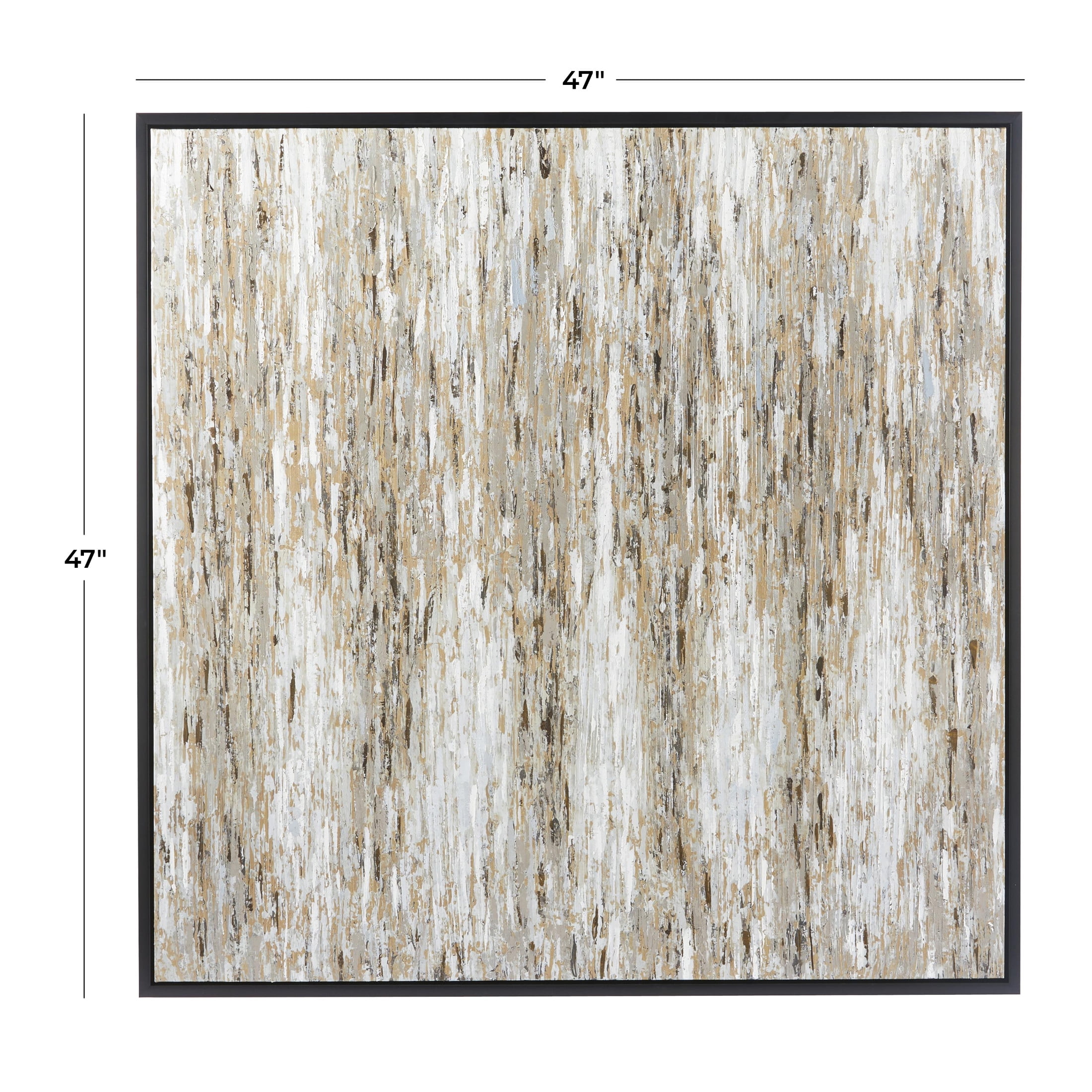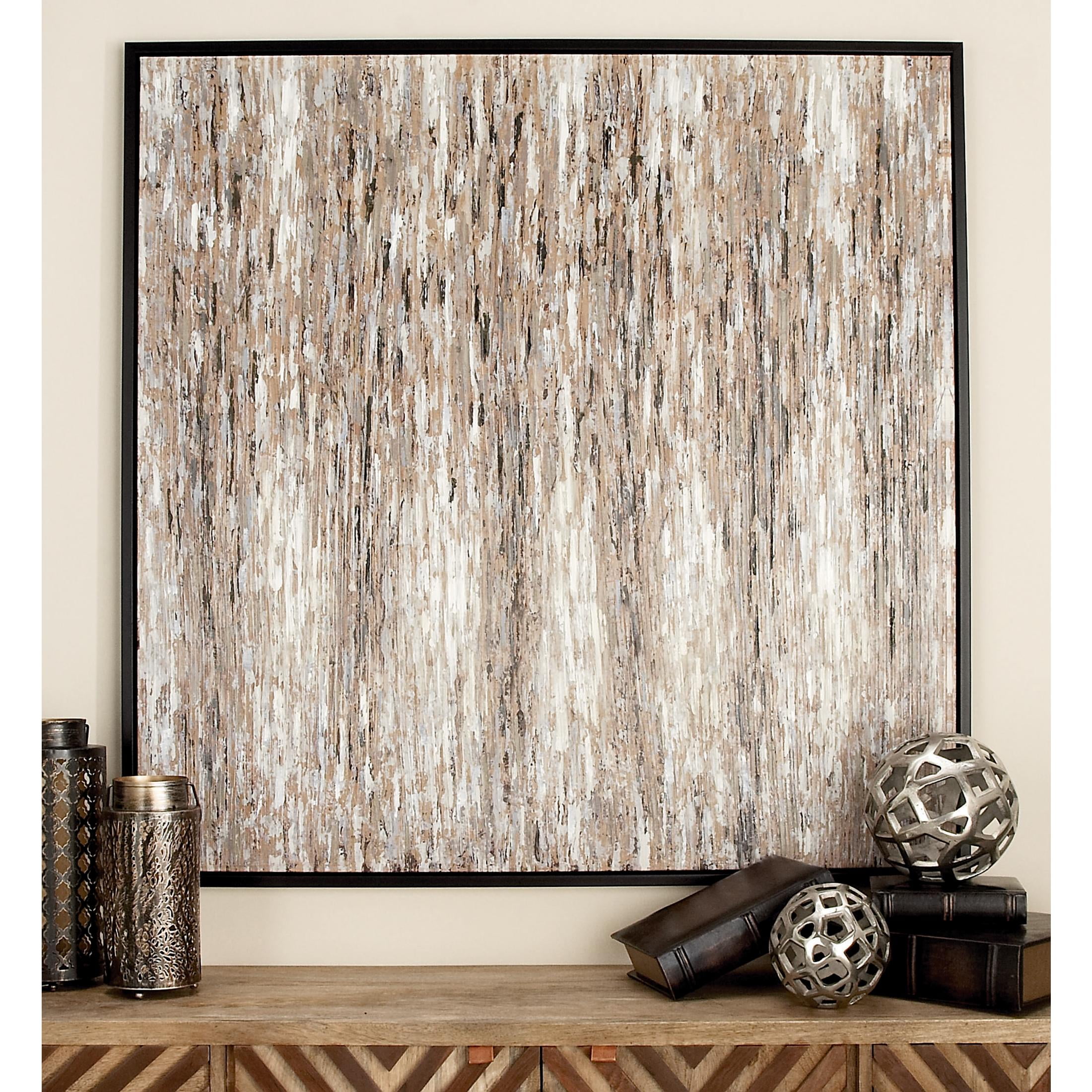 Embrace artistic expression with a style that highlights bold designs with sleek lines, neutral elements, and a minimalist aesthetic This canvas framed art wall decor is made from canvas and fir wood materials This framed canvas art wall decor comes in a clean and crisp white finish and a black fir wood frame This framed canvas wall art features a contemporary style inspired look with a unique abstract design captured in its grainy paint patterns The framed wall art measures 47L x 2W x 47H inches, and weighs 10.5 lbs This canvas framed art wall decor features a rectangular frame with an abstract design on the canvas showing a grainy pattern running up and down Wipe clean with a dry cloth This canvas framed art wall decor is furnished with a wooden frame attached and shaped to form the rectangular design Contemporary style 47″ x 47″ Abstract Framed Wall Art with Black Frame, by DecMode makes a perfect addition to any home