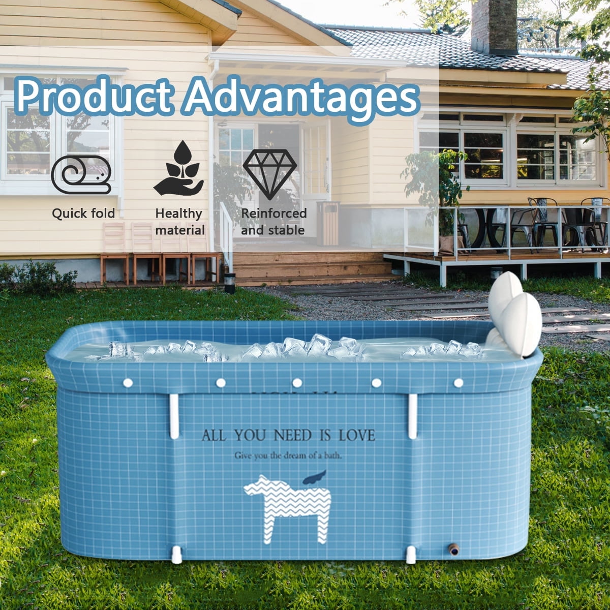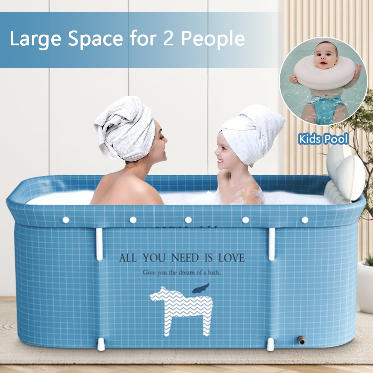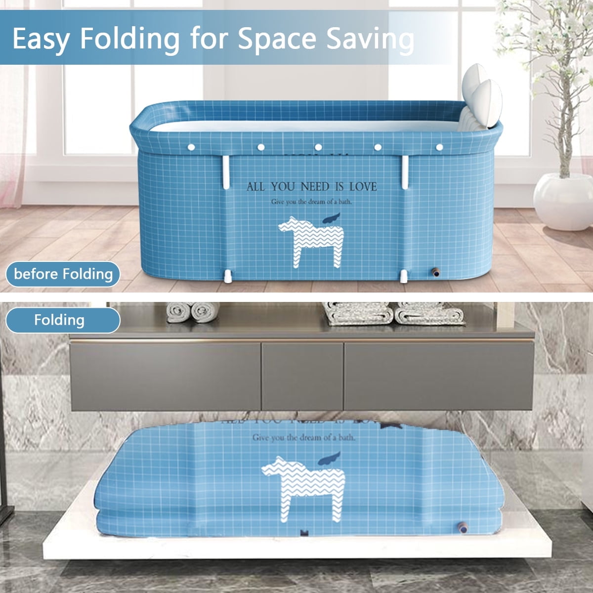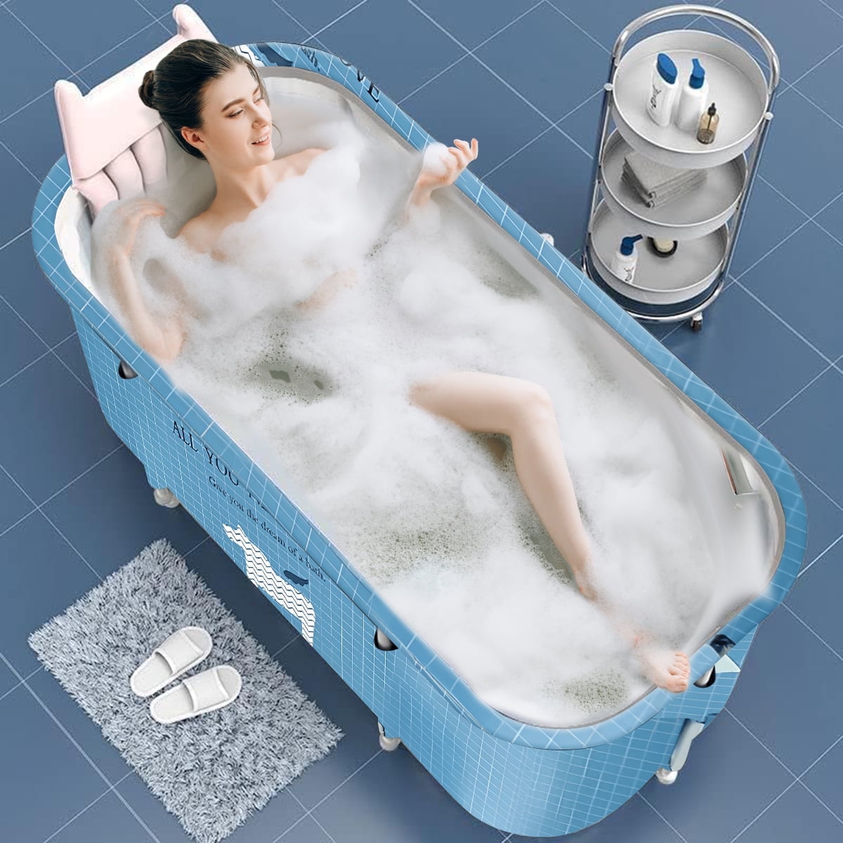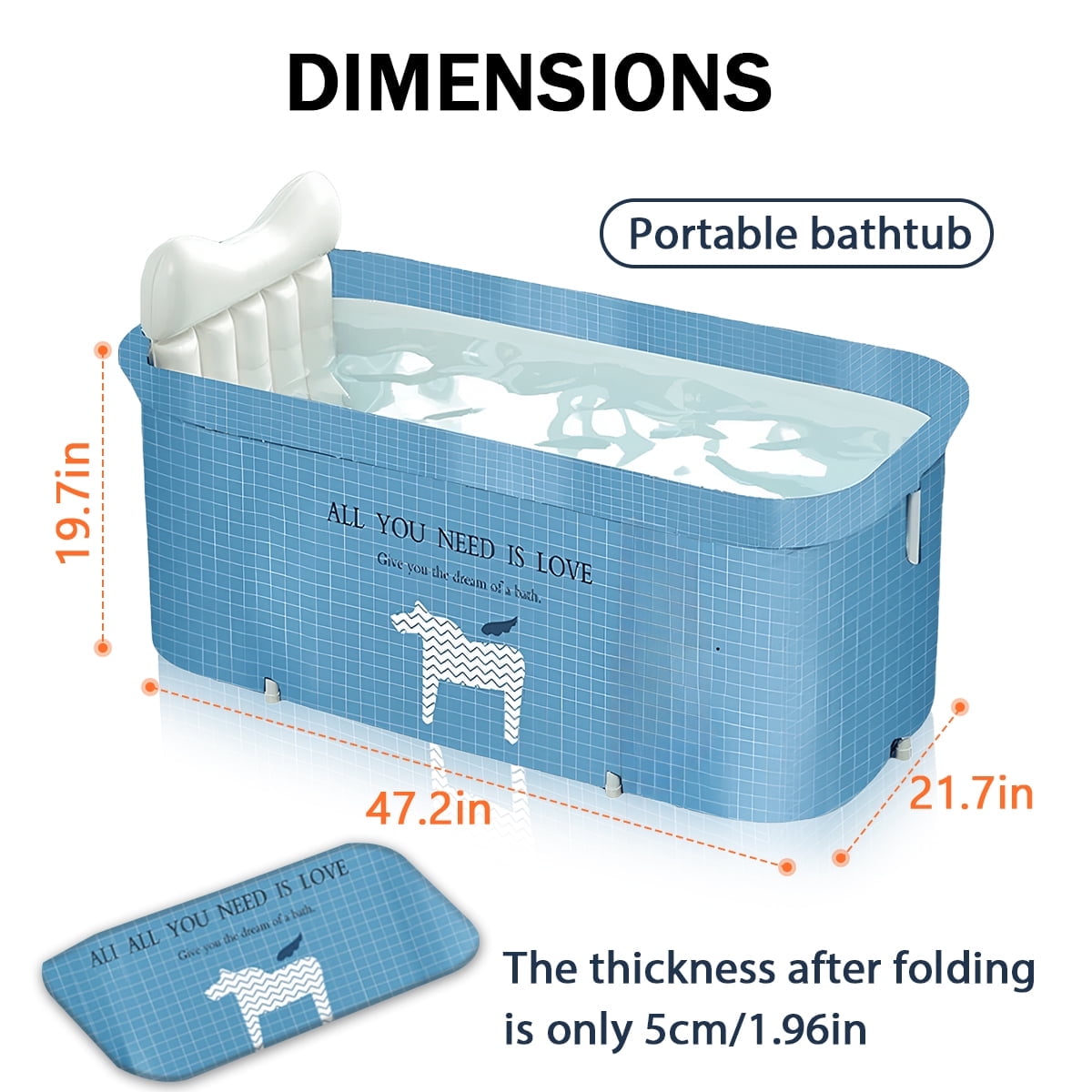 47in Large Portable Folding Bathtub, Hot & Cold Soaking Bath tub, Blue Unicorn(SolarSoda)