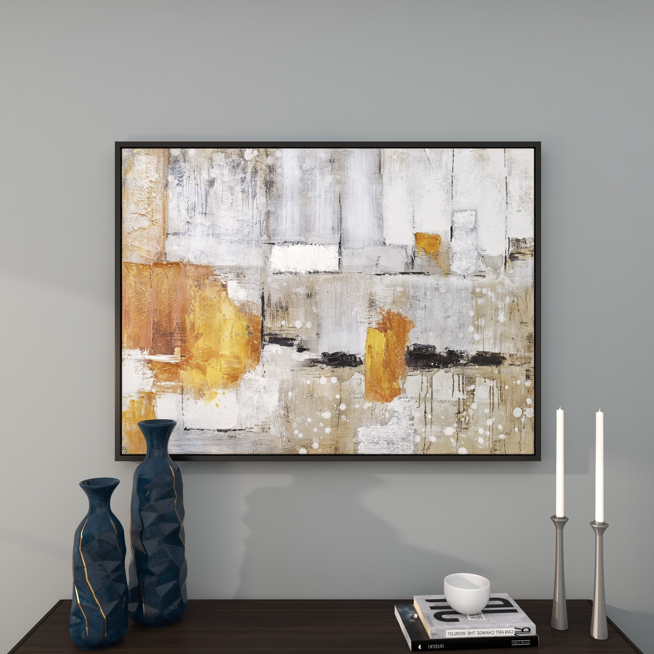 Embrace artistic expression with a style that highlights bold designs with sleek lines, neutral elements, and a minimalist aesthetic The gray living room framed wall art is crafted from polystone, fir wood, and canvas materials This rectangle decorative framed wall art comes in a textured finish with gray, white, and yellow colors within a black frame This canvas framed wall art features a contemporary style with a unique abstract design that captivates the eye The gray canvas framed wall art measures 48L x 1.50W x 36H inches, and weighs 8.58 lbs This textured gray wall framed art showcases an array of abstract shapes, patterns, and intricate details within a rectangular frame Wipe clean with a dry cloth The contemporary framed canvas art is crafted with the abstract-painted canvas encased in a polystone frame with a carved fir wood backing Contemporary style 48″ x 36″ Abstract Framed Wall Art with Black and Yellow Details, by DecMode makes a perfect addition to any home