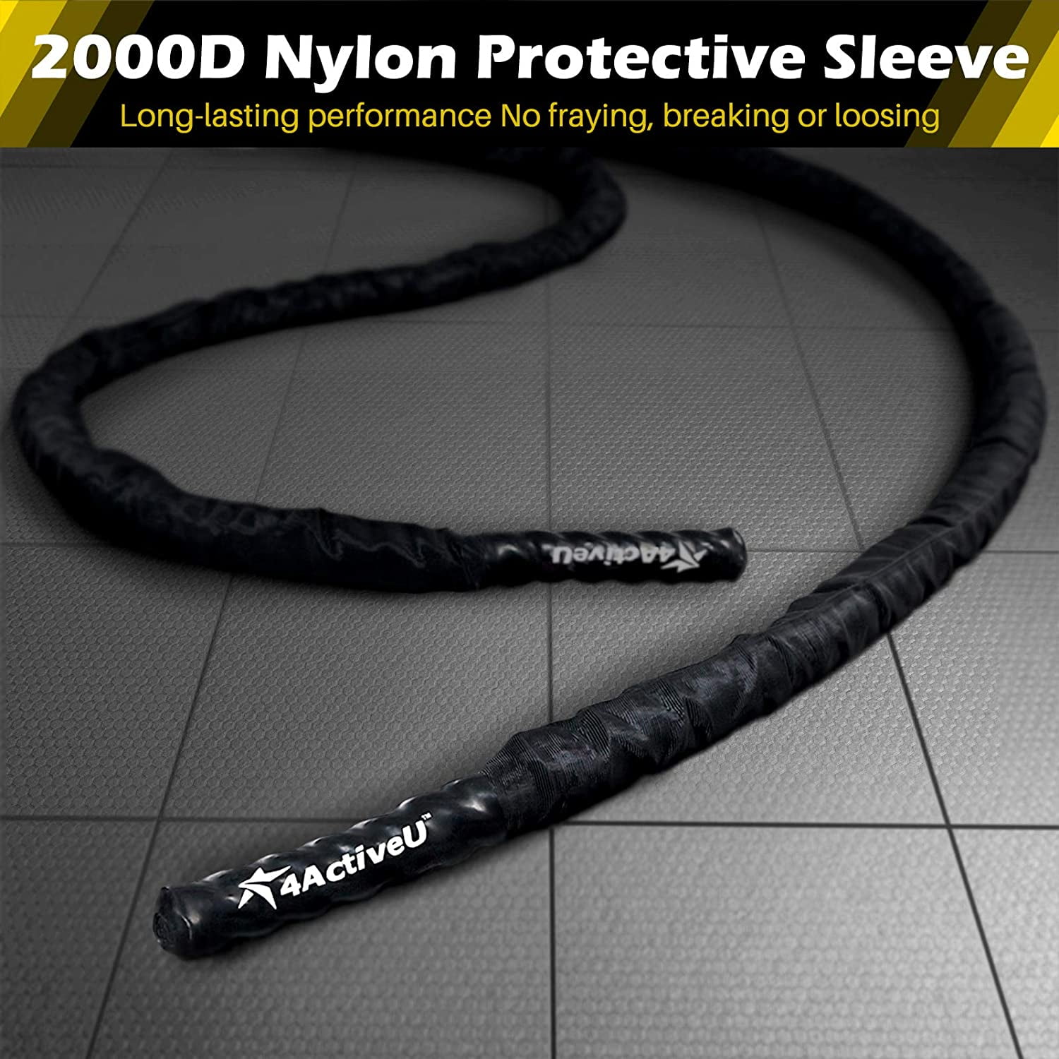 4ActiveU Battle Rope 50ft Length Heavy Battle Exercise Training Rope Workout Rope Fitness Rope for Strength Training Home Gym Outdoor Cardio Workout, Anchor Included 1.5 Inch Diameter
