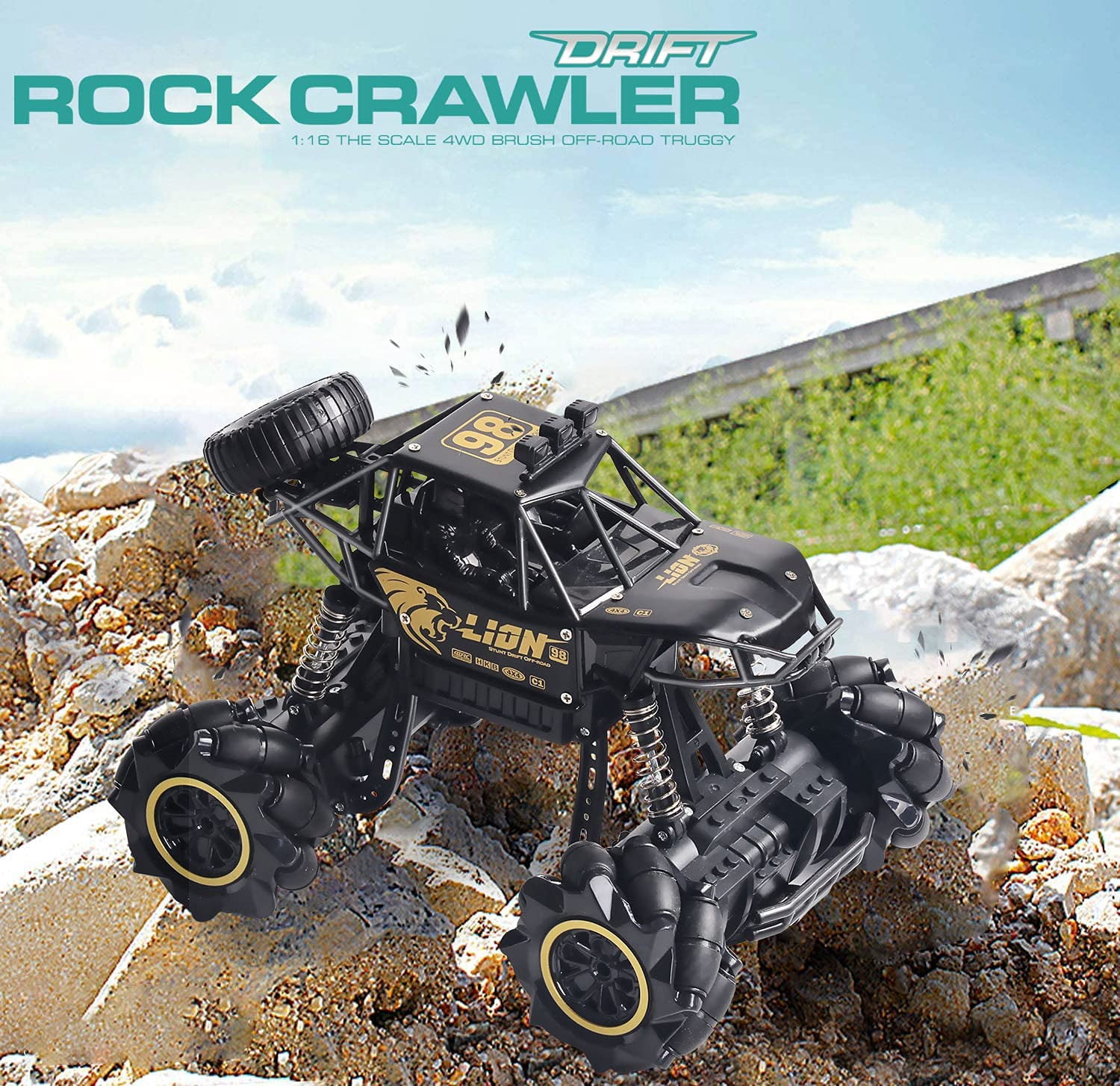 Product function introduction Two control modes: one is to hold the watch in your hand and control the stunt car by changing gestures, the other is to use the remote control to let the car go as you wish. This car takes its owner to a new level of remote control fun. 2.4GHz radio system: With anti-jamming capability, it allows simultaneous races on the same track. 100 meters control distance, free gallop. 4WD Power and Superior Quality: This four-wheel-drive high-speed remote control racing car adopts a powerful built-in motor and excellent and durable alloy materials. It is connected by shock-proof springs, which is very stable, can effectively protect the body and frame, and has a better driving process in different terrains. Exclusive Drift wheel Design : The application of drift tire idea is based on anti-slip diagonal pattern design.Not only can 360°rotation,but also walk sideways,which can offer you more cool experience while playing the RC truck. 3*LARGE CAPACITY BATTERY:In order to extend your entertainment time, we have equipped this car with a 3.7V 700 mAh large capacity rechargeable battery. The battery can run for 60 mins when fully charged. Are you still worried about the short battery duration? Choosing us is the right one, allowing you to enjoy long entertainment time. Product specifications: 27.94 x 16.51 x 15.24 cm; 1.04 kg Batteries: 3 Li-ion batteries are required. (include) Manufacturer’s recommended age: 6 years old and above Item model: 4D-C3 Do you need batteries? Yes Does it include batteries? Yes Material type: metal Including remote control? Yes Colour: Black Recommended age: 6 years old and above Package Included: 1* Remote control car 1*remote control 1*Watch sensor remote control 3* 500mAh rechargeable battery 1*USB charging cable 1*Screwdriver 1*User Manual Brand: 4DRC color: blue Product Dimensions: L x W x H 27.9 x 16.5 x 15.2 cm Product Weight: 2.3 lbs