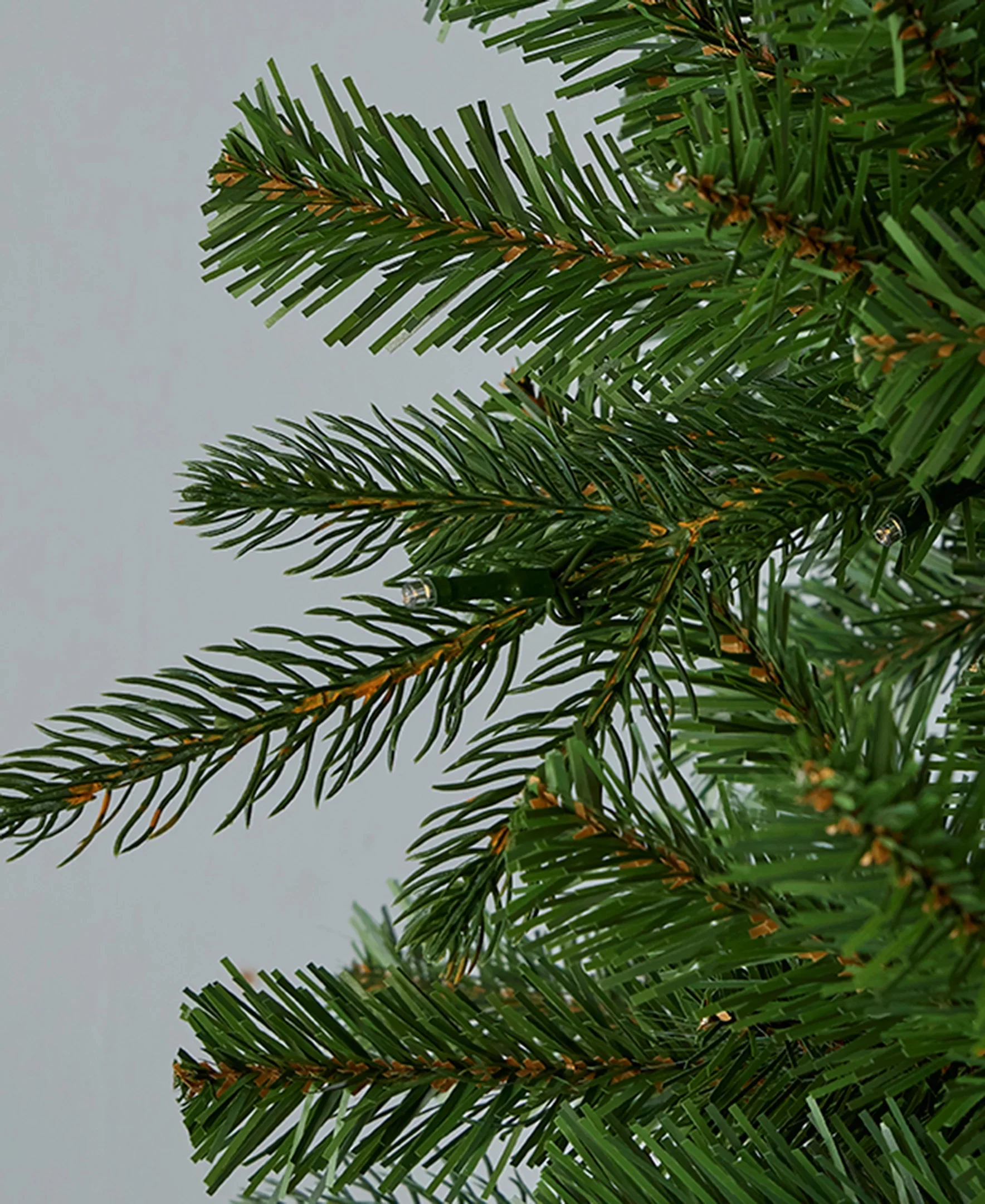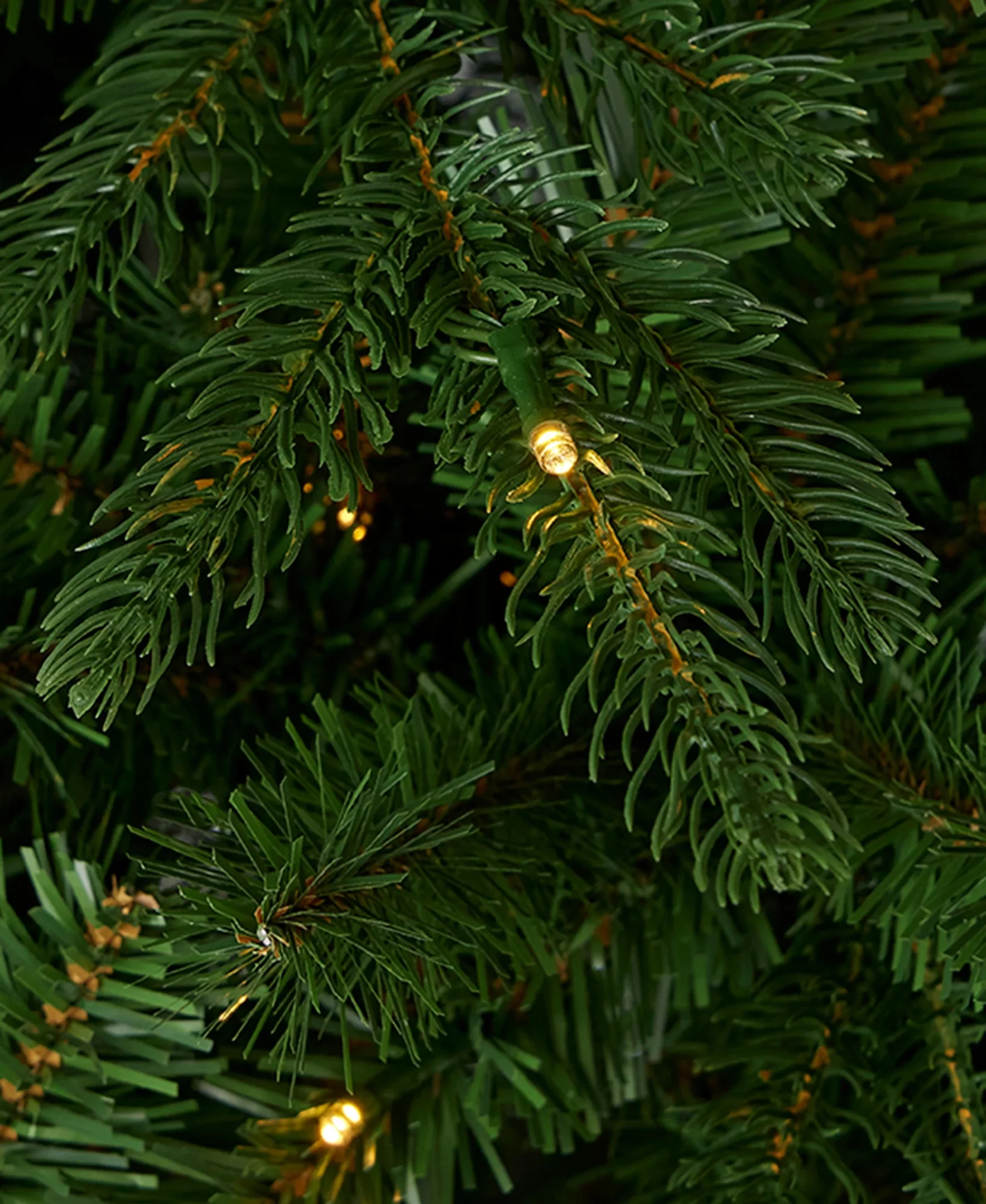 Set of two trees Measures 4 ft. tall with 20” diameter Each tree is pre-lit with 50 UL listed clear lights 312 branch tips each tree Decorative urn base Indoor or covered outdoor use Fire-resistant and non-allergenic 5-year tree warranty / 2-year lights warranty