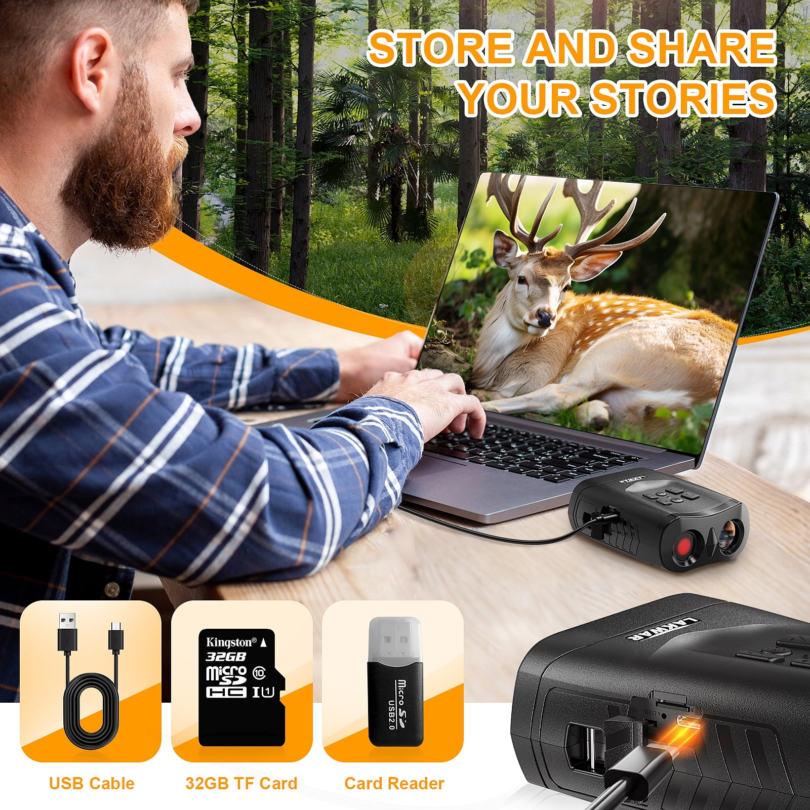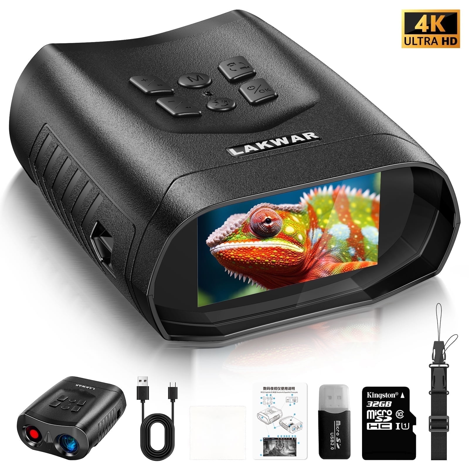 【4K HD Night Vision Binoculars】 – Equipped with military-grade precision, an upgraded CMOS sensor, and 5 IR levels (2.2W-0W). Delivering clear long-distance vision in complete darkness, ensuring you don’t miss a single detail, it is a high-performance adult night vision googles. 【5 Optical Magnification, 1X+2X+3X Digital Zoom】 – The eyepiece offers a magnification range of 5-15x, making it easy to observe targets up close without disturbing them. the nighting binoculars supports photo shooting and 4K video recording and playback, including burst mode, ensuring no exciting moment is missed! 【Compact Outdoor Night Vision Goggles】 – Weighing just 340g (0.74lb), its more compact and ergonomic design makes it easier to hold, providing outdoor enthusiasts with an awesome nighttime experience while no backpack burden. 【3″ Large Screen and High-Capacity Battery】 – The built-in 3-inch HD screen offers an unprecedented visual experience. Powered by a 3000mAh rechargeable lithium-ion battery, the infared binoculars allows for continuous observation and recording for extended periods. 【Exploring the Beauty of Darkness】 -The binoculars with night vision is perfect for camping, fishing, bird watching, hunting, security monitoring, search and rescue, recreational camping, cave exploration, night navigation, night fishing, boating, farm monitoring, wildlife observation, and various other scenarios. Imagine capturing stunning photos and videos in complete darkness, easily saving them to the included memory card, and immediately sharing your adventures with friends. Package: 1 x Night vision binoculars 1 x USB cable 1 x Manual 1 x Strap 1 x 32 GB TF card 1 X Card Reader