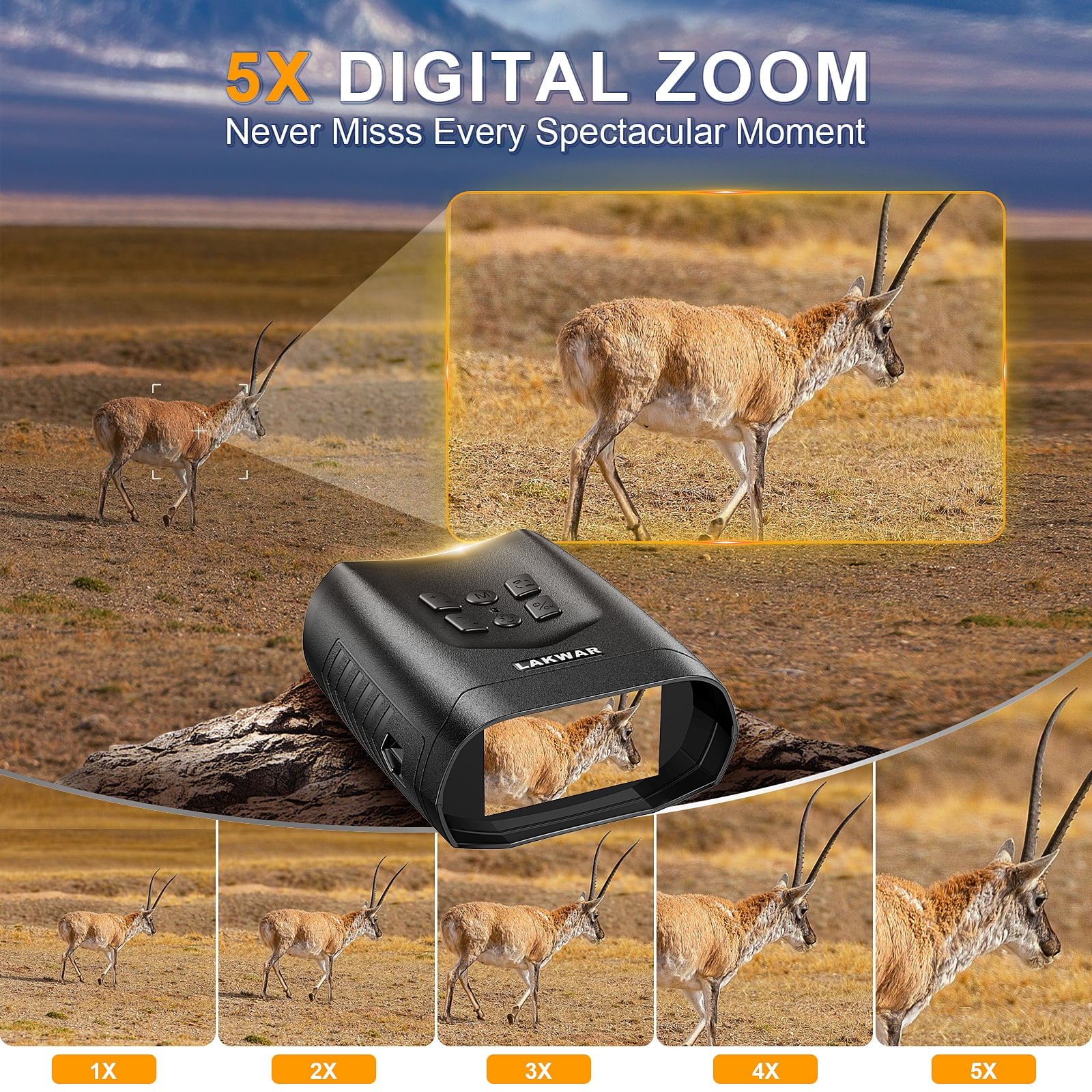LAKWAR Night Vision Goggles-Lightweight (0.74lb) and cost-effective.Features include a high-sensitivity sensor, large 3” screen, 5-level IR LED, 5X Zoom, and support for playback, photos, and videos, 4K resolustion,the goggles capture lifelike details in 100% darkness.This night vision goggles for adult, is perfect for night hunting, reconnaissance, security and surveillance, camping, night navigation, night fishing, wildlife observation, search and rescue, bird watching and landscape photos etc.
