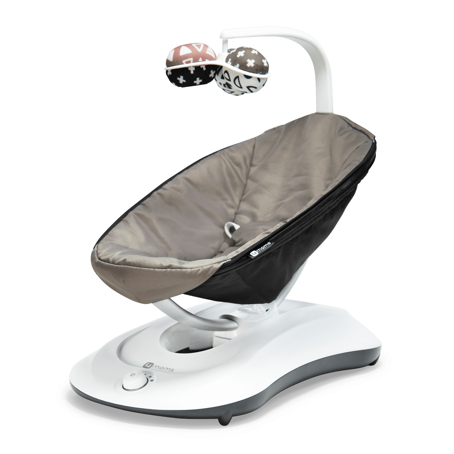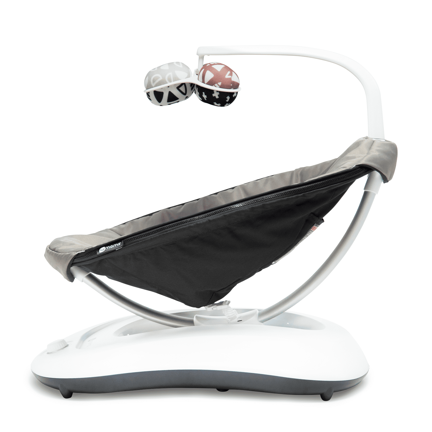 It’s all about our base. The RockaRoo Baby Rocker’s unique base design creates a rhythmic front-to-back motion baby loves. Unlike other rockers, we’ve moved the motion’s pivot point from overhead to under the seat, creating a super compact footprint. Oh, and by the way, you don’t need a parent to power it. It’s automated. Don’t let our small, compact size fool you. The RockaRoo keeps your infant safe and happy anywhere and everywhere in your home. Because at 4moms, nobody puts baby in a corner. While your little one is chilling in the RockaRoo, the interactive toy mobile will keep them entertained and support their sensory development. And, when laundry day rolls around, simply zip off the seat fabric and toss it in the washing machine.