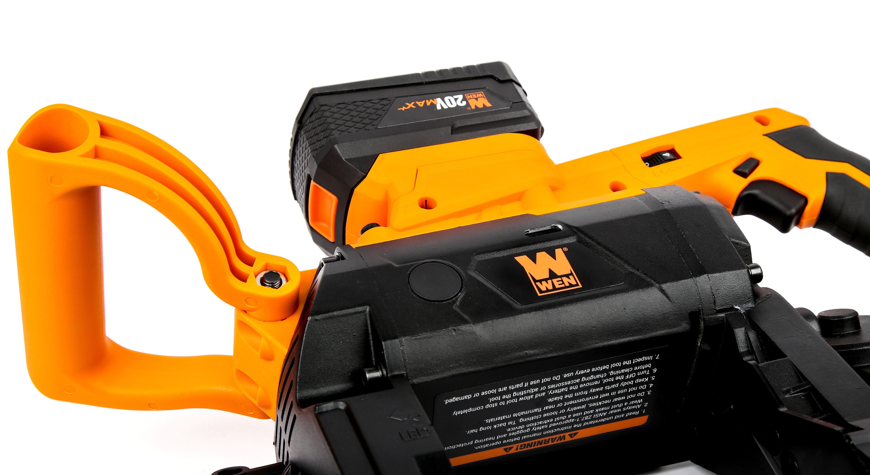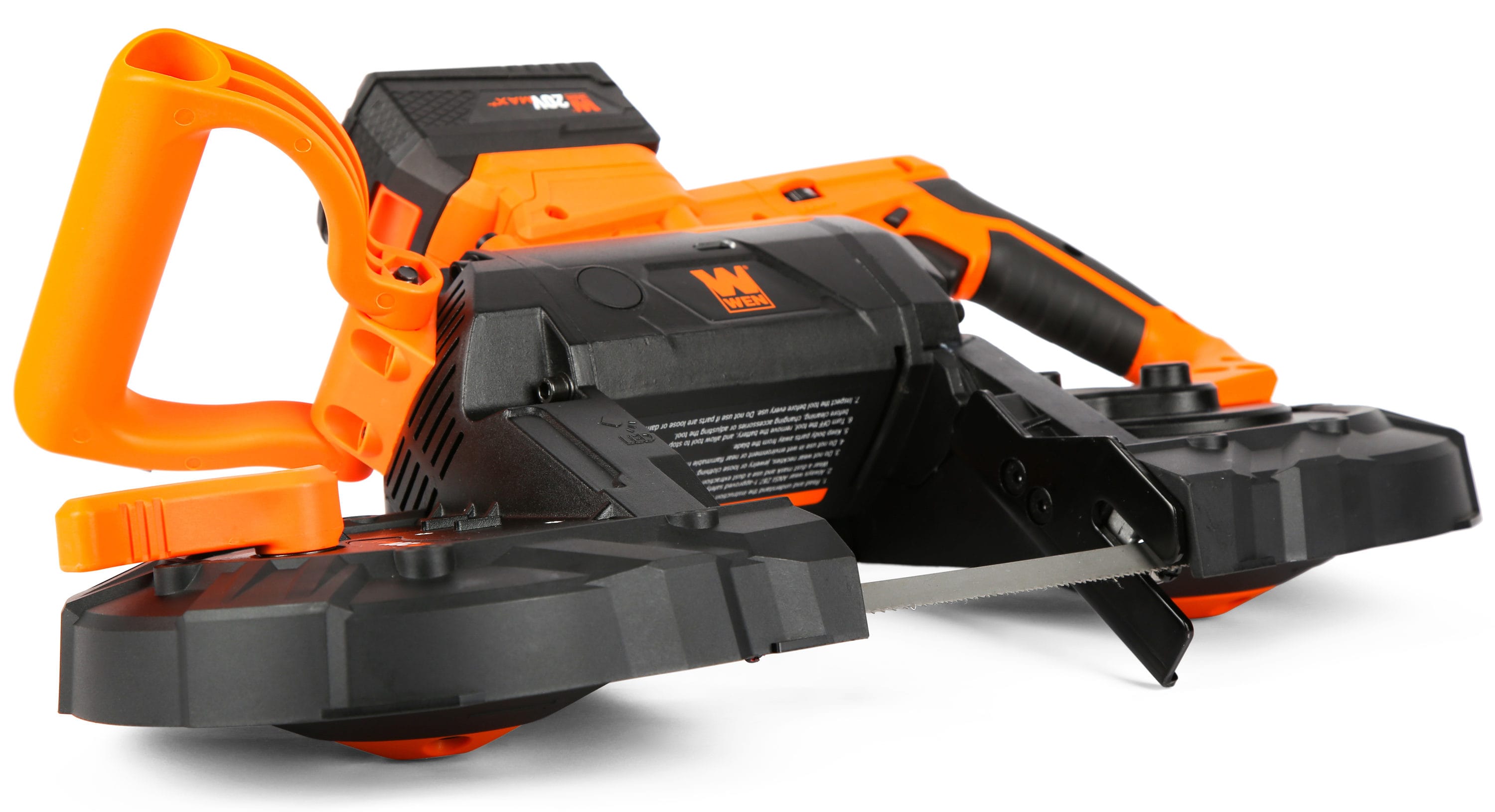 Remember when you could saw through metal, plastic, rebar, pipes, and more? The WEN 20V Max Cordless Portable Band Saw maximizes portability without sacrificing power. Our deep-cut design features a cutting capacity 5 inches wide and 5 inches deep, allowing you to take on workpieces with a variety of shapes and sizes. The onboard variable speed dial runs the blade anywhere from 60 to 420 feet per minute depending on the needs of the material at hand. The lightweight and compact design weighs in at a mere 12.6 pounds, combining with the adjustable front handle to limit fatigue during long days on the job. The included metal-cutting blade measures in at 44-7/8 by 1/2 inches in size (1140 by 12.5 mm), with 10/14 teeth per inch. The included 5.0 amp-hour lithium-ion battery delivers consistently powerful performance at any level of charge, features an onboard LED charge gauge, and is cross-compatible with the entire WEN 20V Max Cordless Lithium-Ion Power Tool line. And, because it’s a WEN product, your portable band saw comes backed by a two-year warranty, a stocked inventory of replacement parts, and a friendly customer phone line, all to make sure you remember WEN.