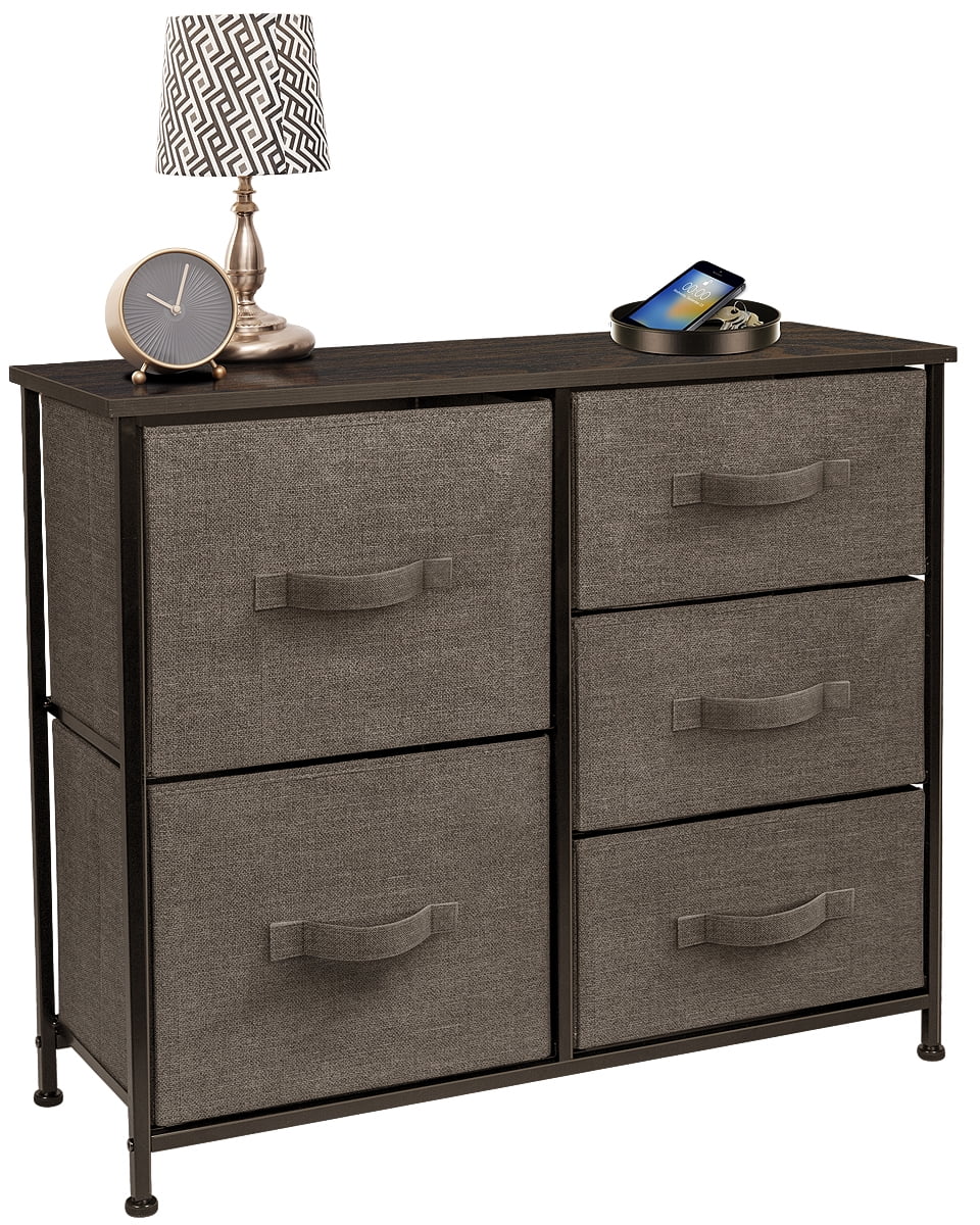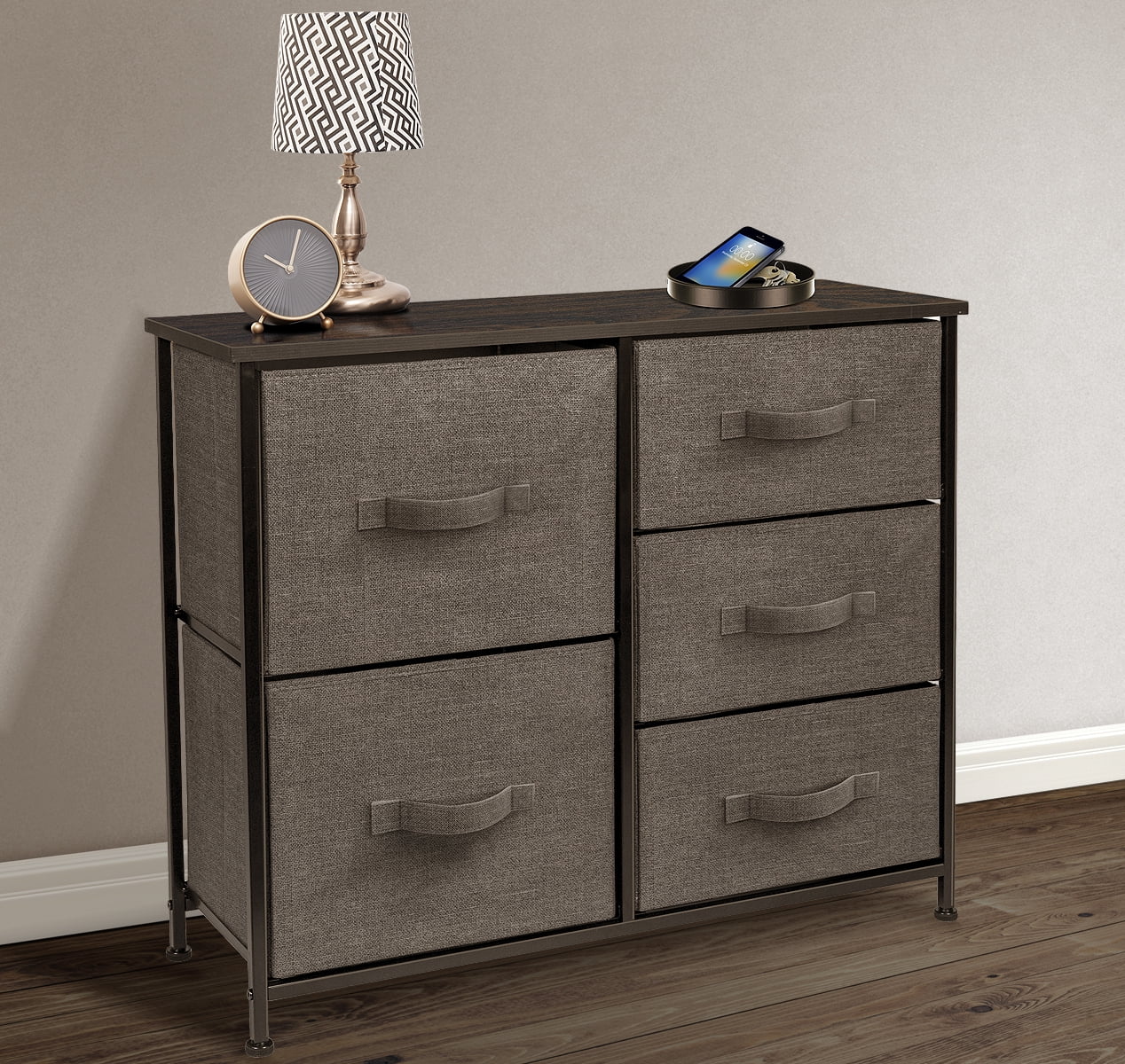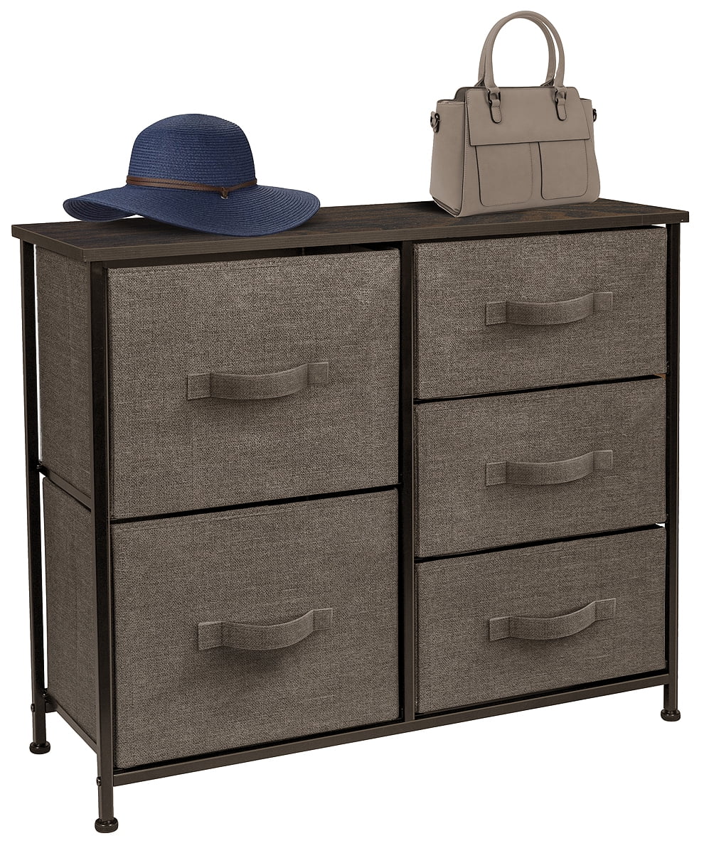 Cozy Organization: Sorbus 5-Drawer Dresser provides a stylish landing spot for household essentials with a beautiful tabletop surface and pull-out drawers. Perfect for Small Spaces: The thoughtful design is ideal for compact living areas and works seamlessly near the bed or sofa, adding charm to any room. Curate Your Haven: Organization enthusiasts will love filling each drawer with clothing, linens, and cherished knick-knacks from around the home. Portable and Convenient: The lightweight frame makes transportation a breeze, and when not in use, fold the fabric drawers flat for easy storage. Versatile Styling: Use as a standalone unit or mix and match with other configurations from the Sorbus Furniture Collection for a personalized and uplifting touch to your space.