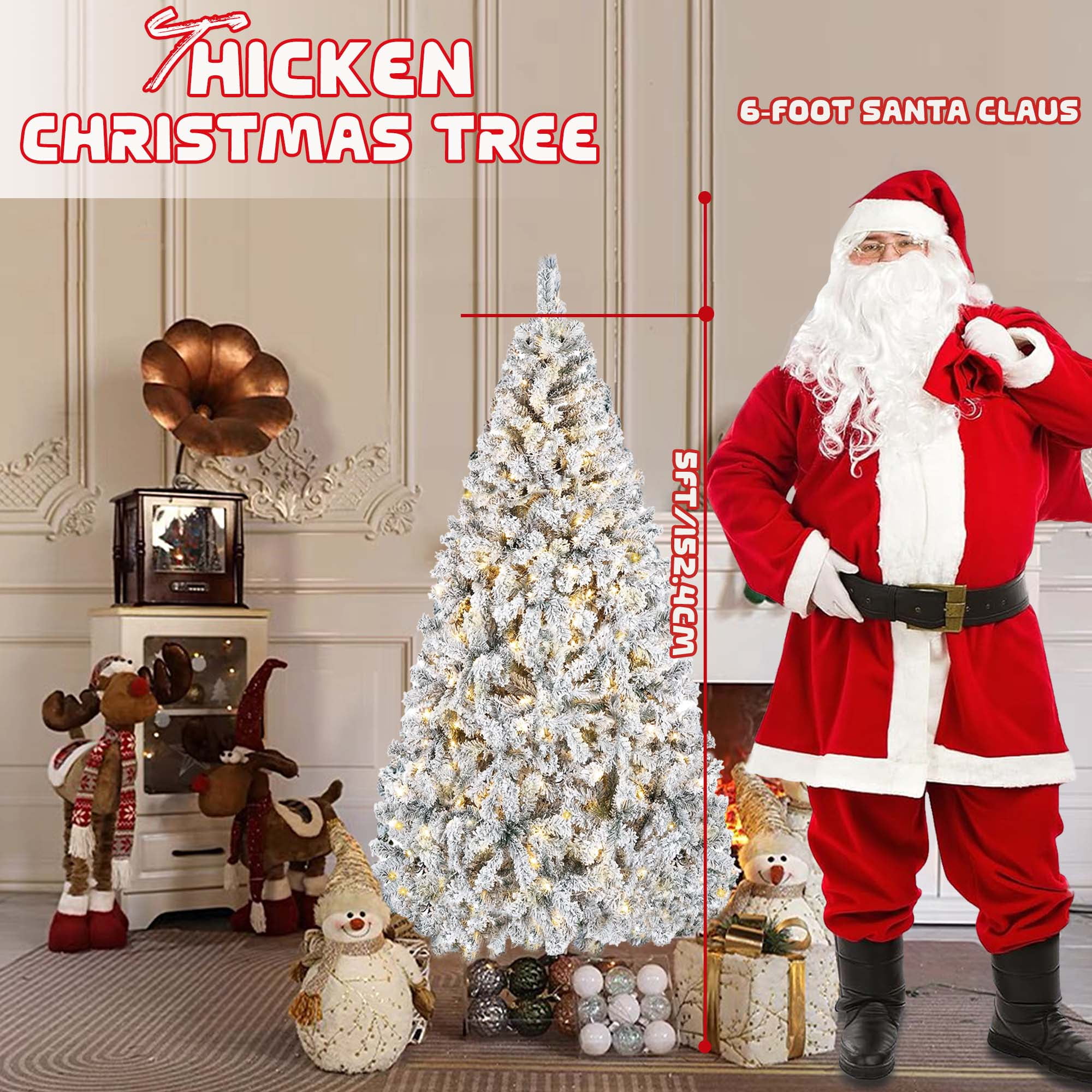Elevate your holiday decor with our exquisite 5-foot pre-lit artificial Christmas tree. Featuring a snow-flocked design, this full-bodied pine tree boasts 150 warm-white LED lights with 8 dynamic lighting modes, allowing you to create the perfect festive ambiance. Crafted with durable PVC branches and a sturdy metal stand, this tree is easy to assemble and can be conveniently stored in two sections when not in use. Gather your loved ones and enjoy decorating this stunning centerpiece, transforming your space into a cozy winter wonderland. Transform your holiday season with our exquisite flocked artificial Christmas tree! Crafted from durable PVC, its realistic flocked tips and abundant branches create a stunning centerpiece for any home or business. Enjoy effortless assembly with a convenient hinged system and pre-installed lights, while the foldable stand makes storage a breeze. Picture the joy of decorating with loved ones, hanging ornaments, and creating cherished memories around this enchanting tree. Elevate your festive charm and make your holidays unforgettable! Features: Fire-Resistant Materials: Branches and tips are made of anti-flaming PVC to ensure a safe usage.Environmental-friendly and non-allergenic. Frosted Christmas Tree: Snow flocked branches and tips give a unique winter feel with natural elegant appearances 8 Modes led Lights(Memory Function): Warm toned lights bring festive atmosphere to your sweet home with extra spare bulbs. Combination /In Waves/Sequential/Slo-Glo/Chasing/FlashSlow Fade/Twinkle/Flash/Steady on Fodable Metal Stand: Sturdy metal stand with non-slip foot pads to ensure strong support for the tree. Simple Set-Up: 2 sections of hinged tree body that require easy insertions,branches automatically fall into places. Specification: Color: Green+Snow flocked Material: PVC + Iron Christmas Tree Style:Artificial Christmas Trees Style: Triangular Overall Dimensions: 2.5FT x 5FT(Dia x H) Number of Tips: 400 Number of LED: 150 Net Weight: 10.45 lbs Package Includes: 1 x Pre-Lit Flocked Snow Christmas Tree 1 x Metal Stand
