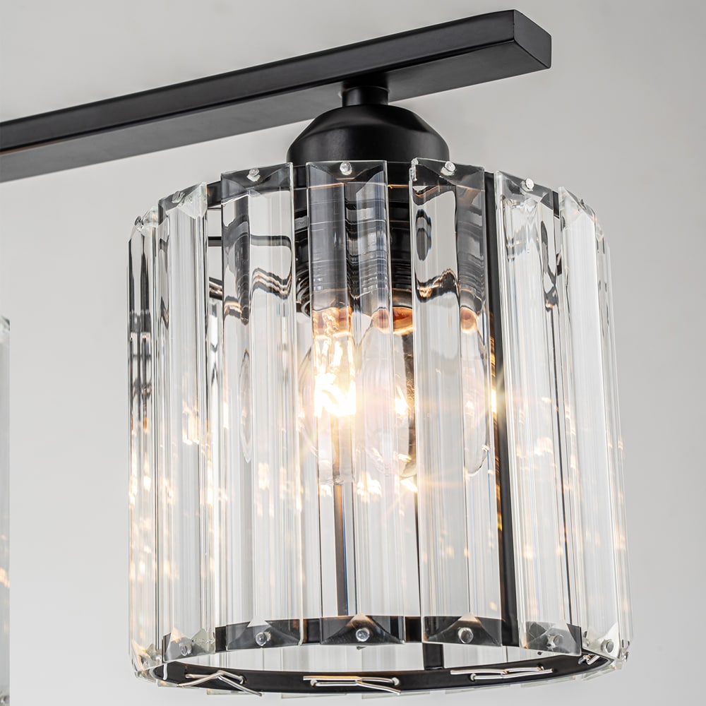 This contemporary three-light wall sconce features classic clear glass shades paired with a matte black and brushed nickel metal frame making it suitable for various interior styles from sleek modern to cozy farmhouse. The robust metal frame ensures long-lasting corrosion-resistant performance while the three clear glass shades create a warm and inviting atmosphere perfect for lighting up your dressing table bathroom vanity or entryway.
