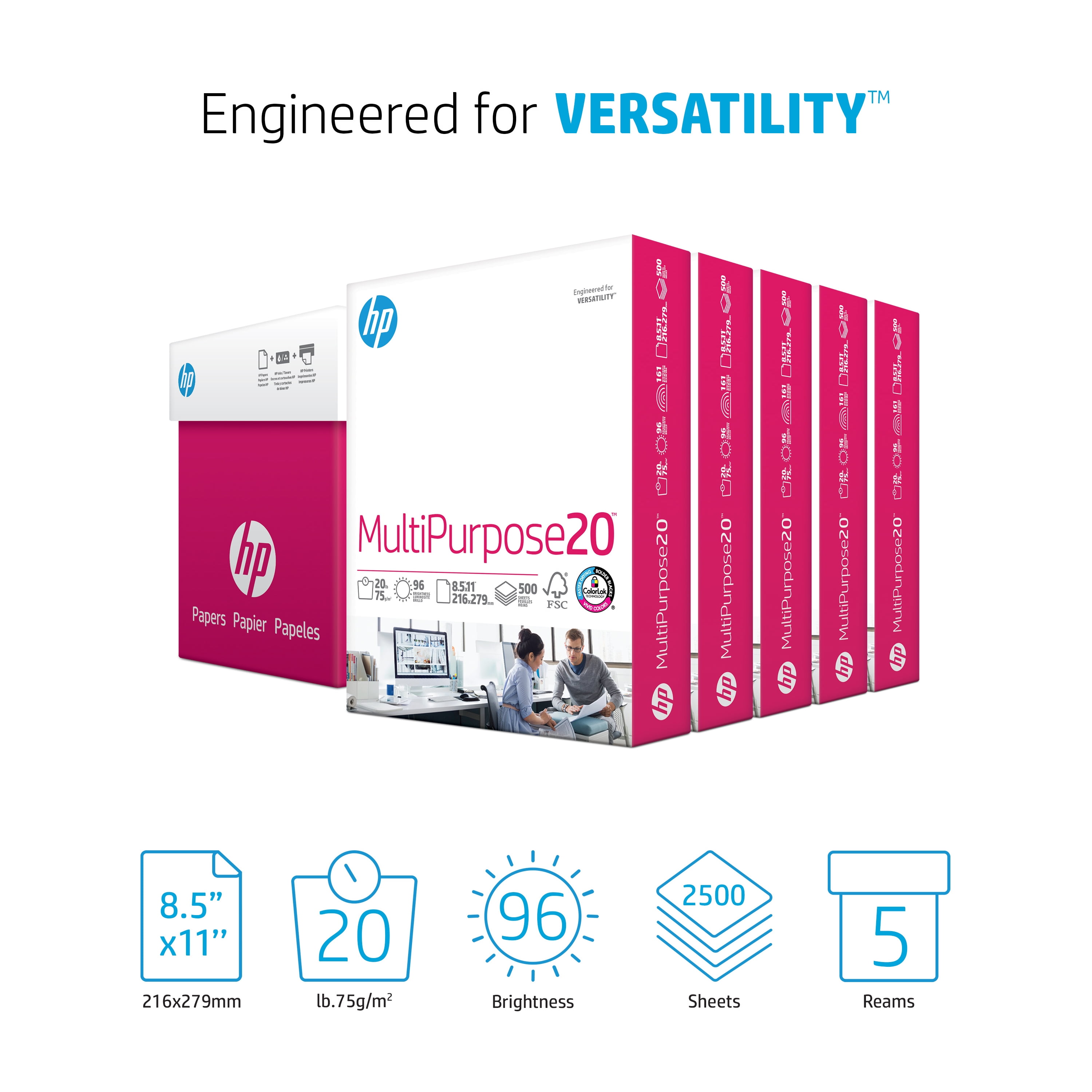 (5 pack) HP Printer Paper, Multipurpose, 8.5″ x 11″, 20 lb., 96 Bright, 5 Ream Case – 2500 Sheets