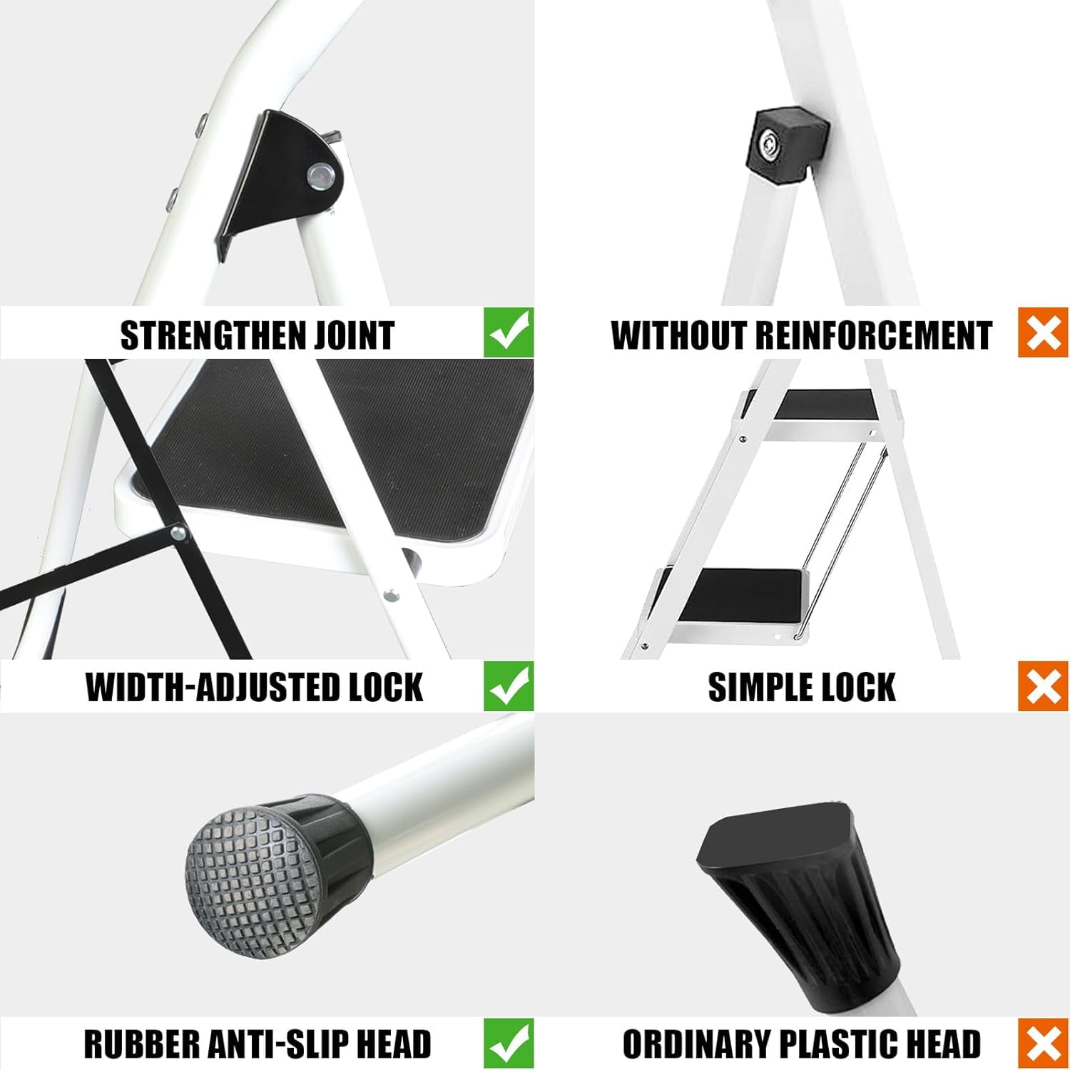 Upgo Step Ladders for Home, 5 Step Ladder, Folding Step Ladder for Adults, with Soft Handle, Perfect for Kitchen& Household, Sturdy Steel Construction Material: Alloy Steel Color: White Special Feature: Portable Load Capacity: 330 Pounds Size : 5 Step