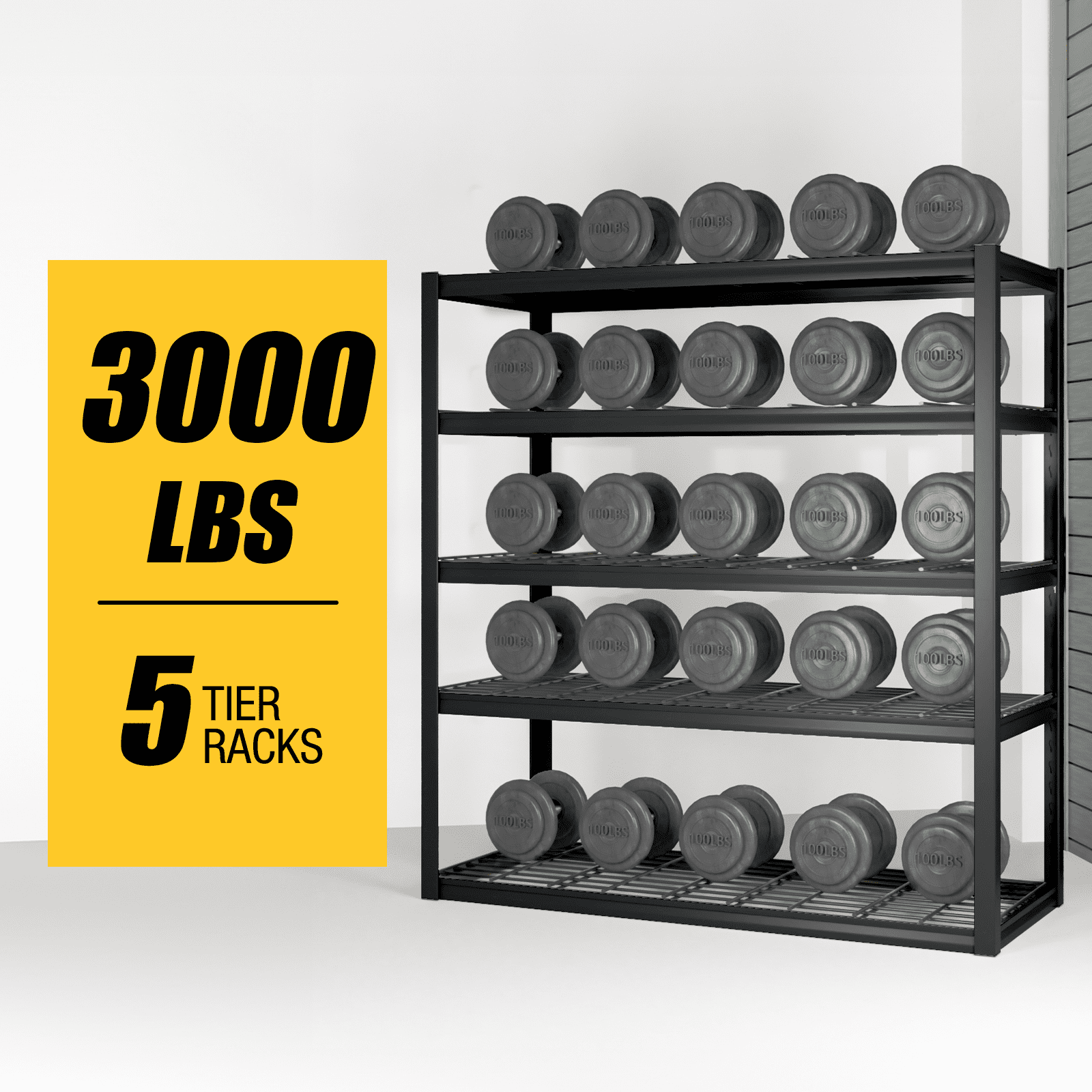Alvantor Heavy Duty 5-Tier Metal Storage Shelving Unit, 3000 LBS Capacity, Black