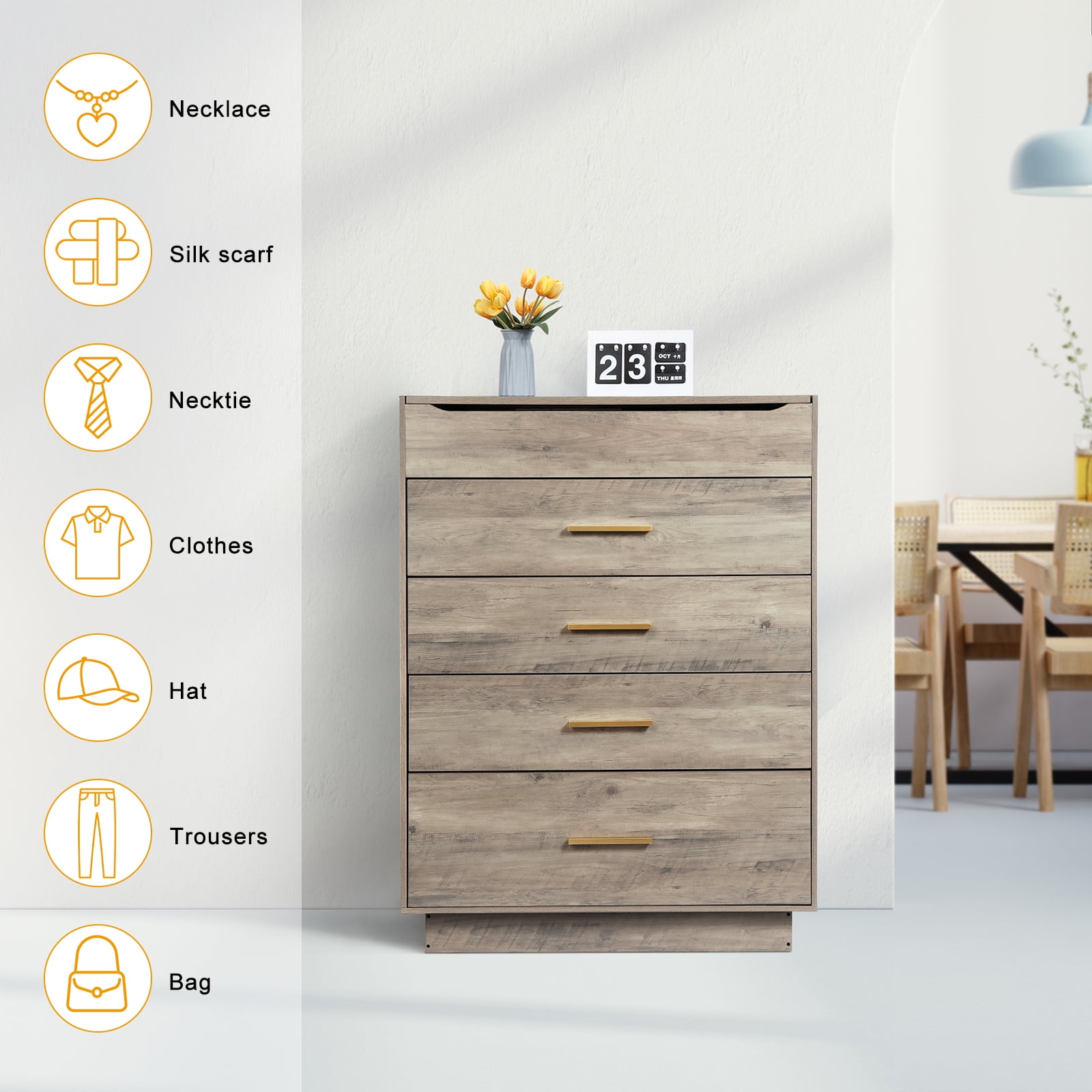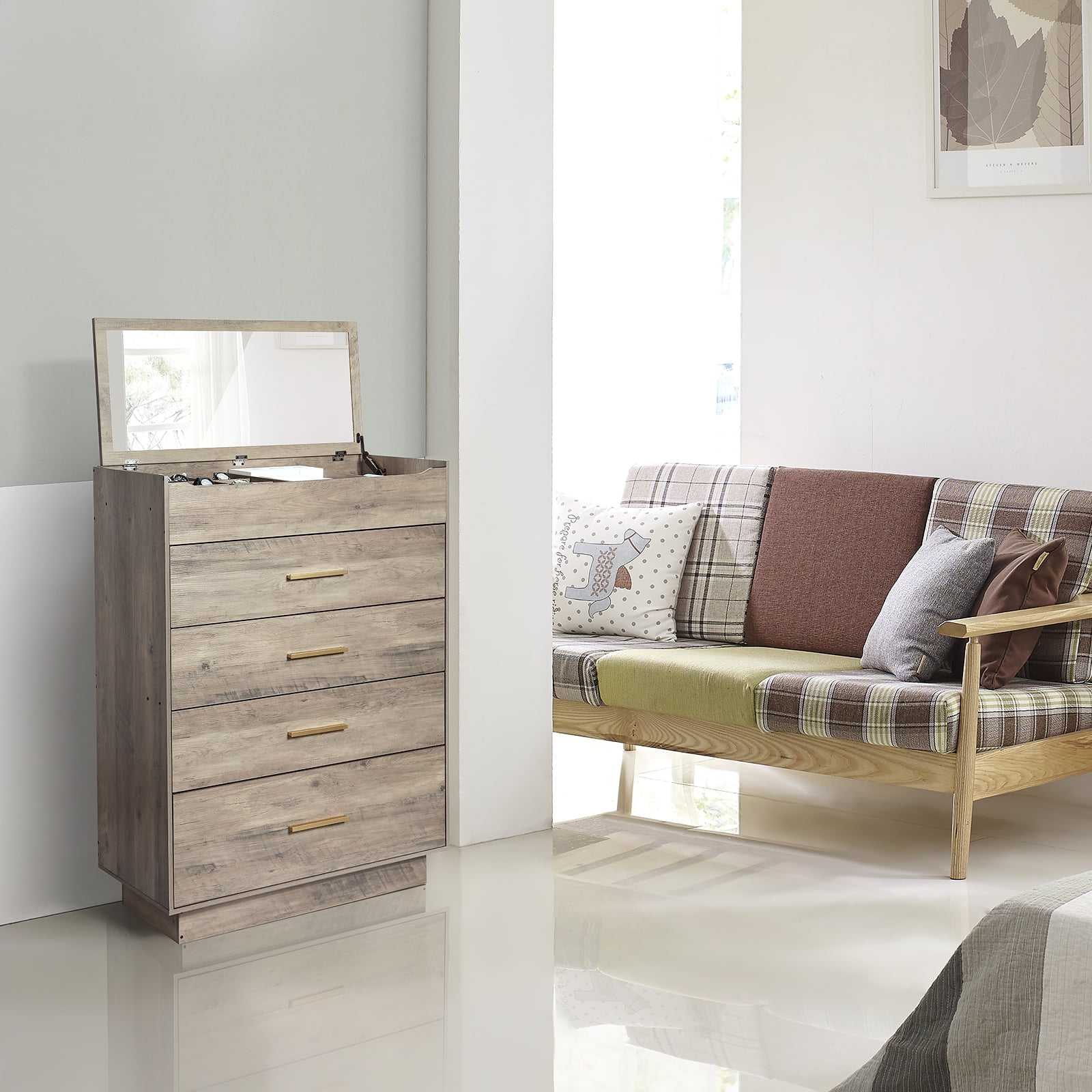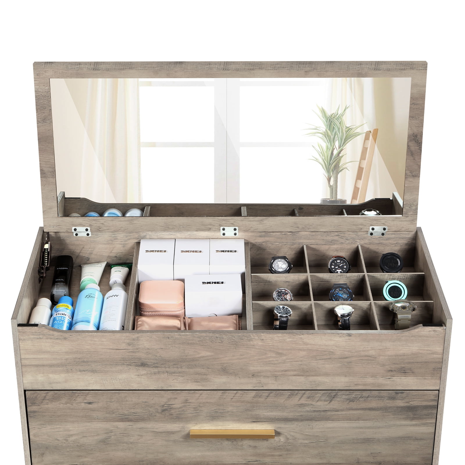 5-Tier Wood Lift Top Dresser Drawer Chest with Inside Mirror, Gray