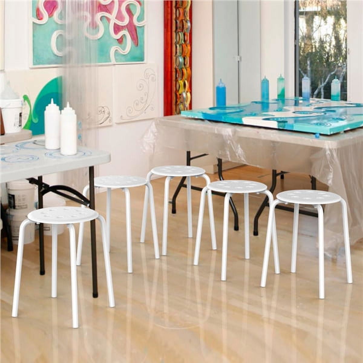 5 x Plastic Stack Stools Round Top Stools Plastic Bar Stools 8 Holes White Material: Plastic Top & Painted Iron Tube Quantity: 5PCS Single Dimension: 32 x 31.5 x 44cm / 13 x 12.5 x 17.5” (L x W x L) Tube Size: 22 x 1.6 mm / 0.9 x 0.06” (Dia. x Thickness) (16 Gauge) Round Hole Diameter: 3 cm / 1.2” (Dia.) G.W.: 9.6 kg / 21.2 lb Weight Capacity (ea.): 120 kg / 265 lb Color: White Please do not rock it back and forth when seated. Residential Use Assembly required