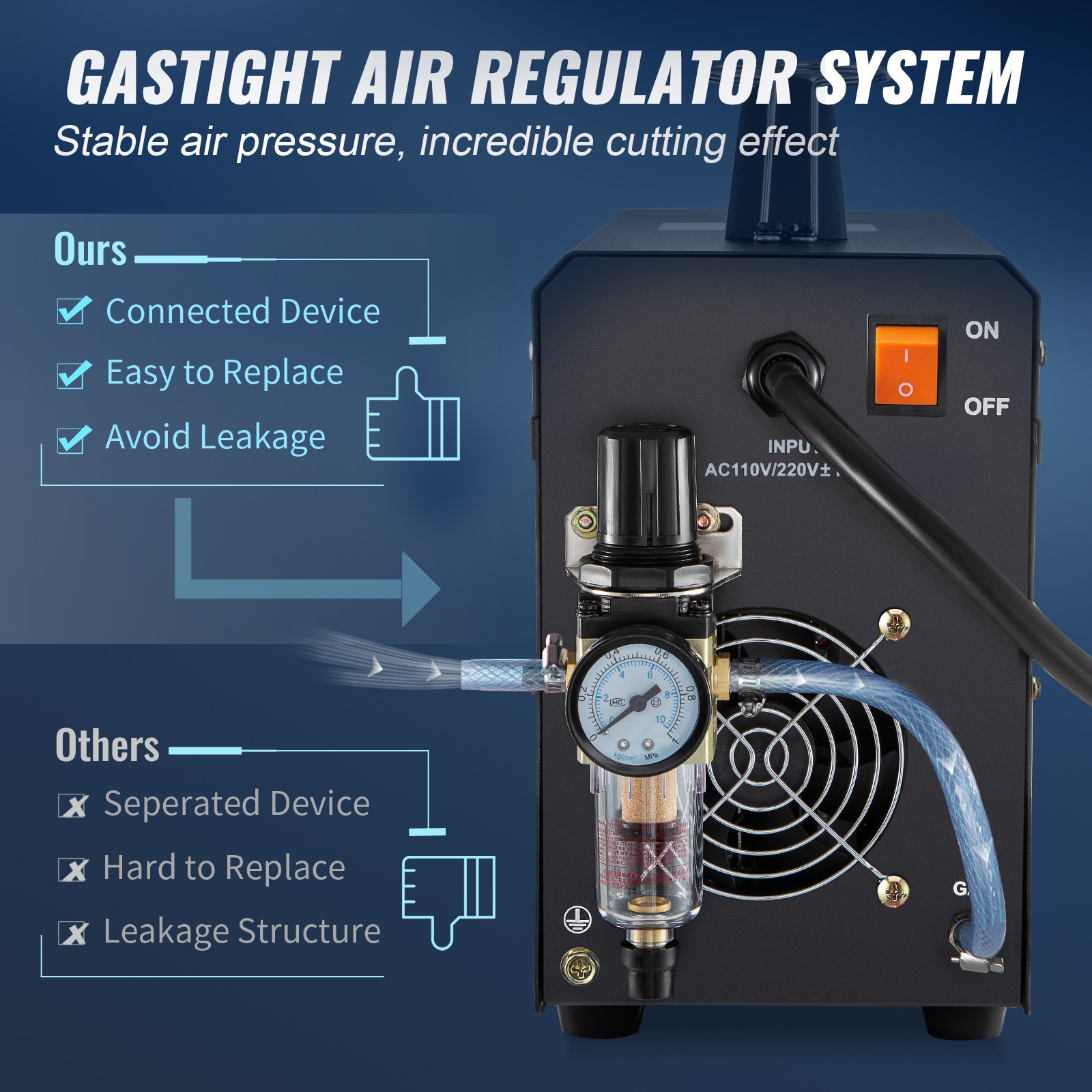 SVOPES’ plasma cutter with a non-touch pilot offers powerful cutting performance in a compact design; The pilot arc is highly beneficial for continuous cutting on rough or dirty metal surfaces; An optimized IGBT transistor ensures high-power output for thick metal cutting and stable output for thin metal cutting; Our power plasma cutter assists you in DIY projects, reducing your time and getting the job done efficiently!
