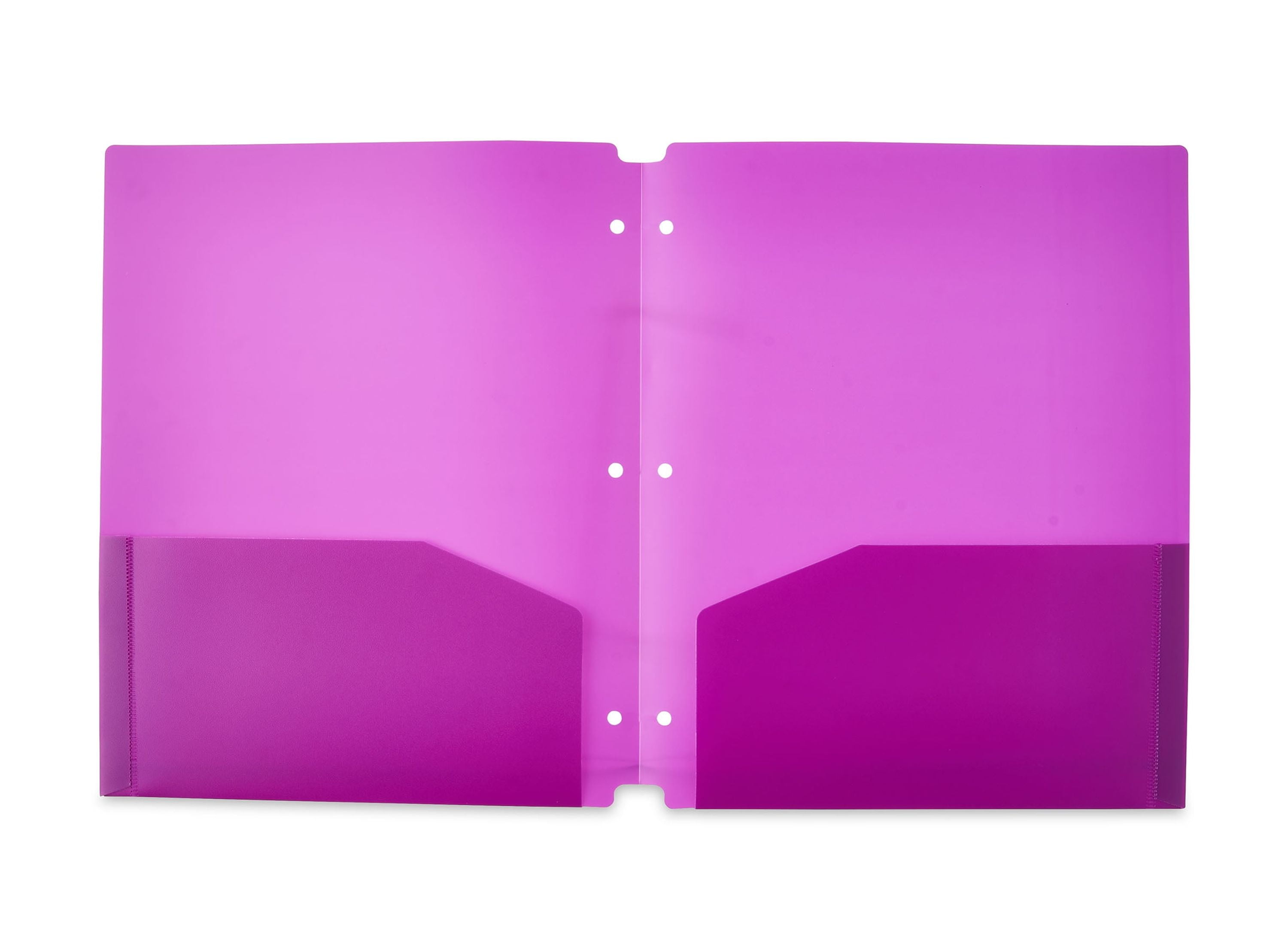 Set of 50 Purple, letter-sized folders Contains 2 pockets per folder 3 Hole Punch Slits 9.4″ x 11.4″ Perfect for storing and organizing paperwork, reports, bills, and homework Durable poly construction protects papers from spills and rough handling