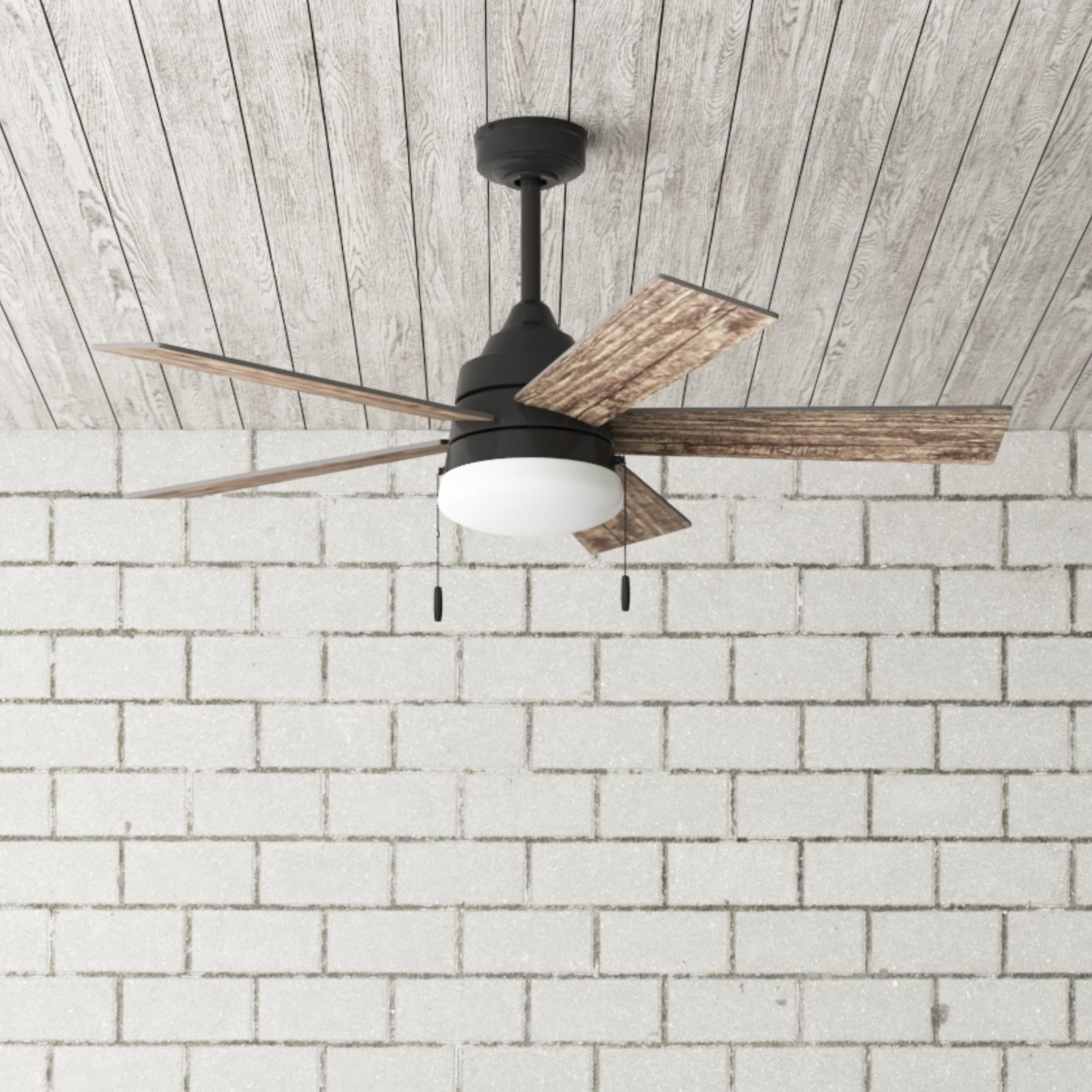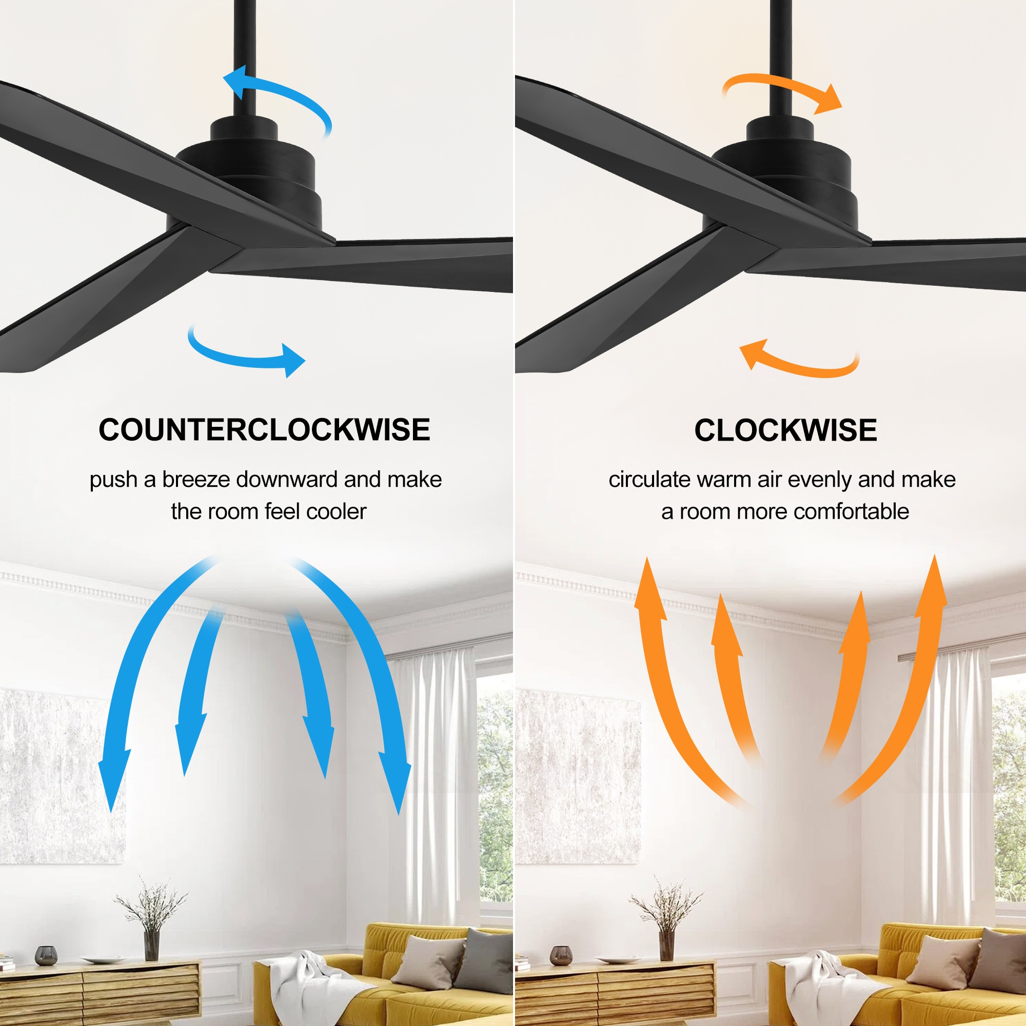 It has a modern design that performs well in both indoor and covered outdoor environments, generating a lot of airflow. It is a very large fan with 3 blades and a blade span of 52 inches. It features a powerful DC motor for smooth and quiet operation, and runs 70% more efficiently than AC motors. Local control of the 6-speed airflow is easy with the included remote control.