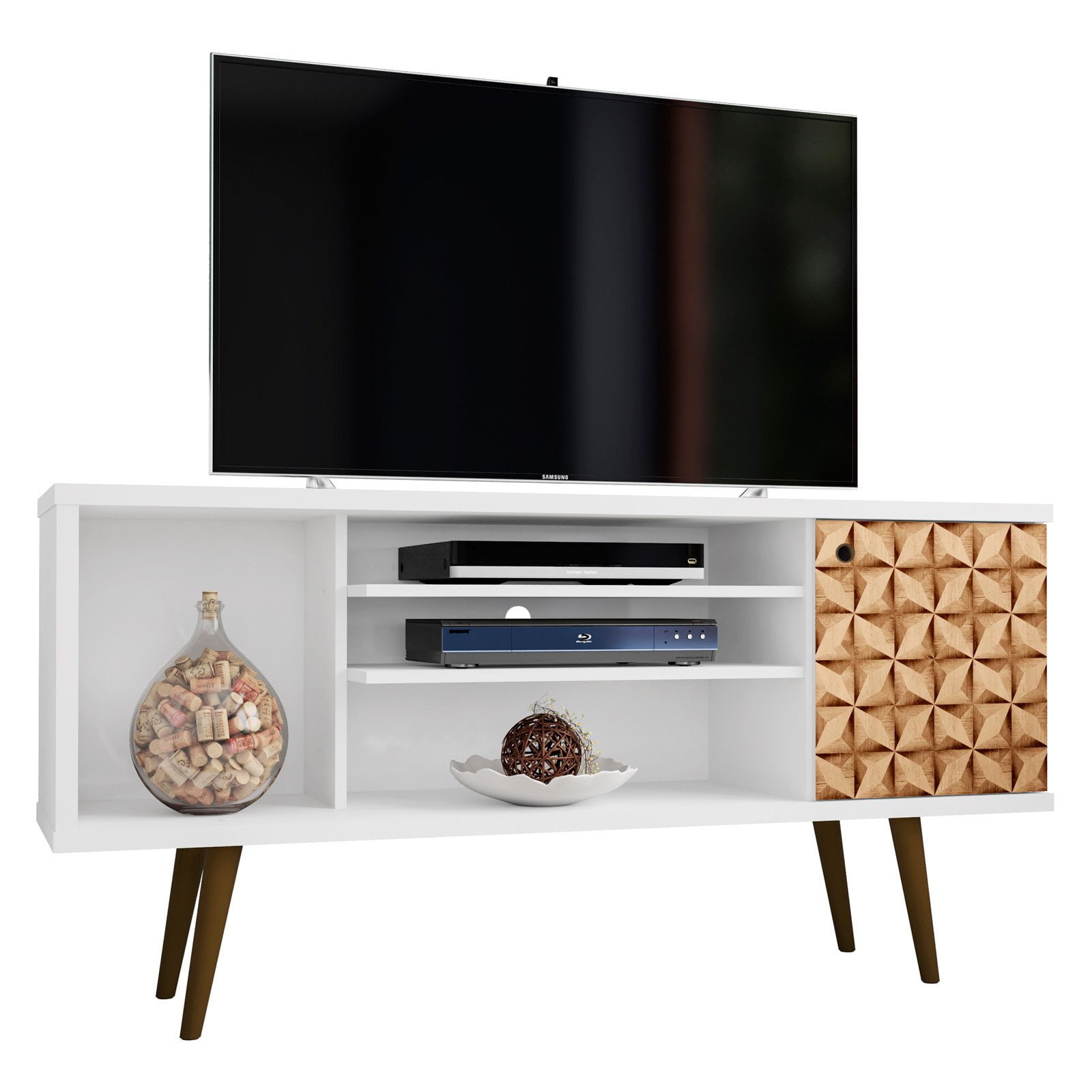 Liberty 53.14″ Mid-Century – Modern TV Stand with 5 Shelves and 1 Door in White and 3D Brown Prints