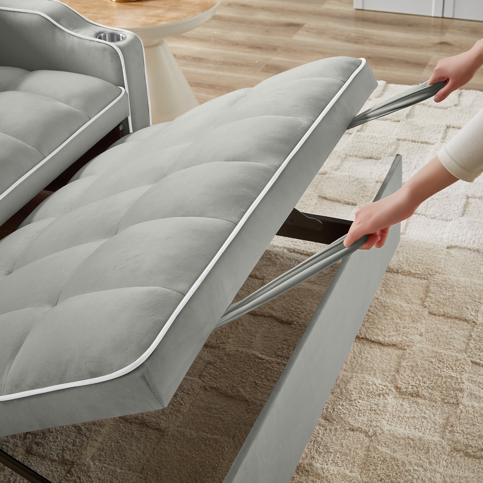 54.7″ Pull Out Sofa Bed,Convertible Sofa Bed with USB Port and Ashtray & Swivel Phone Stand,Sleeper Sofa Bed with Adjustable Back and 2 Pillows,Futon Loveseat for Living Room & Bedroom,Gray