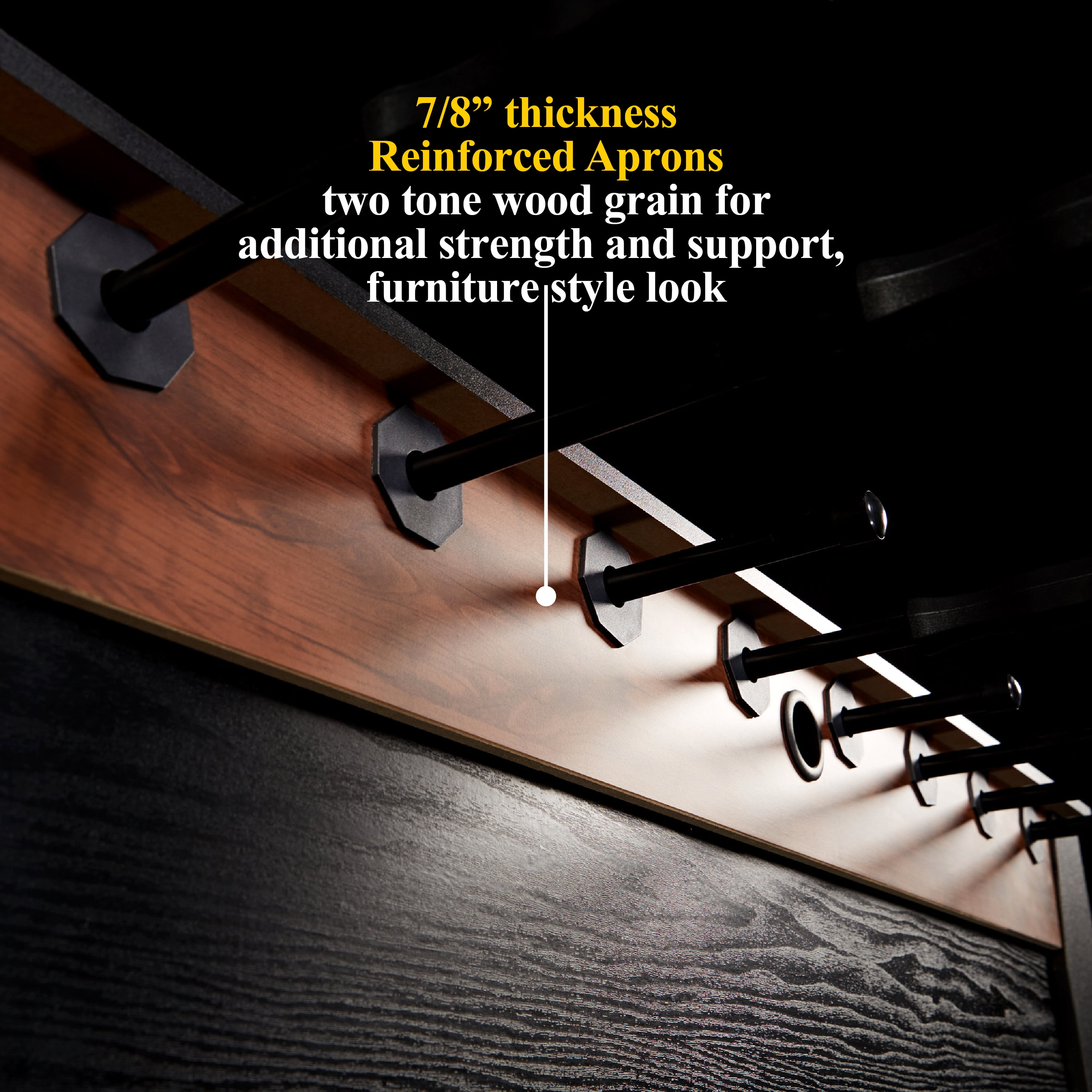 The Barrington 54″ Furniture Style Foosball Game Table is a modern foosball table game with cool robot-style players, classic scoring, chrome accents, and steel rods. This regulation game table has a playing field made of high-quality medium density fiberboard and oversized 4-inch leg levelers to increase durability and stability. This foosball table is built to last and handle intense action and wild games. All accessories needed to play this fun game are included with this game. The Barrington 54″ Furniture Style Foosball Game Table is a competitive game, so get your friends and family together for hours of fun and laughs.