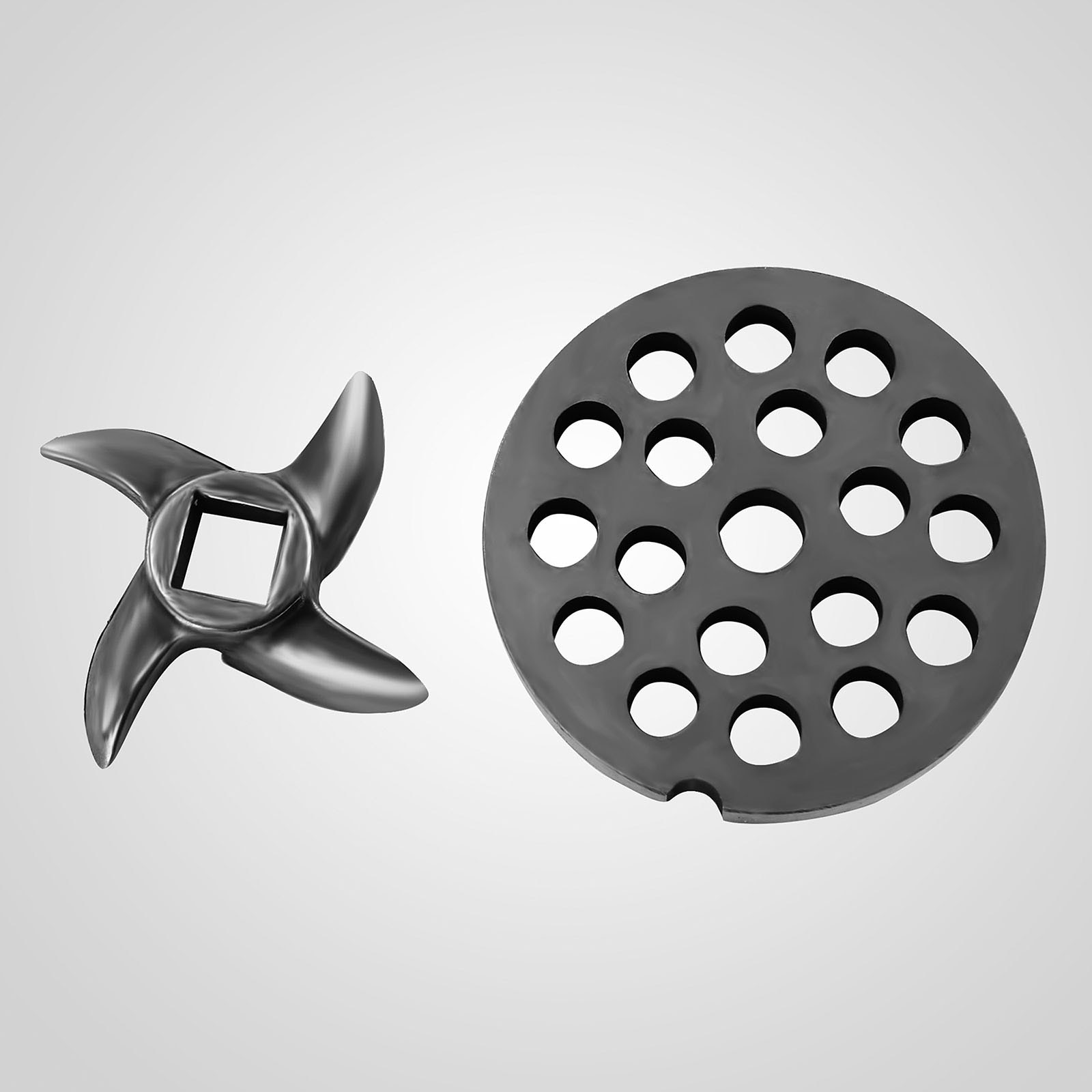 Commercial Meat Grinder: Our electric meat grinder is a fast, convenient way to make perfect ground meat; Constructed of the food-grade stainless steel material, healthy and durable to use; With the 1100W powerful motor, it can grind the meat up to 550lbs per hour; The simple operation effectively saves time and energy; Two grinding plates(6 mm,8 mm) supplied for the coarse or fine grinding; Suitable for various situations, including home kitchens, hotel restaurants, and company use;; [Package Content] 1 x Commercial Meat Grinder; 1 x Meat Pusher; 1 x 6mm Grinding Plate; 1 x 8mm Grinding Plate; 2 x Blades