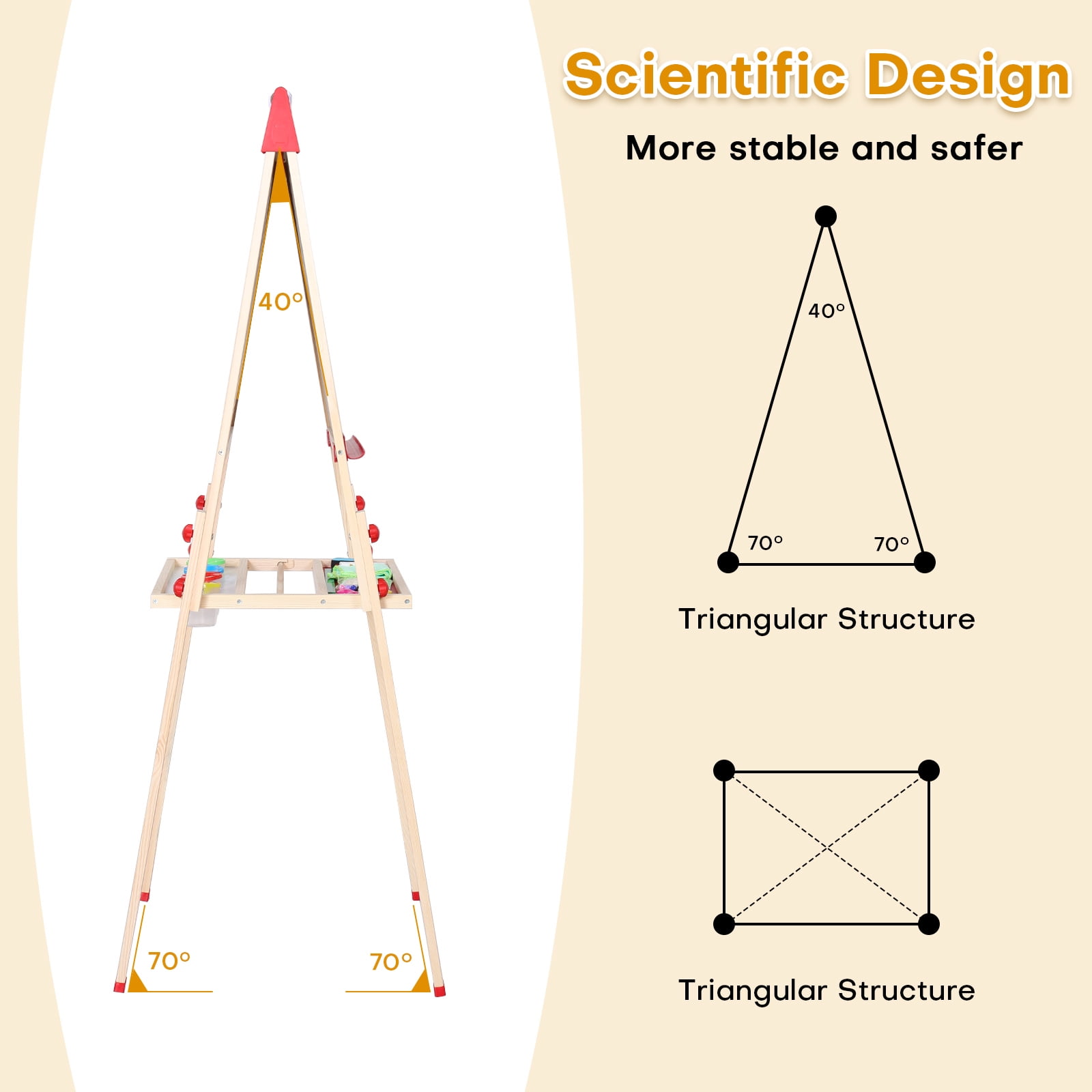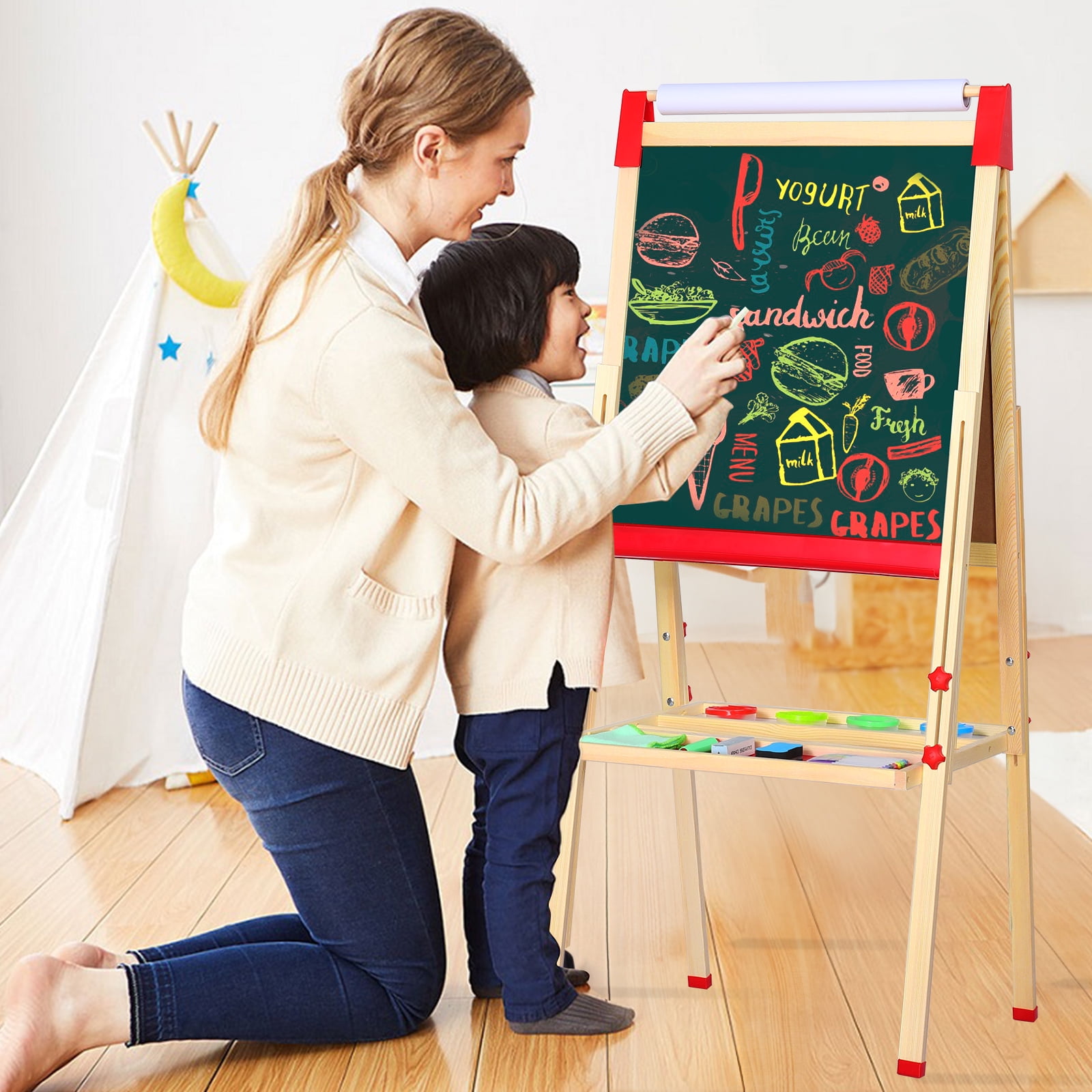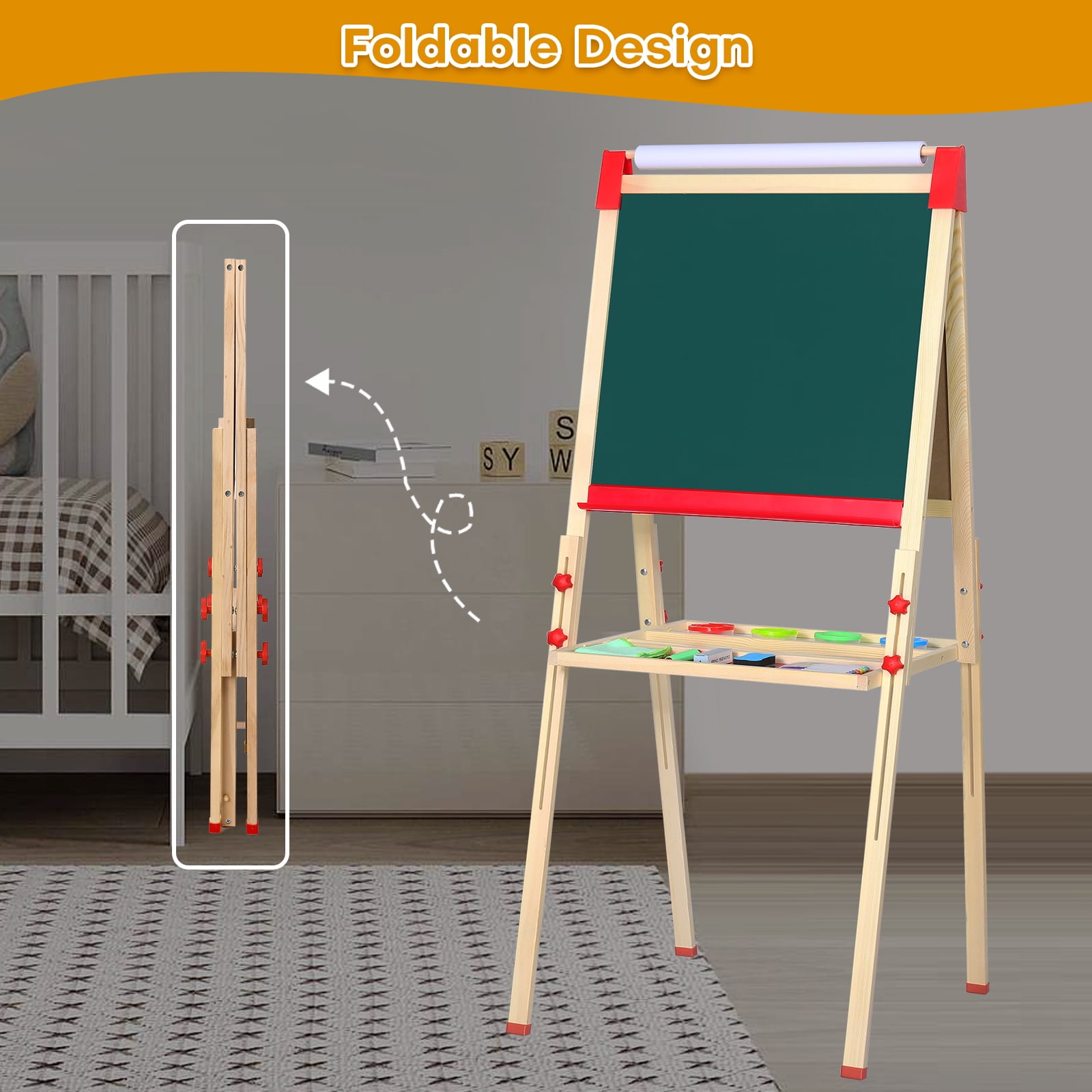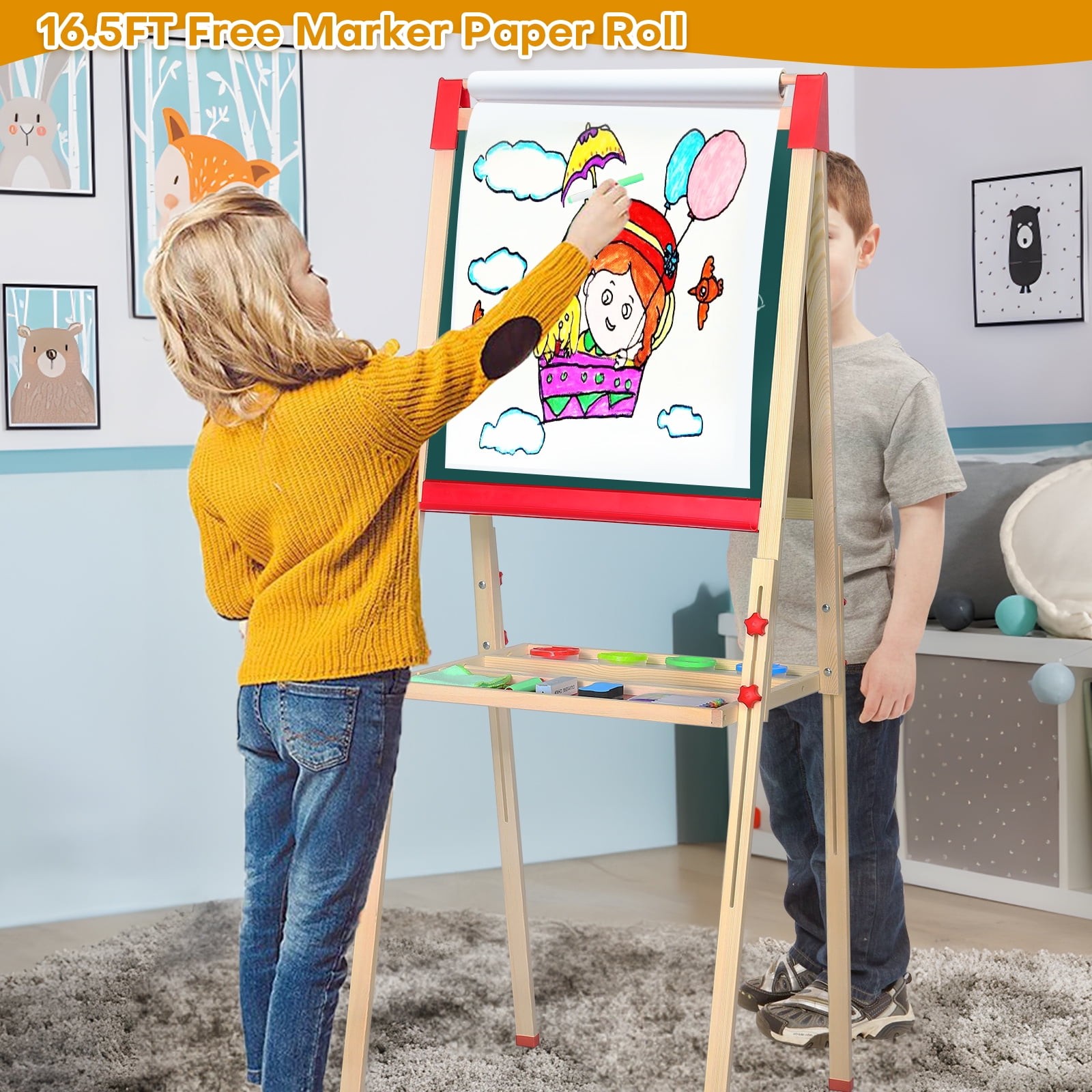 58″ Easel for Kids Height Adjustable Standing Wooden Art Easel Large Double Side Magnetic Chalkboard With 16.4FT Crafts Paper Roll