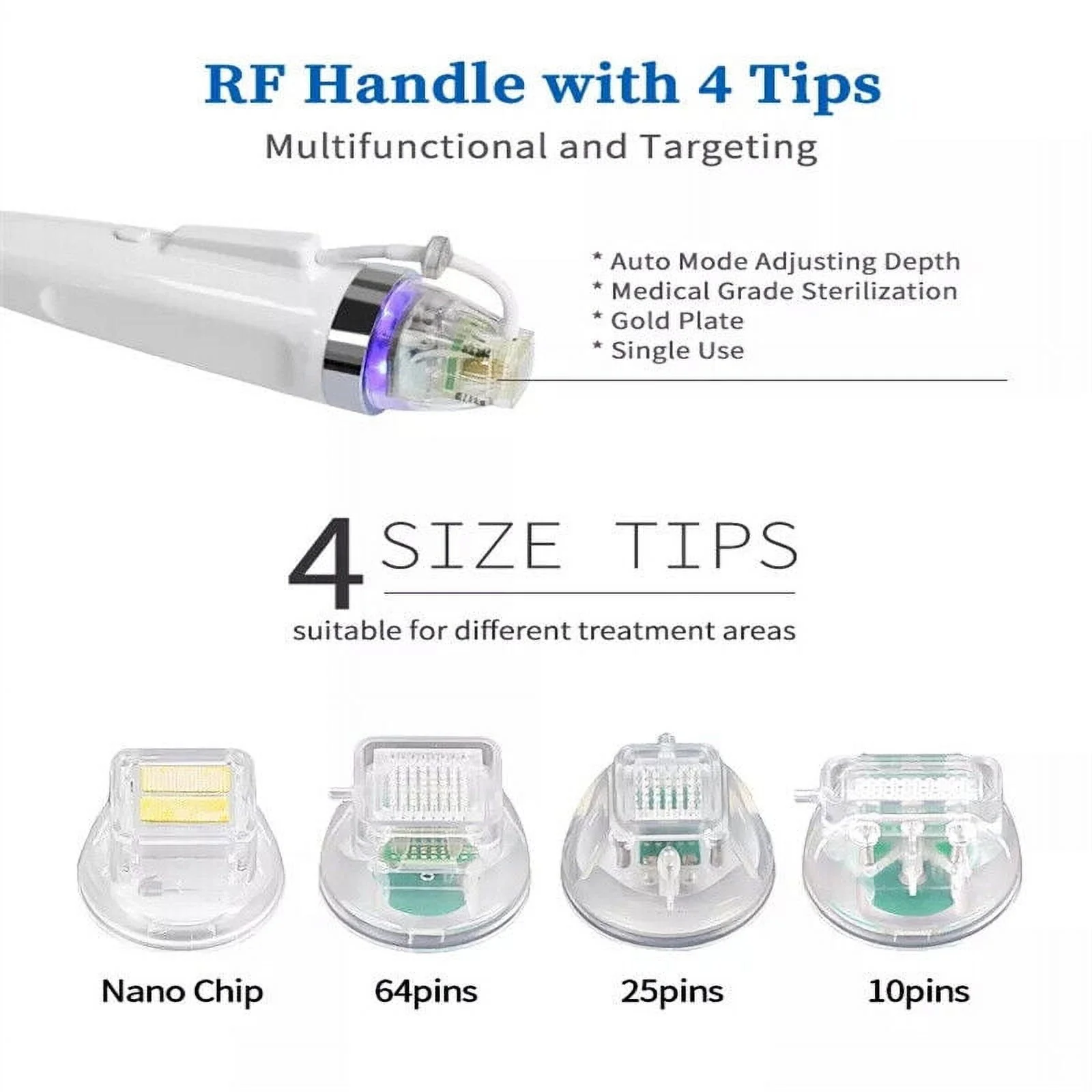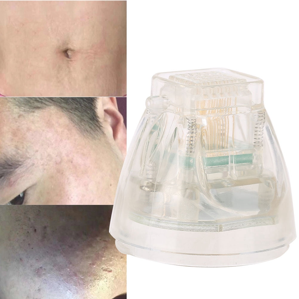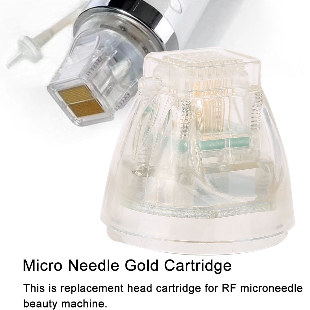 Function Face Treatment: 1.Non-Surgical Face Lifting 2.Skin Tightening 3.Skin Rejuvenation 4.Whitening 5.Pore Reduction 6.Acne Scars Removal Body Treatment: Scars, Neck Wrinkle, Stretch Mark Removal Advantages Non-Insulated Stepping motor type: needle inserts to skin smoothly without shock Gold plated needles: high bio compatibility, suits metal allergy patient Precise depth control: 0.2-3.5mm in unit of 0.1mm Safety system: -sterilized disposable cartridges -suction combined probe for better skin contact User-friendly hand piece design: -hand piece trigger button -4 different shape cartridges suits to different treatment area Technical Parameter Item Type: Cartridges Feature: Replaceable Cartridges: 10/25/64 pins Weight: 0.5 lb/10pcs Skin Type: All Skin Types Packing List: According to the link