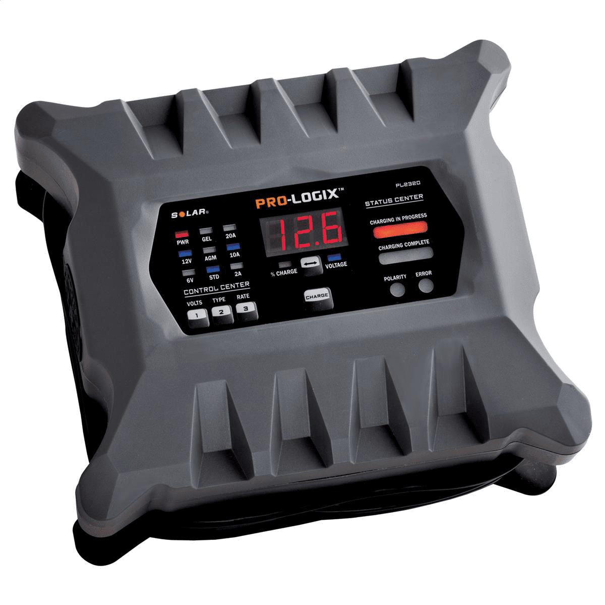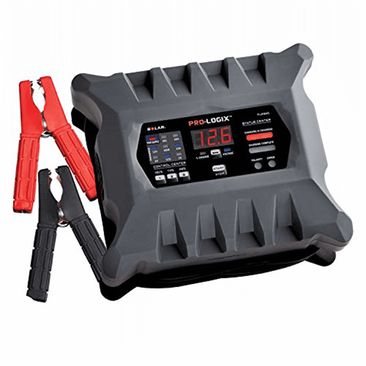 Features and Benefits: Fully automatic operation – simply choose your voltage, battery type and desired charge rate, and press CHARGE, the charger does the rest and turns off when the battery has reached full charge Provides the ability to properly charge virtually any lead acid battery type: Conventional, AGM, Gel Cell, Spiral Wound, Marine and Deep Cycle batteries Advanced multi-phase charging process delivers a proper, beneficial charge every time, improving battery health and restoring reserve capacity Features a Soft Start Mode for severely depleted batteries and a Recondition Mode to rejuvenate distressed batteries Two tools in one, the PL2320 incorporates a fully automatic charging routine PLUS a fully automatic battery maintenance routine once the battery has reach full charge – this enhanced maintenance mode is ideal for long term storage of seasonal use vehicles and more NOT compliant for California use, order SOLPL2320C instead 0-20A power supply mode for diagnostics and on-vehicle repairs The charger incorporates a number of safety features to make charging safer for both the operator and the battery being charged, including Reverse Polarity Protection and Battery Fault Detection. Combining fully automatic operation and the ability to properly charge multiple battery types, the Pro-Logix PL2320 is the perfect charger to meet the needs of today’s and tomorrow’s professional technician. Intelligent, beneficial, safe and versatile – one charger does it all, from fast charging and battery repair to battery maintenance and long term storage charging.