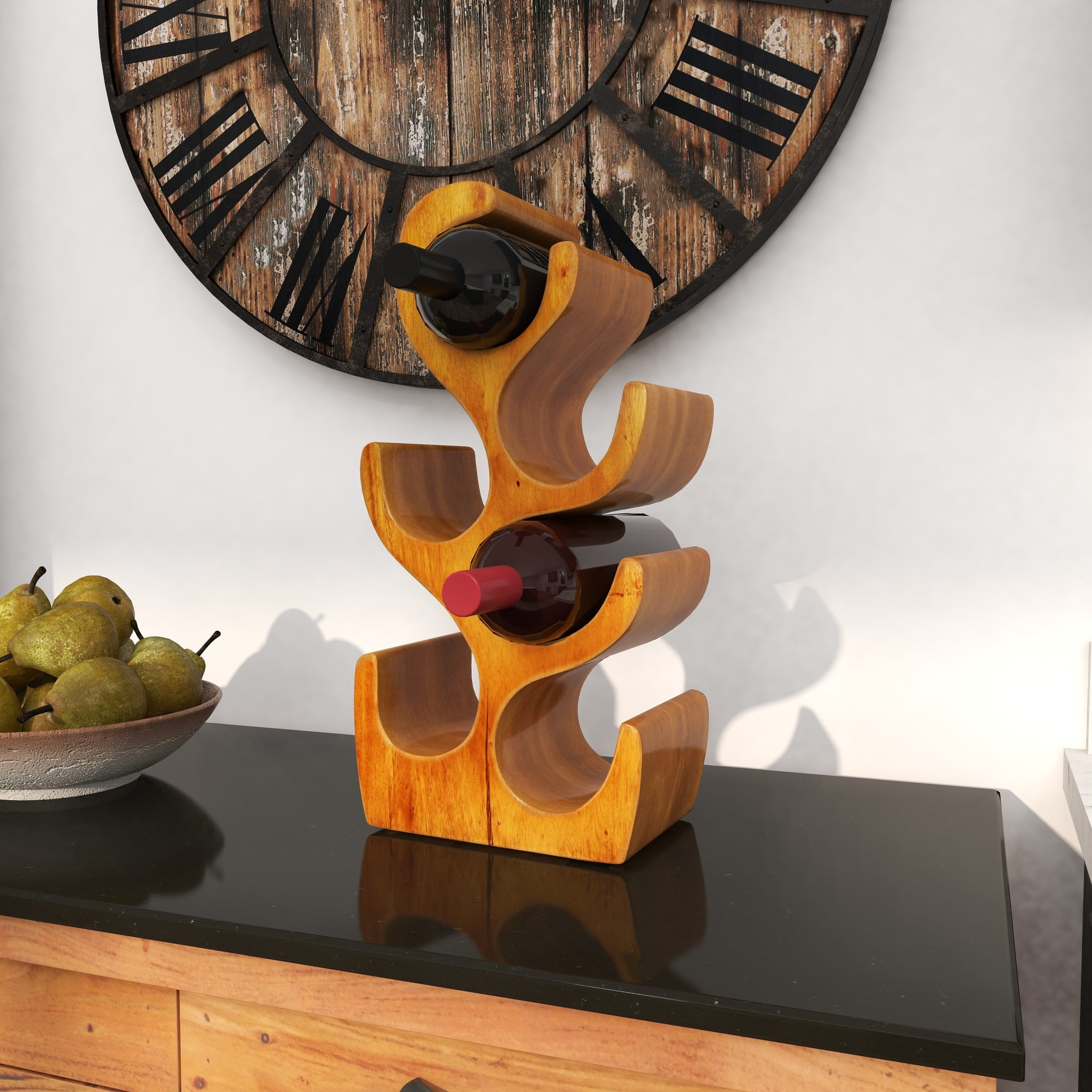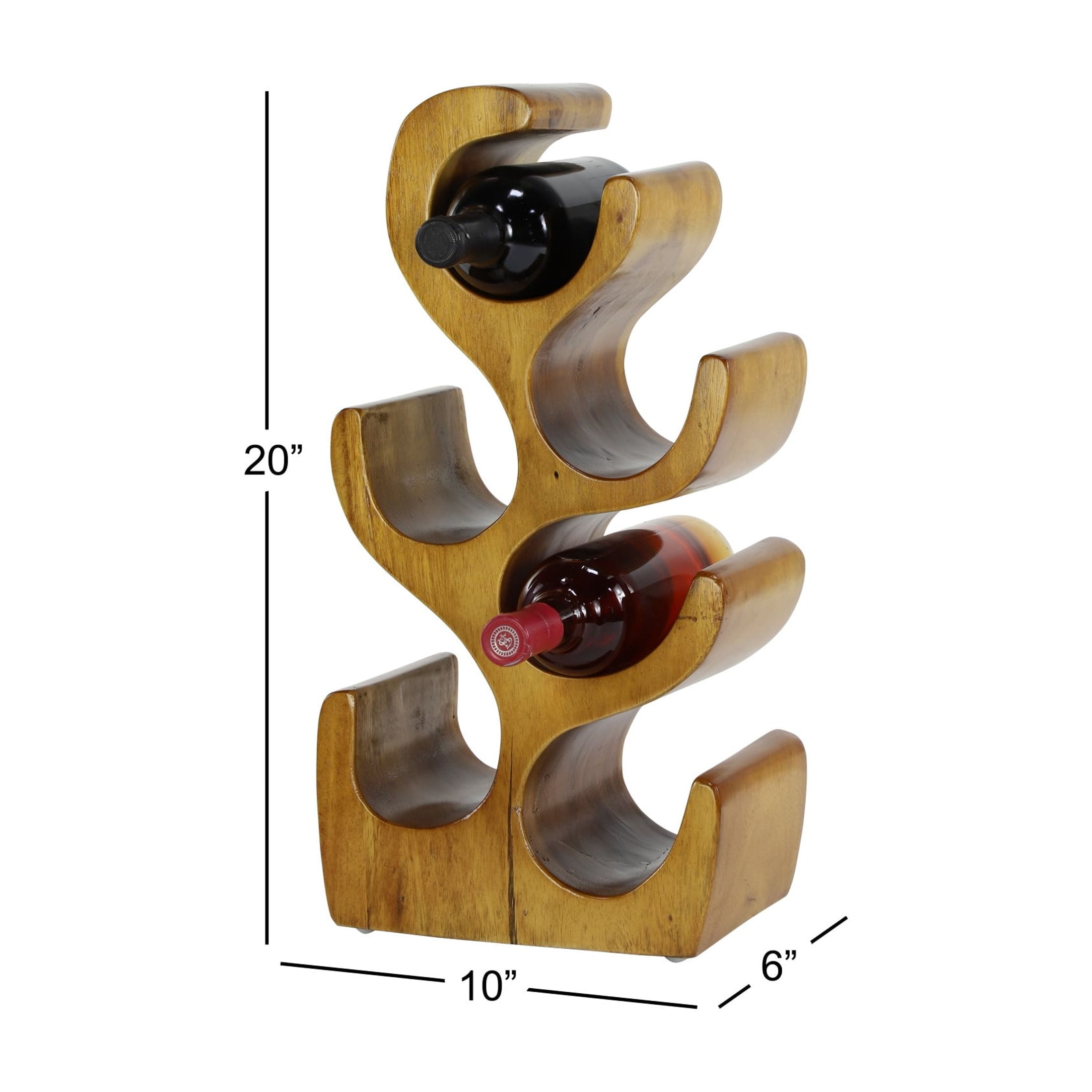 6- Bottle Brown Curved Tree Shaped Wine RackDecMode 10″ x 20″ Brown Teak Wood Curved Tree Shaped 6 Bottle Wine Rack, 1-Piece