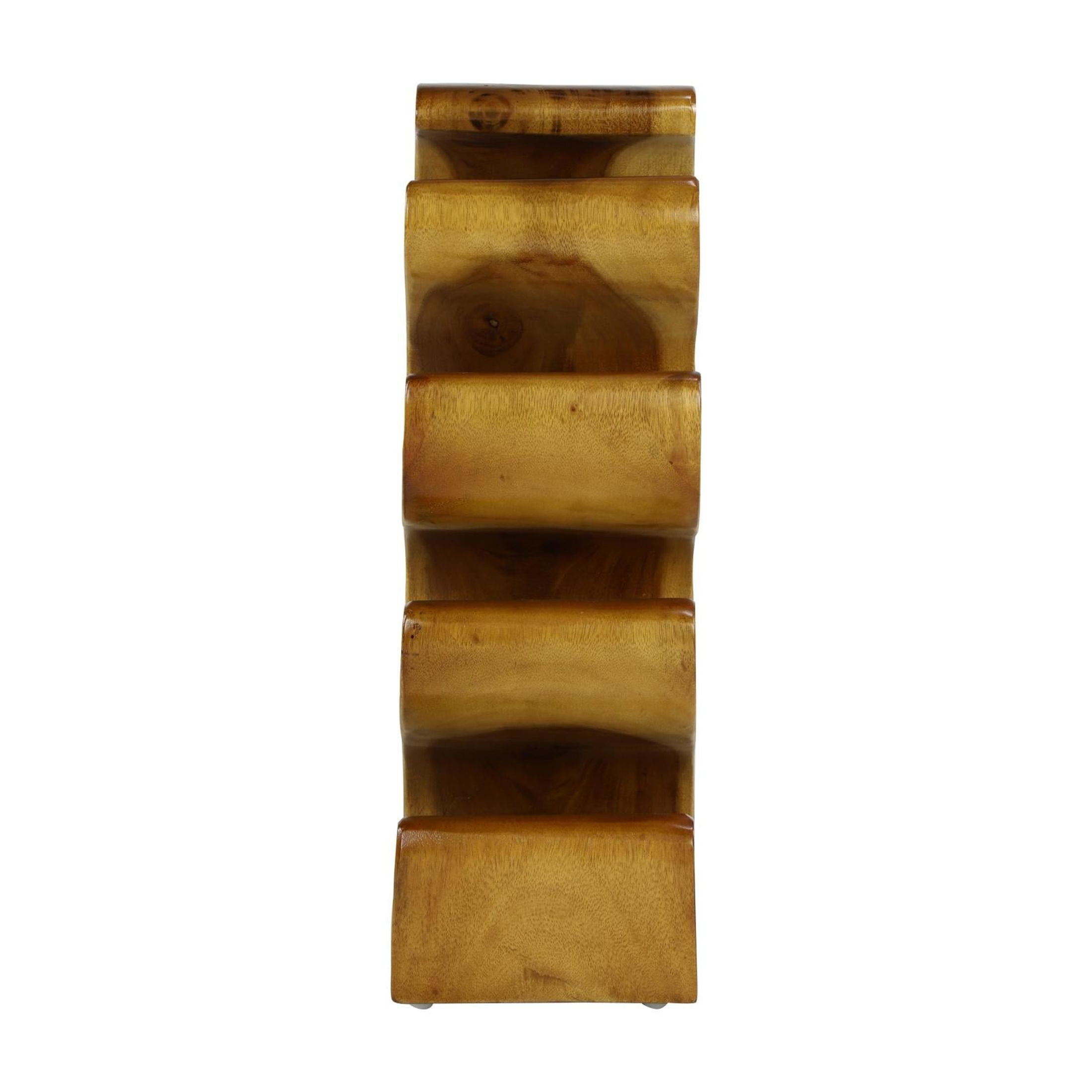 Designed with rugged beauty and an earthy charm, where natural simplicity, warmth, and organic materials create a wholesome atmosphere This brown kitchen wine rack is made of durable albizia wood for a stylish and sturdy piece Round countertop wine holder has a varnished finish with warm brown, gold, and cocoa colors that complements the plant-like silhouette The wood wine rack holds six standard-sized wine bottles with a unique design that will captivate your guests anywhere you place it The brown teak wood wine rack measures 10L x 6W x 20H inches, and weighs 8.6 lbs The varnished brown wine holder for cabinet accentuates a tree-inspired shape with rounded cutouts to hold bottles Wipe clean with a dry cloth The rustic wine holder stand features solid wood carved into bottle holders to form a freestanding piece of art, which is then varnished to perfection Rustic style 6- Bottle Brown Curved Tree Shaped Wine RackDecMode 10″ x 20″ Brown Teak Wood Curved Tree Shaped 6 Bottle Wine Rack, 1-Piece makes a perfect addition to any home