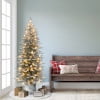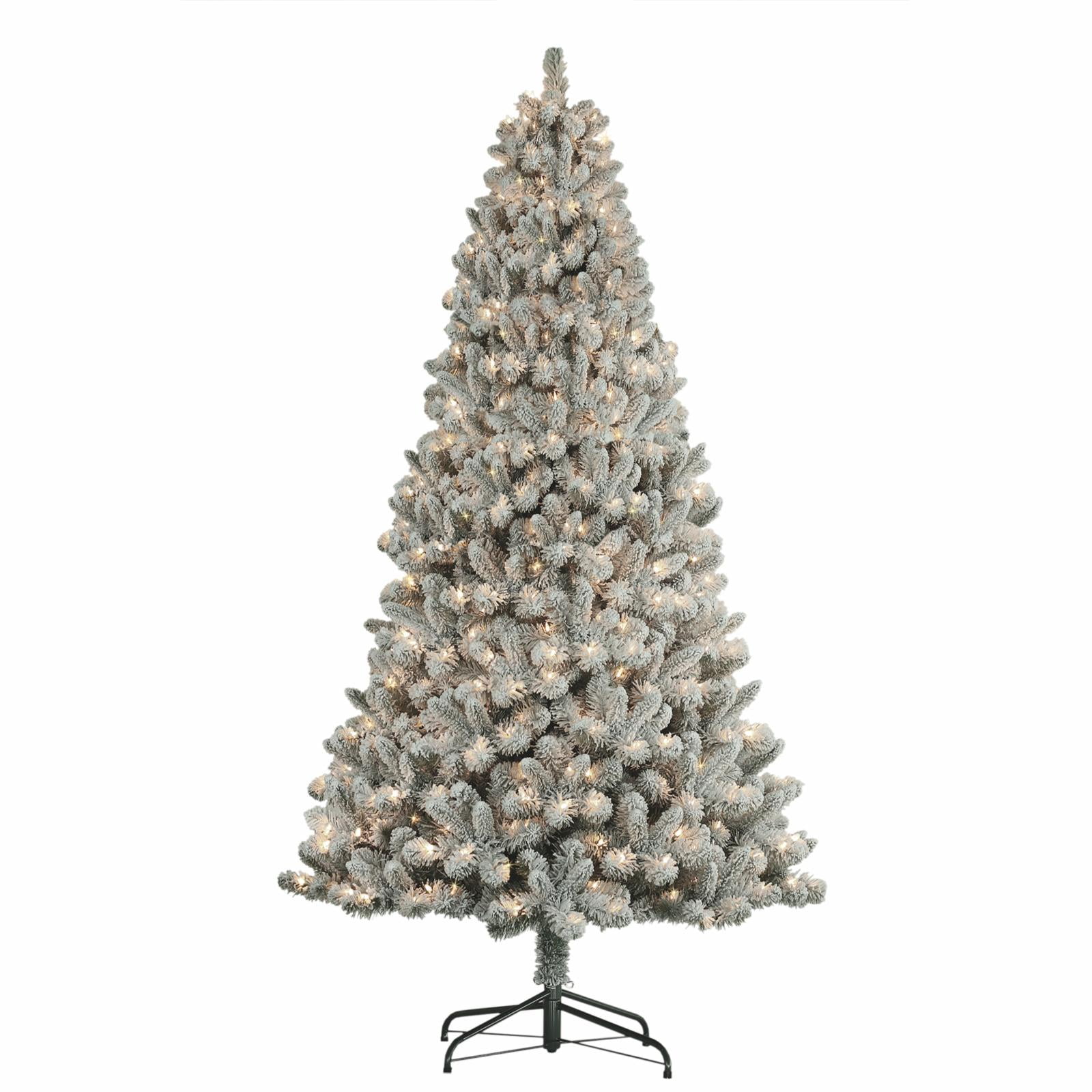 6 ft Pre-lit Potted Flocked Arctic Fir Pencil Tree 1430 Tips 120 Color Select LED Lights