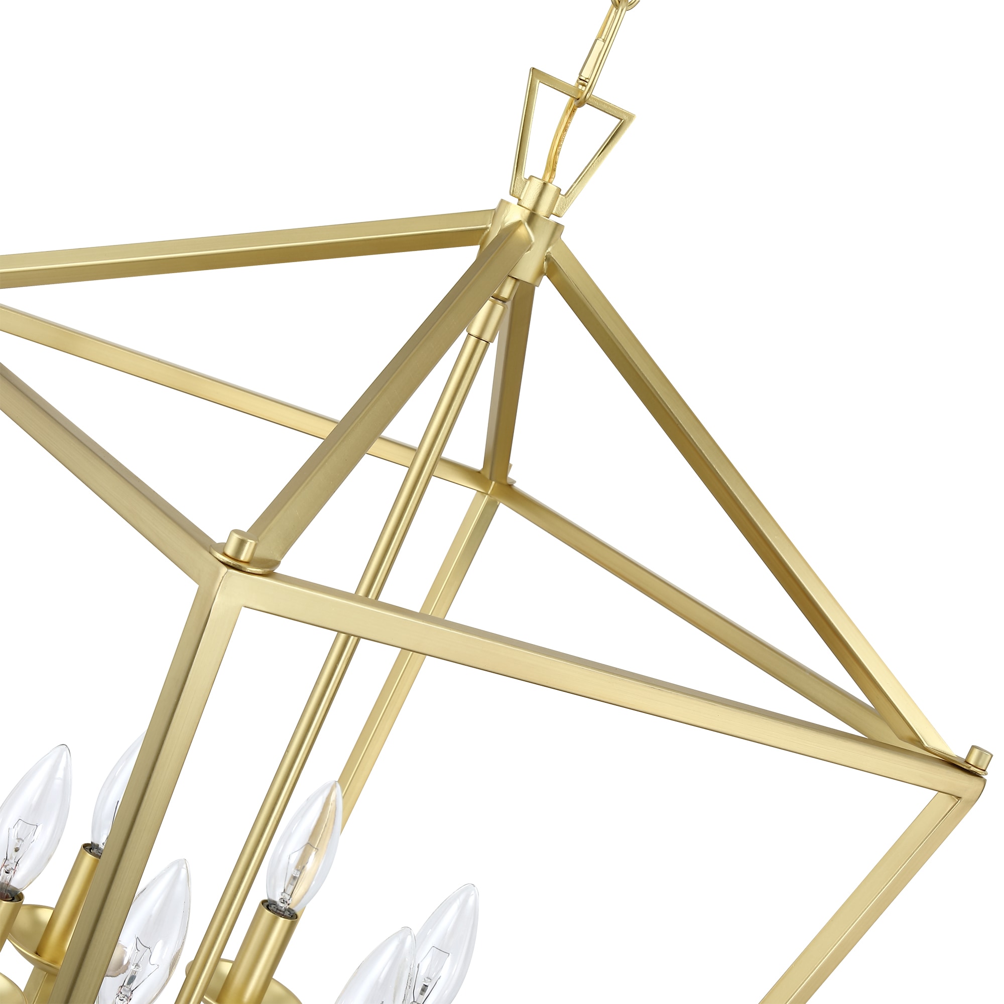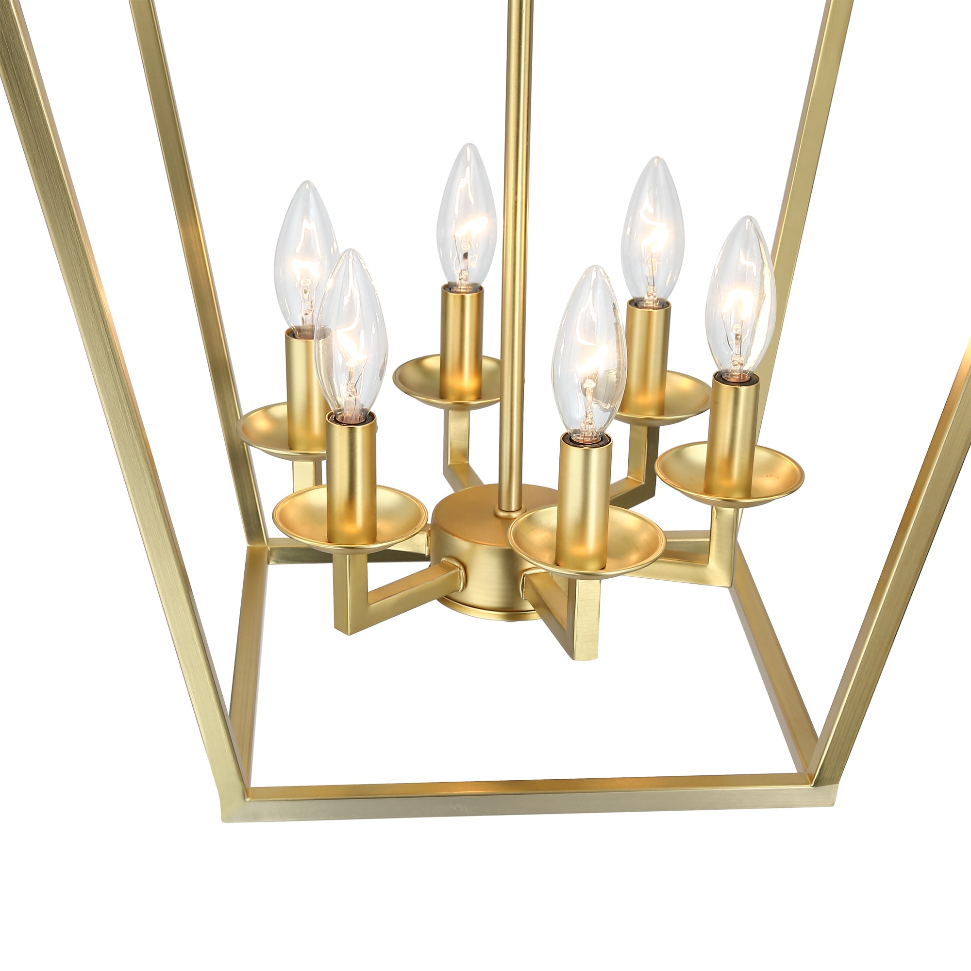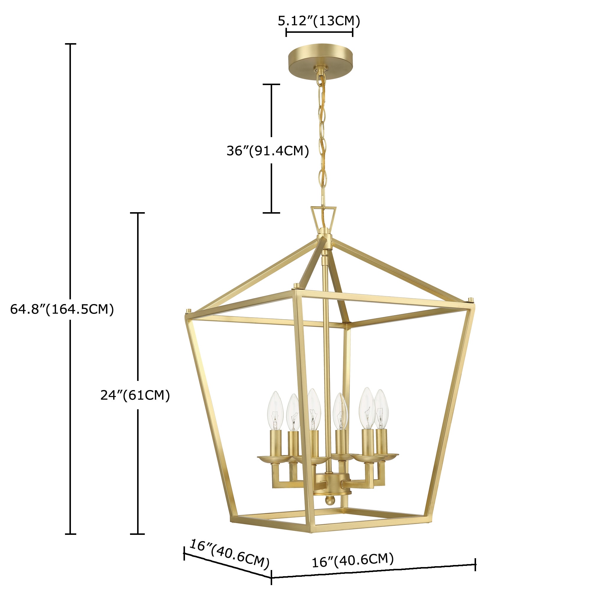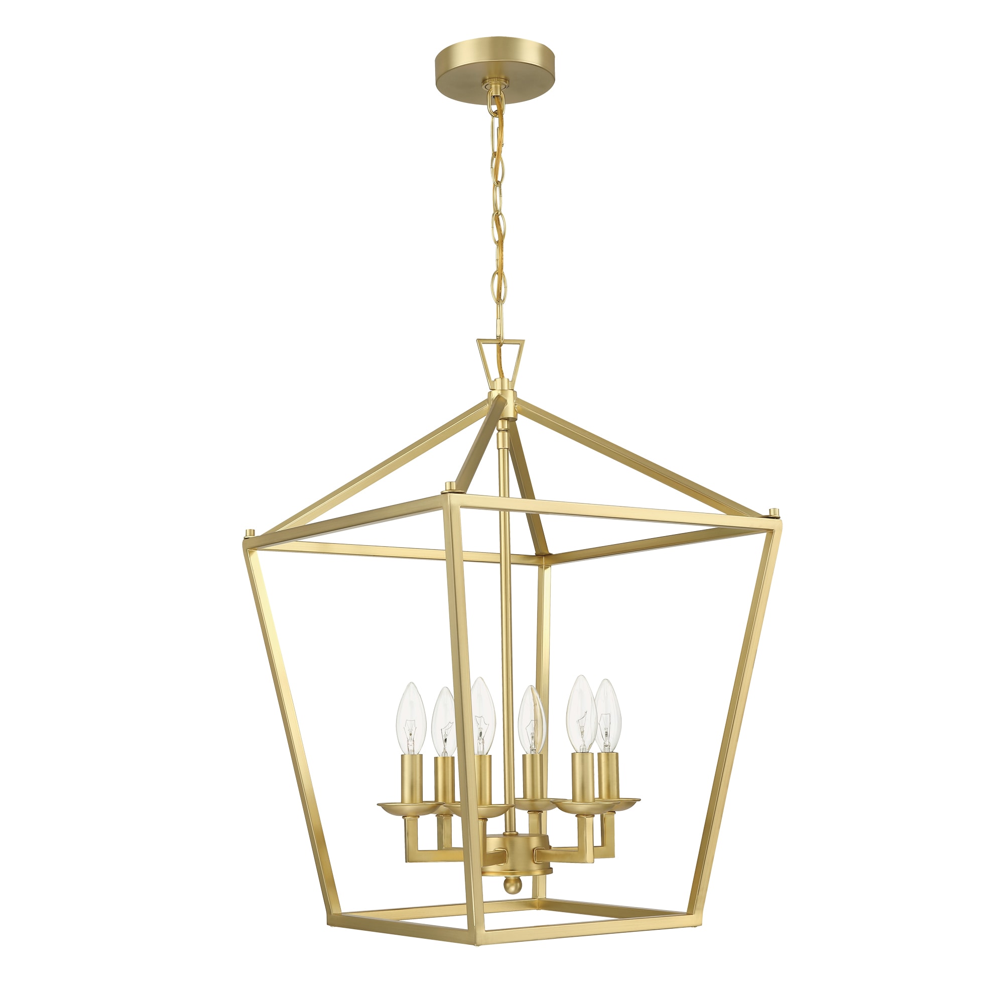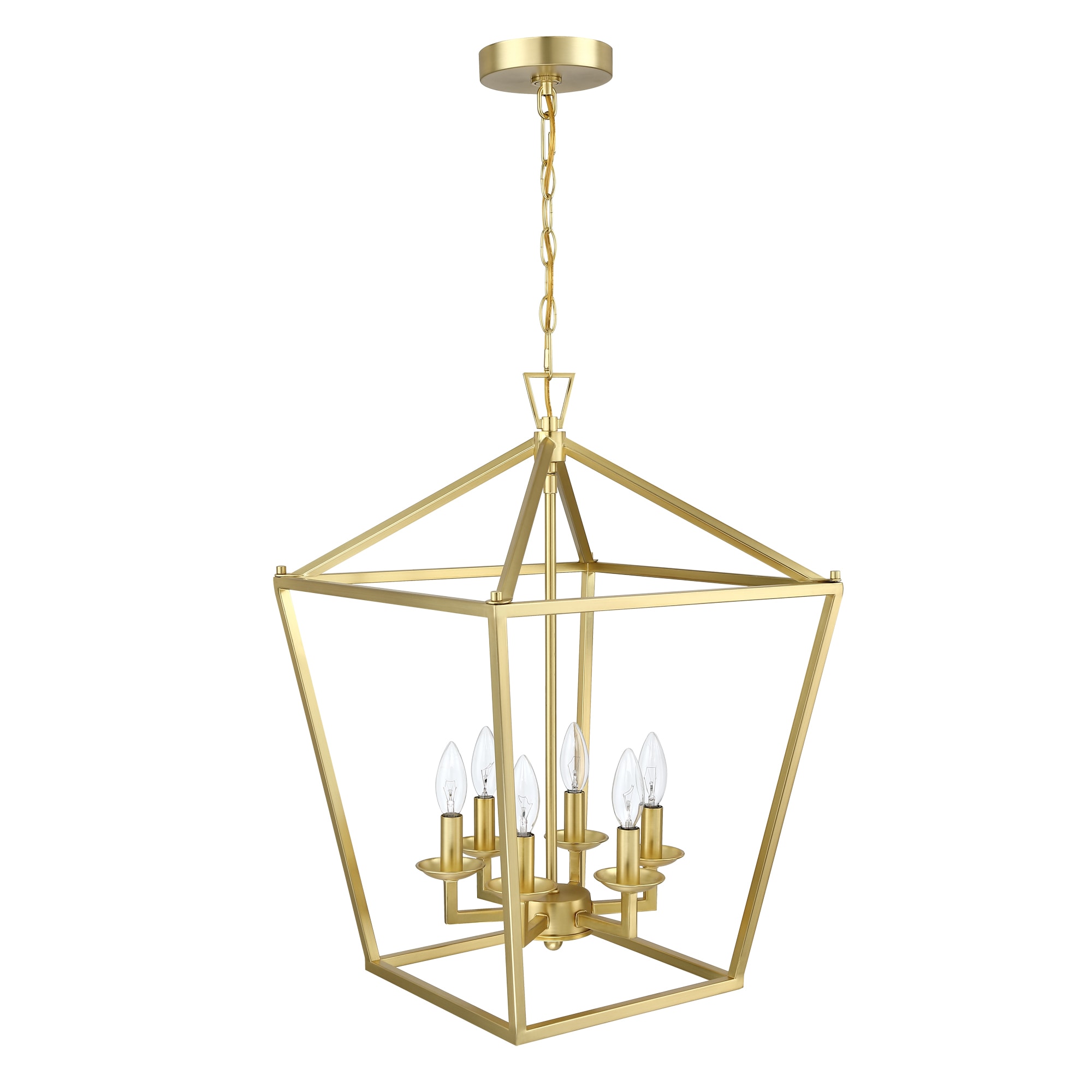 The charming 6-light geometric lantern pendant with soft gold finish illuminates your space in classic style. This fixture features an open shaped shade which was fully crafted from metal. Topping 6 short candle-style sockets with 6 incandescent bulbs of up to 60-Watt each sit inside (bulbs are not included) that disperse ambient light throughout your home. An adjustable length of chain with a matching canopy above to round out the design.
