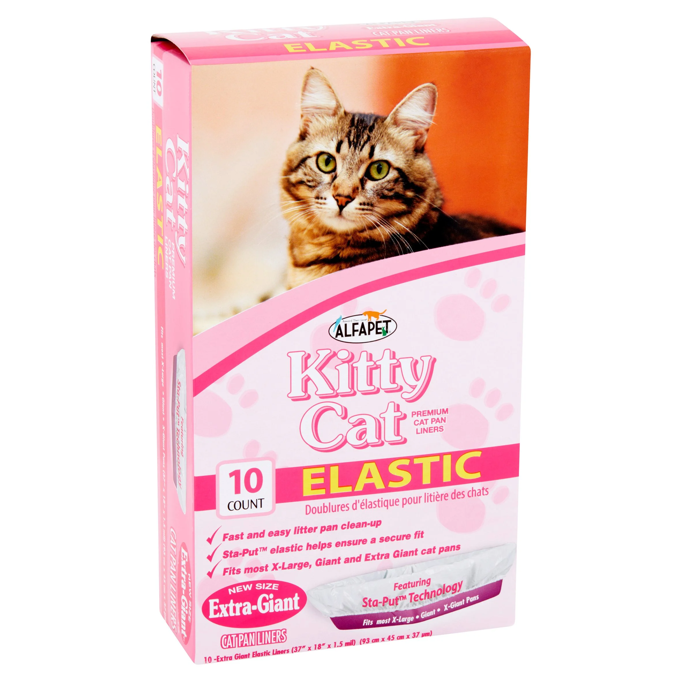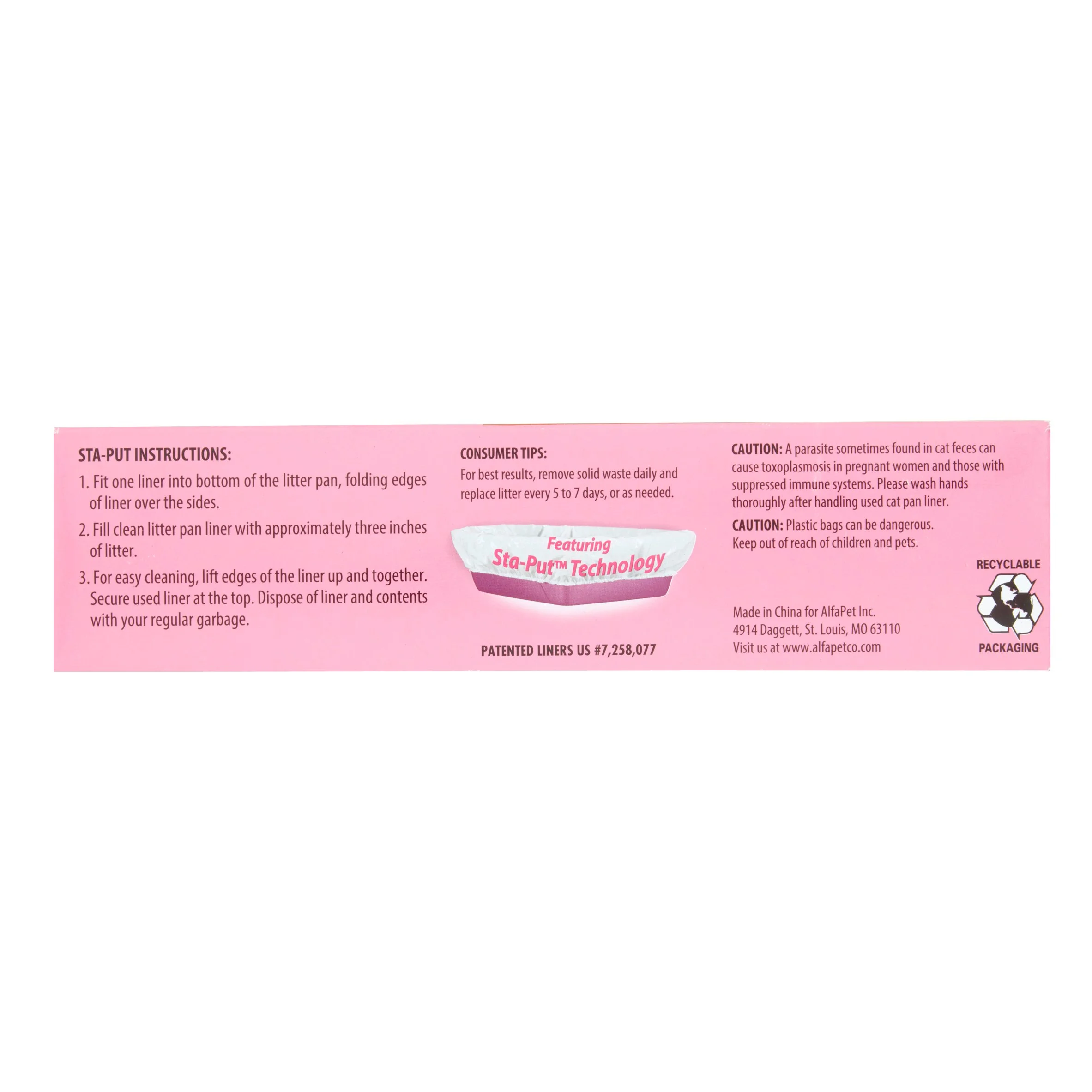 Make litter clean-up quick and easy with the help of AlfaPet kitty cat elastic cat pan liners. They are made with sta-Put technology, which a secure fit to most extra-large, giant or extra-giant litter pans. The elastic tops on these litter pan liners help fit to the cat pan. Suitable for most litter cat pans or boxes, these kitty litter liners are easy to use. Simply slip one liner into the bottom of a litter pan and fold the edges of it over the sides. Fill the litter box with approximately three inches of litter. When it is time to change the liner, lift the edges up and tie them together.