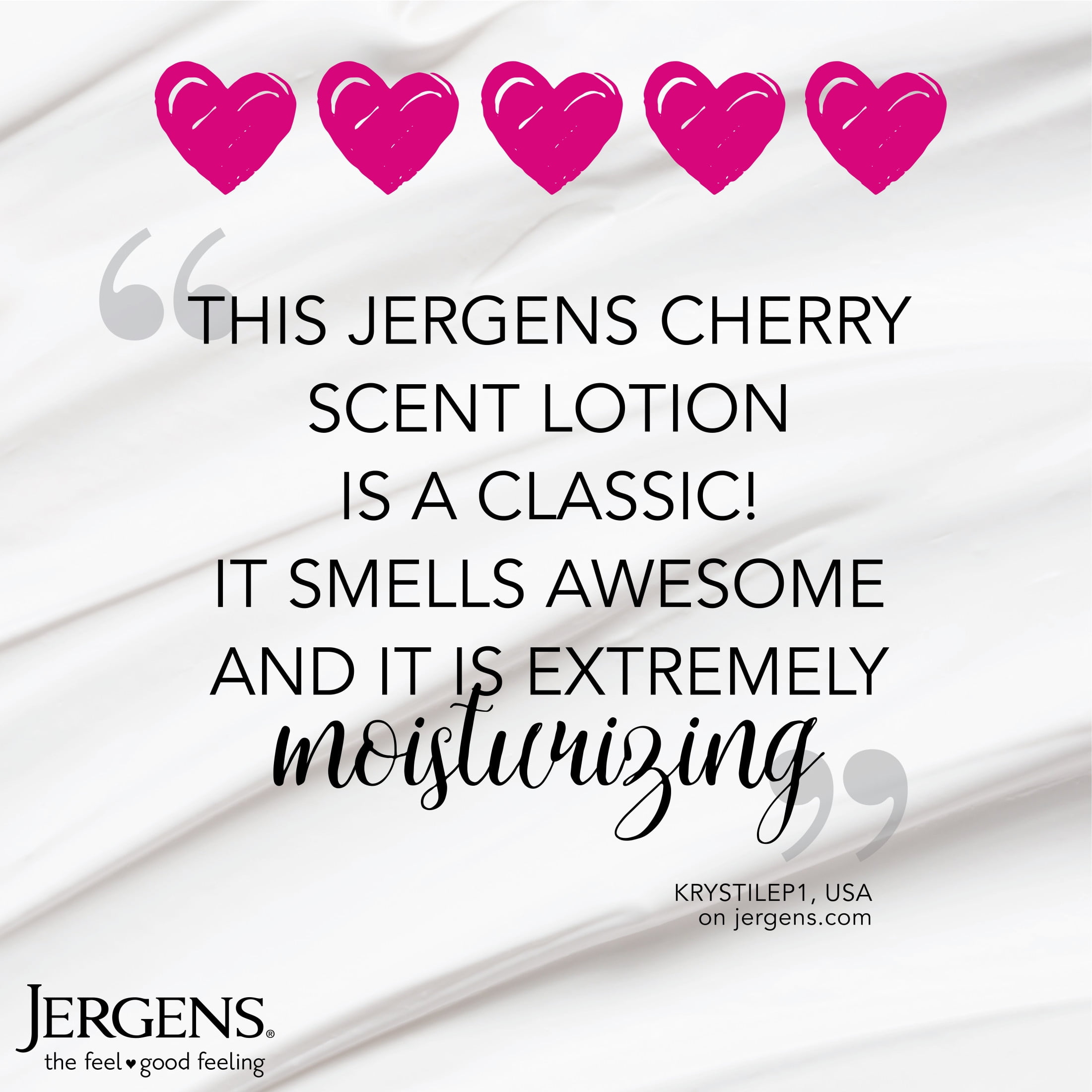 HELPS TO RELIEVE DRY SKIN – Jergens Original Scent Dry Skin Moisturizer provides dry skin with long-lasting, moisture-rich hydration LIGHT FRAGRANCE MOISTURIZER – The iconic Jergens Cherry Almond scent leaves skin lightly fragranced HELPS TO REPAIR DRY SKIN – Jergens Dry Skin Moisturizer helps to restore skin’s luminosity and visibly improve skin’s appearance and texture FORMULATED WITH HYDRATING INGREDIENTS – Combined with Jergens unique HYDRALUCENCE blend, our Dry Skin Moisturizer features nourishing hydrators, and Cherry Almond essence BEST FOR NORMAL TO DRY SKIN – Absorbs into skin for long-lasting hydration