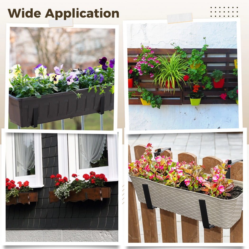 6 Pcs Planter Box Brackets, Adjustable Flower Box Holders, Heavy Duty Metal Hanging Flower Stands, Plant Box Hangers for Porch Railing Balcony Garden Fence