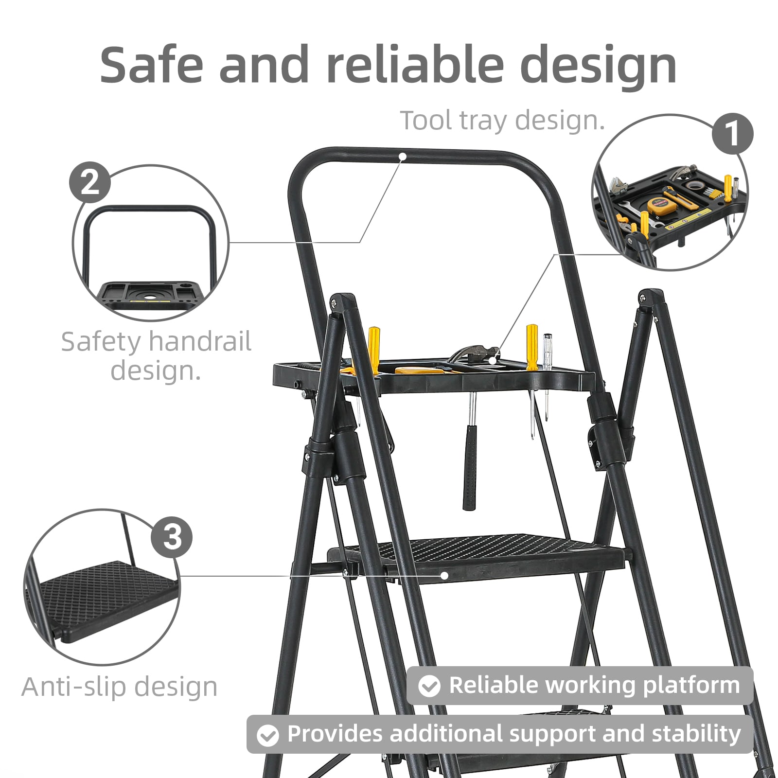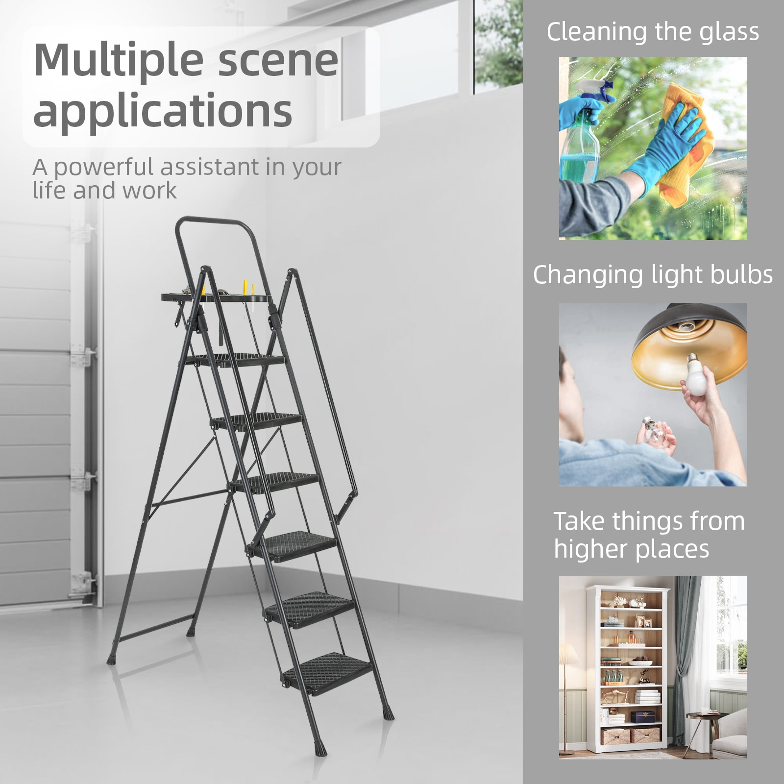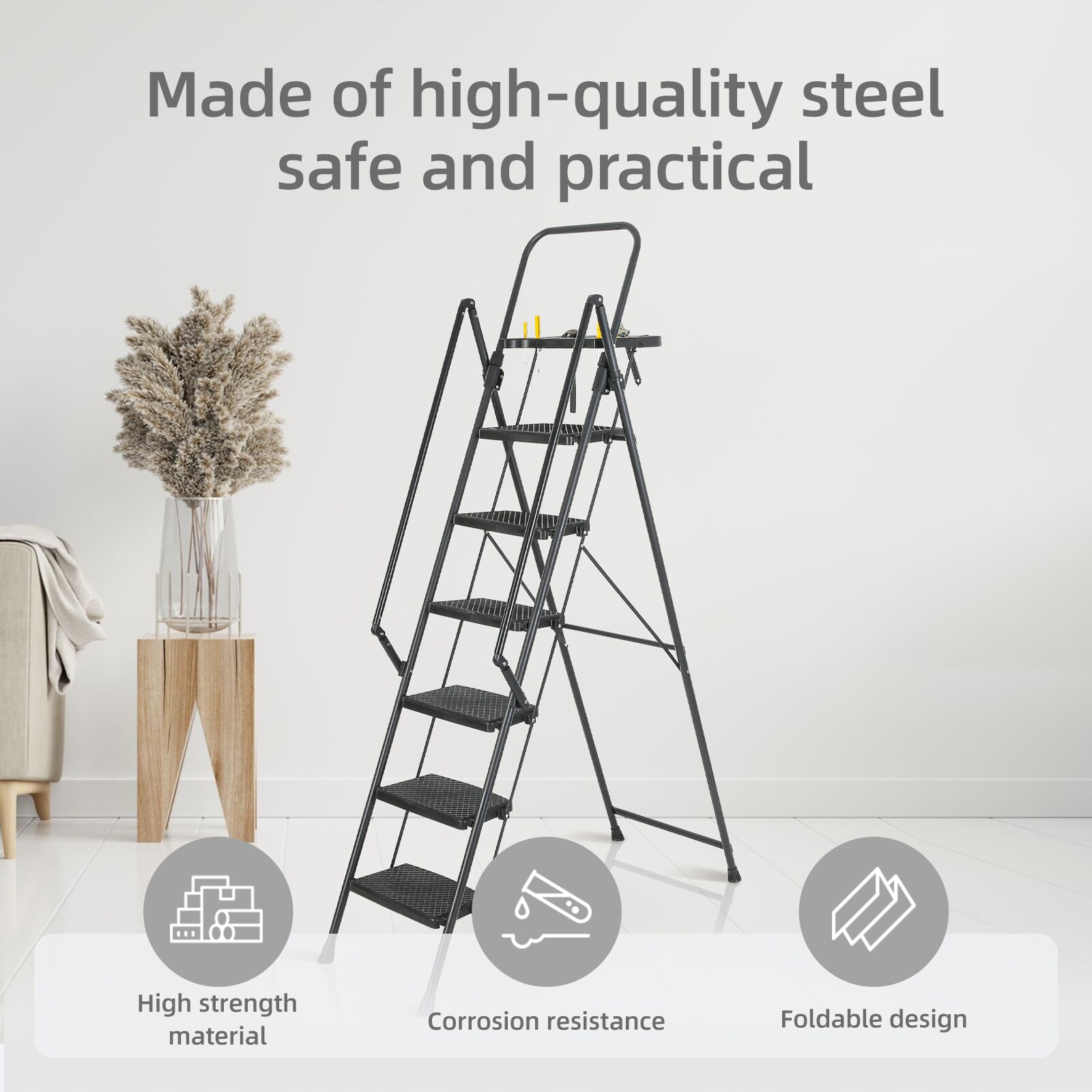 Upgrade your home with this amazing folding step stool ladder! Its versatile design makes it a must-have for any household. Whether you need to reach high shelves, perform light cleaning, or use it as a pet step stool or flower stand, this ladder has got you covered. With its non-slip safety features, enhanced stability, and comfortable design, you can use it with confidence. Plus, its portable and space-saving nature makes it easy to store and carry around. Don’t miss out on this practical and multifunctional home essential!