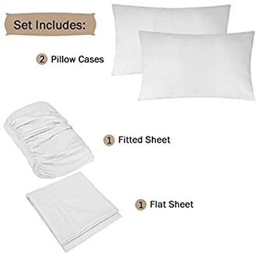 100% Egyptian Cotton Imported Queen Size 4pc Sheets Set: 1 Flat Sheet: 90″ x 102″; 1 Fully Elasticized Fitted Sheet: 60″ x 80″; and 2 Standard Pillowcases: 20″ x 30″. 100% Egyptian Cotton offers a sought-after combination of superior strength, luxurious softness, and beautiful sheen. This sheet set made by pure 100% cotton. CARE INSTRUCTIONS: Machine wash in cold water with similar colors. Tumble dry low. Do not bleach.