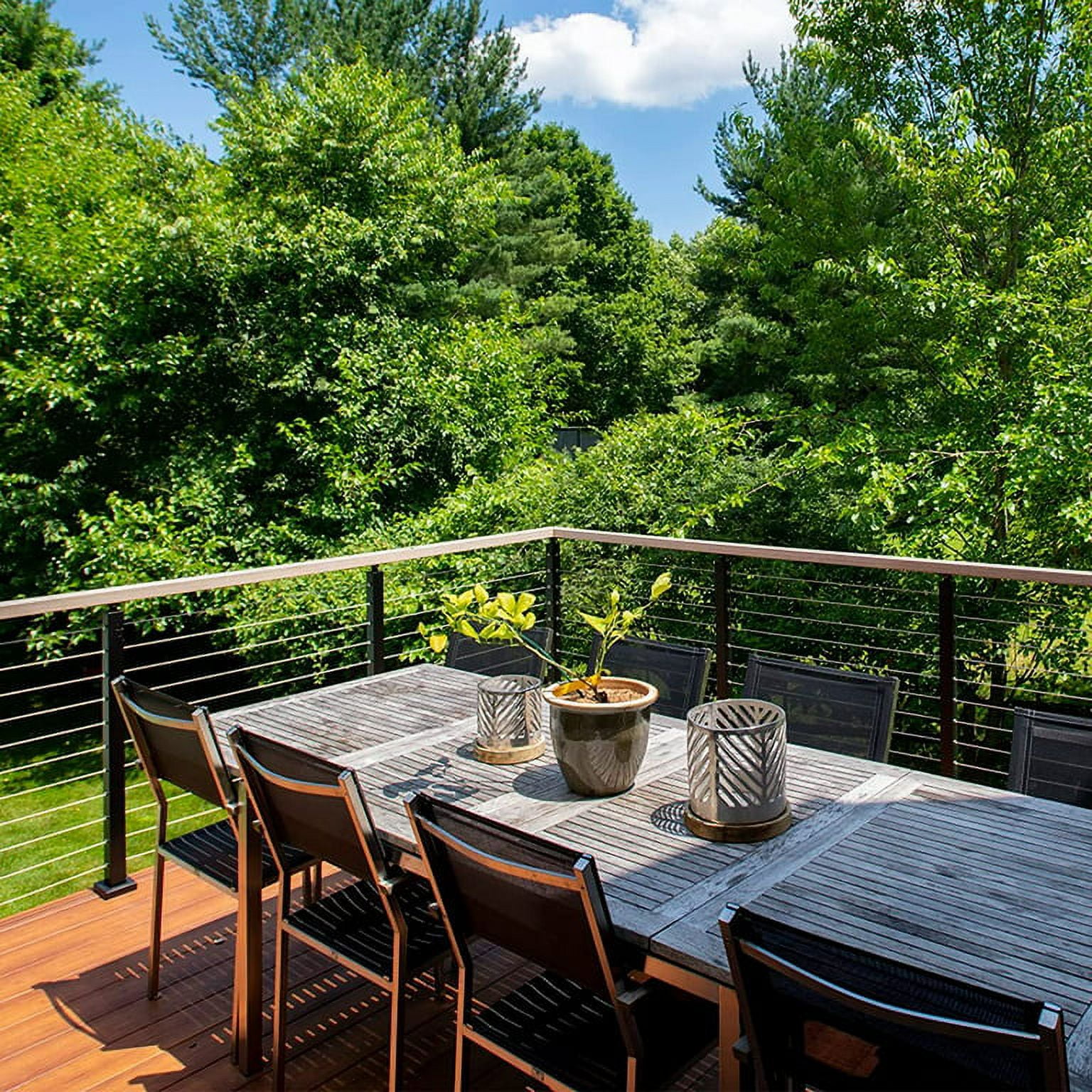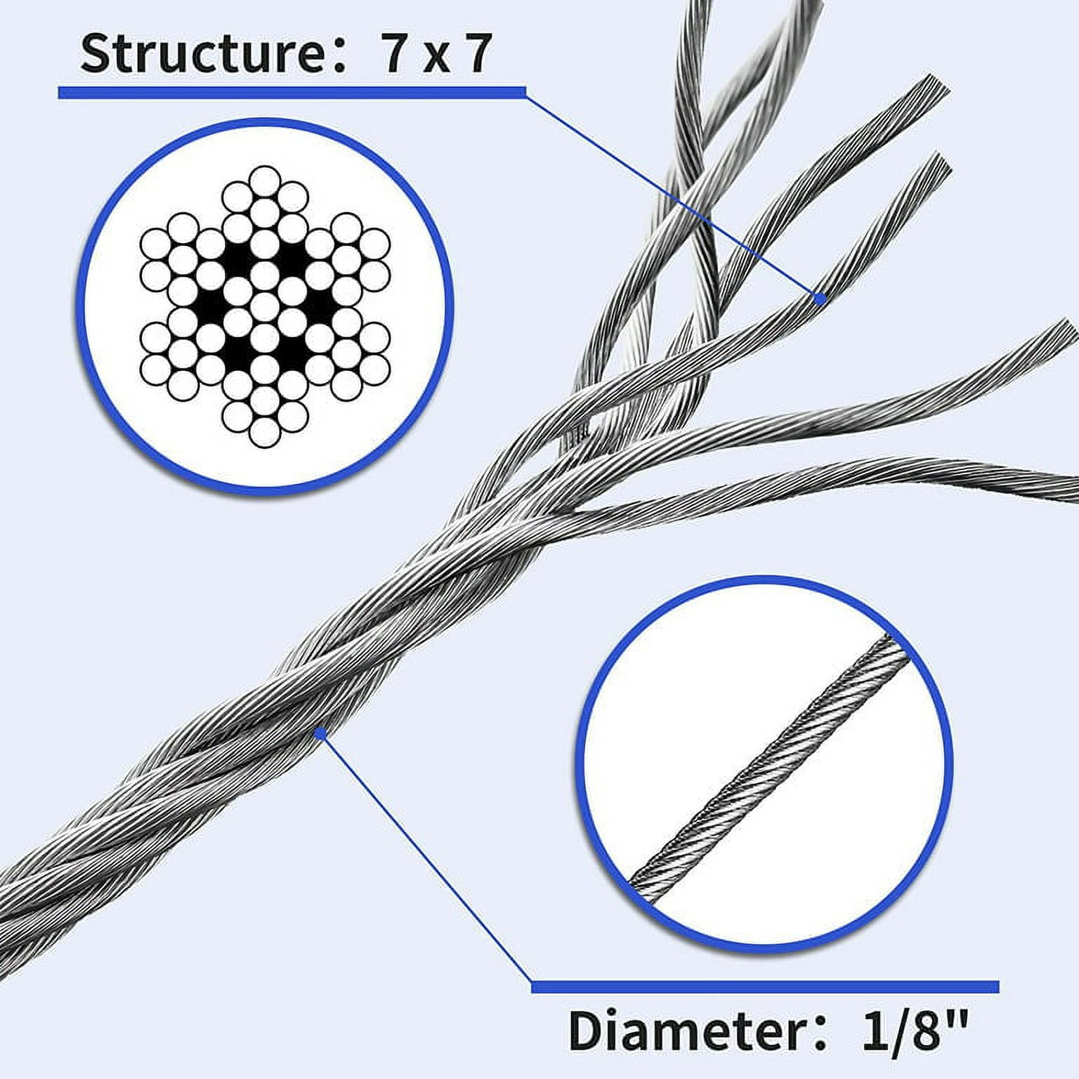 High-Quality Material. Sturdy Construction: With a breaking strength of 1800 lbs, the braided design ensures it won’t unravel after cutting and maintains its stretch over time. Wide Application: Ideal for building deck railings, wire fences, supporting light strings, shade sails, and more. Smooth Surface: The strands are neatly wound together for a burr-free, smooth surface, making it safe to handle and easy to install. Package Includes: Includes a 600ft roll of cable that can be cut to any desired length. Specifications: Color: Silver. Material: 316 Stainless Steel. Length: 600ft. Diameter: 1/8 in. Strands Construction: 7 x 7. Size: 8.1 x 2.8 x 1.4 inches. Weight: 11.2 ounces.
