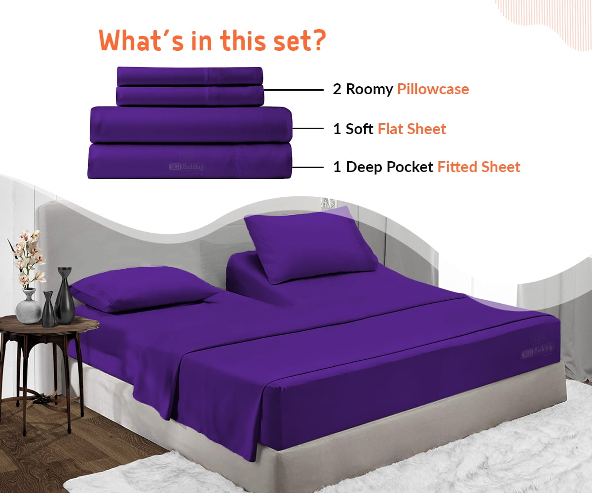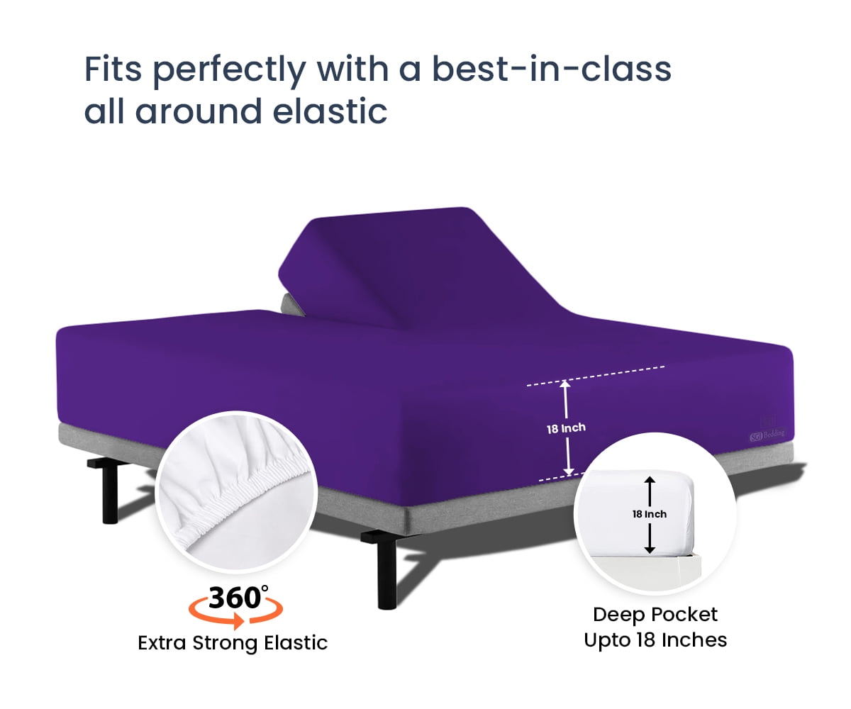 600TC Top Split Bed Sheet Set Egyptian Cotton 15″ Deep 30″ King Purple Soft Smooth 4 Piece Sheets