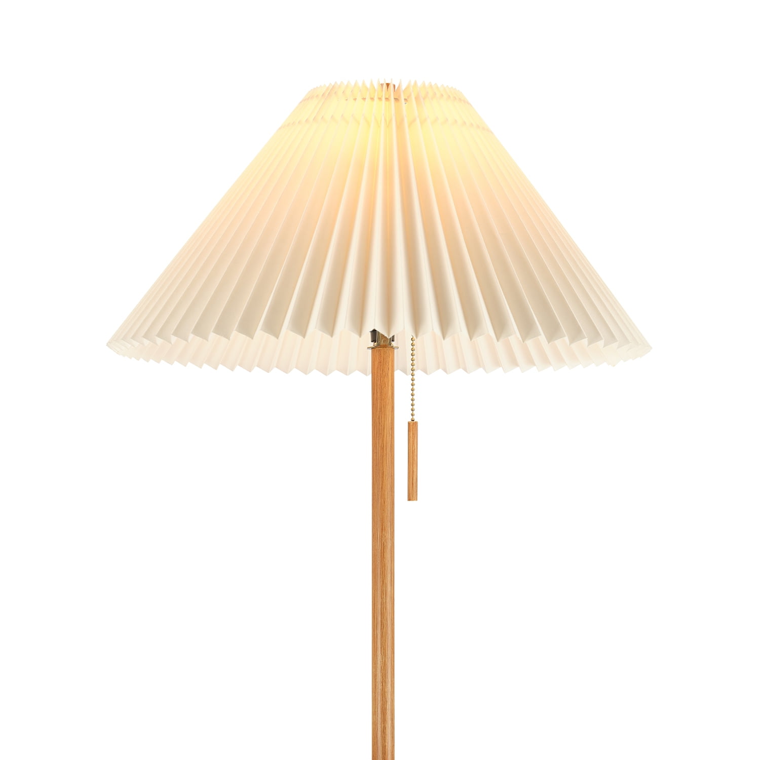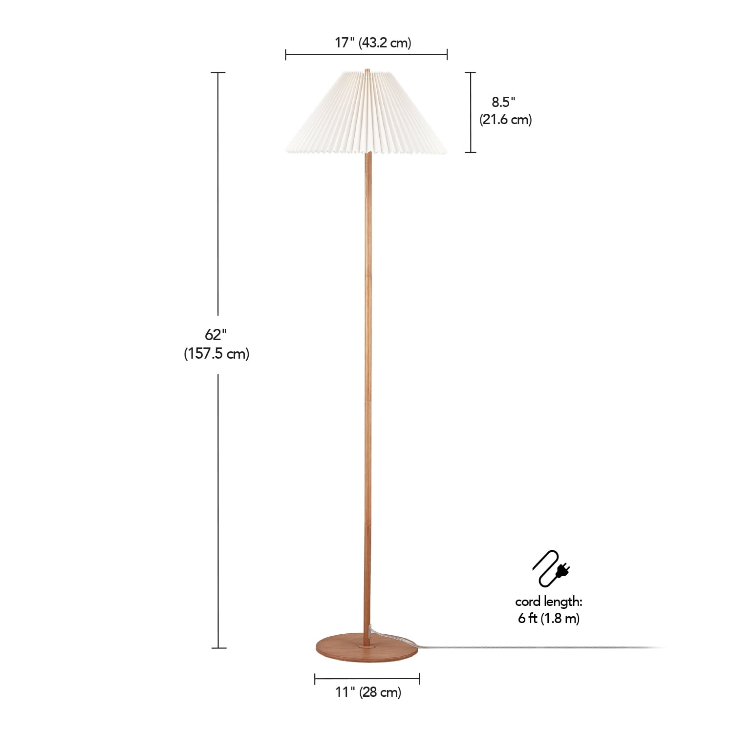 62″ Wood Toned Finish Floor Lamp with Pleated Fabric Shade