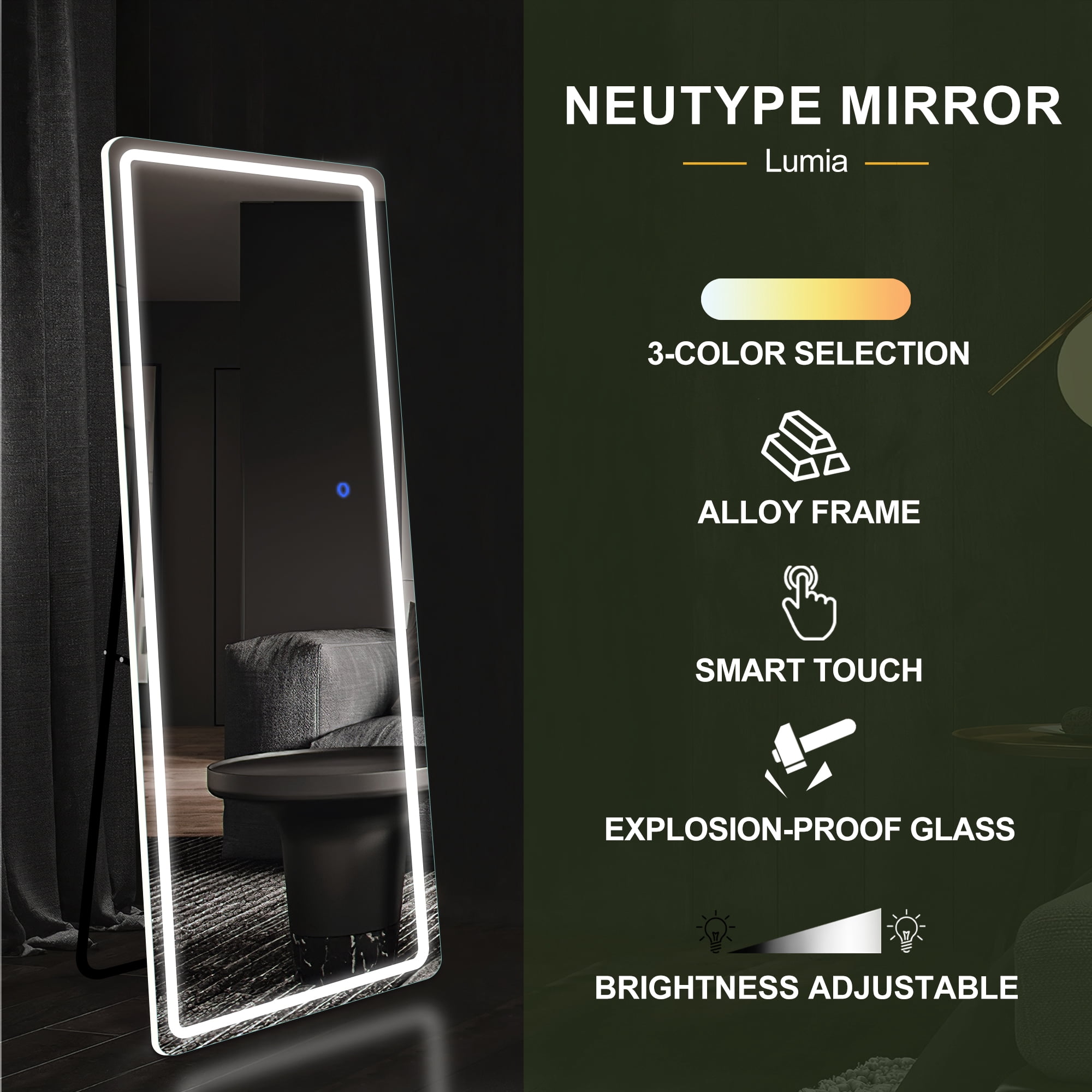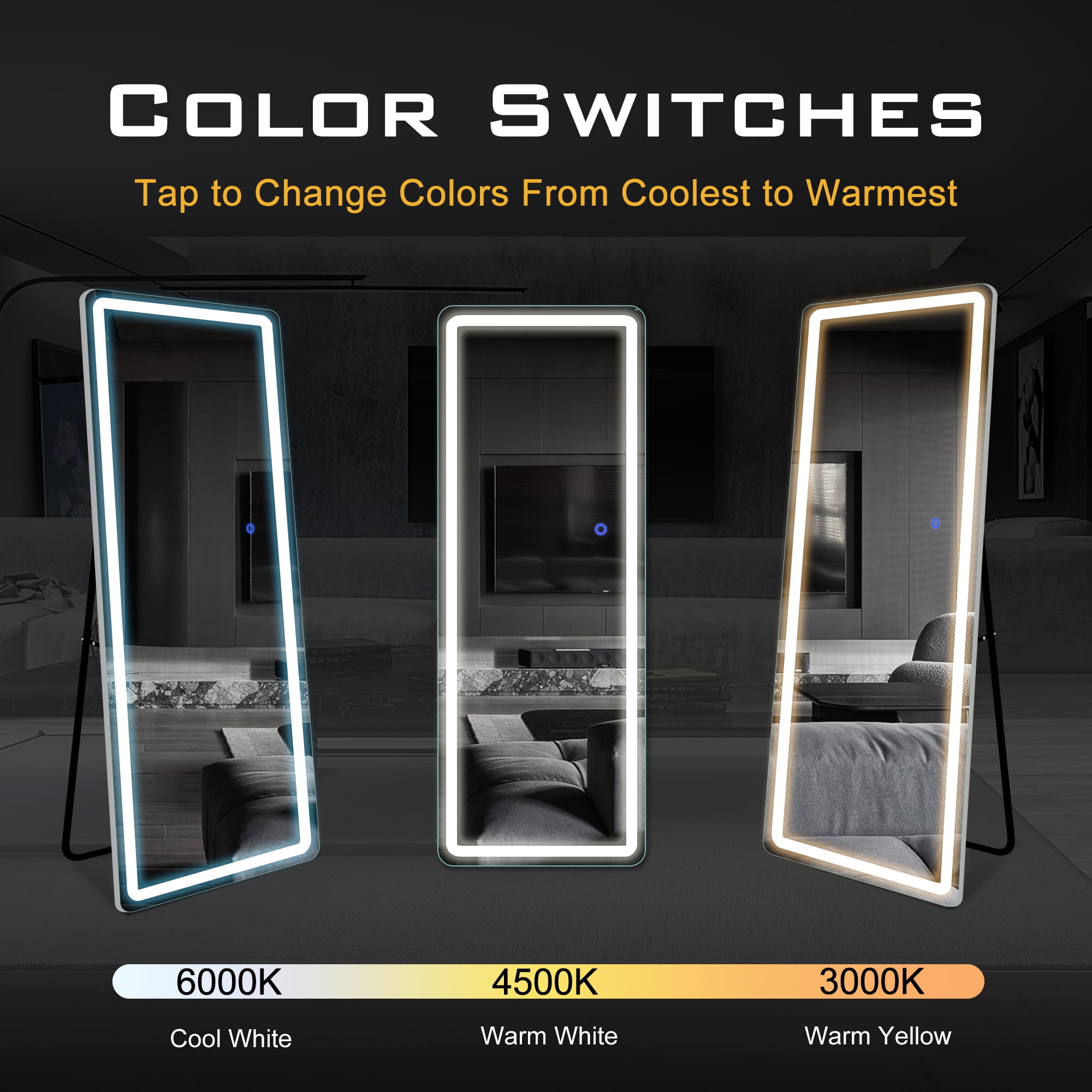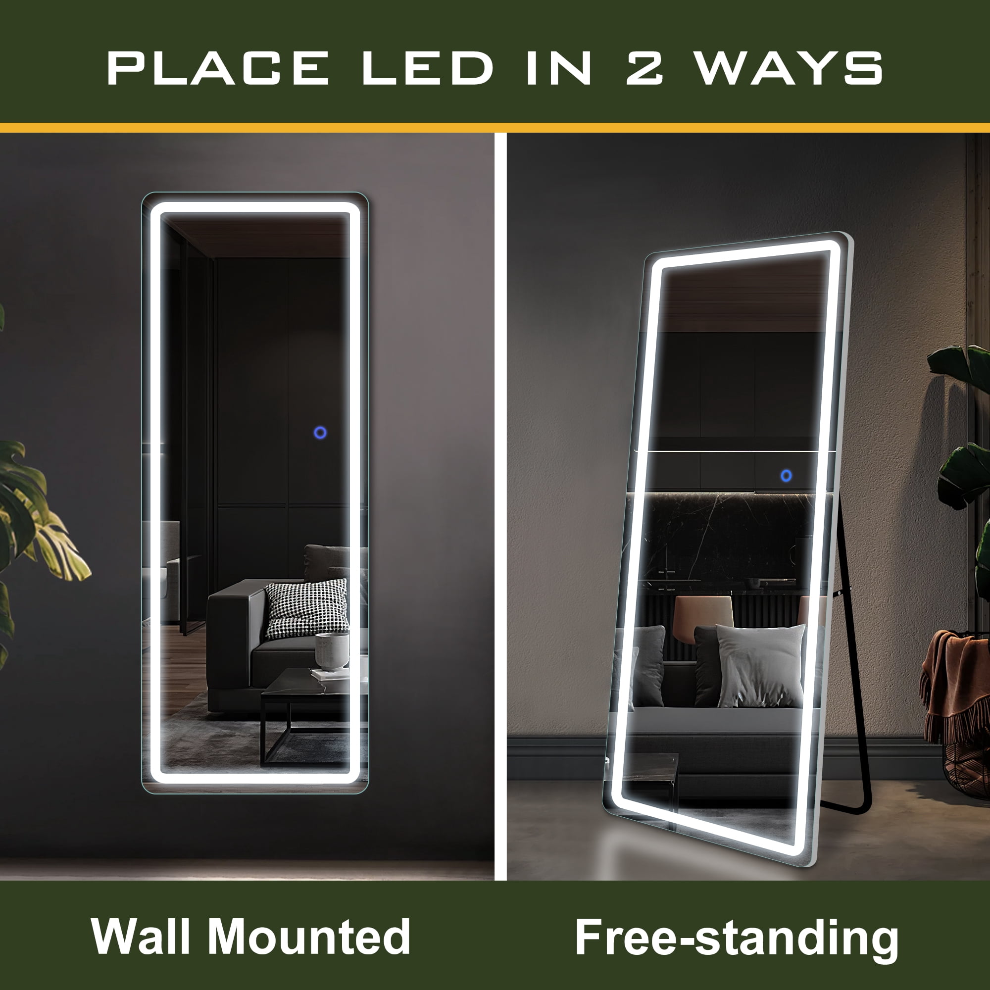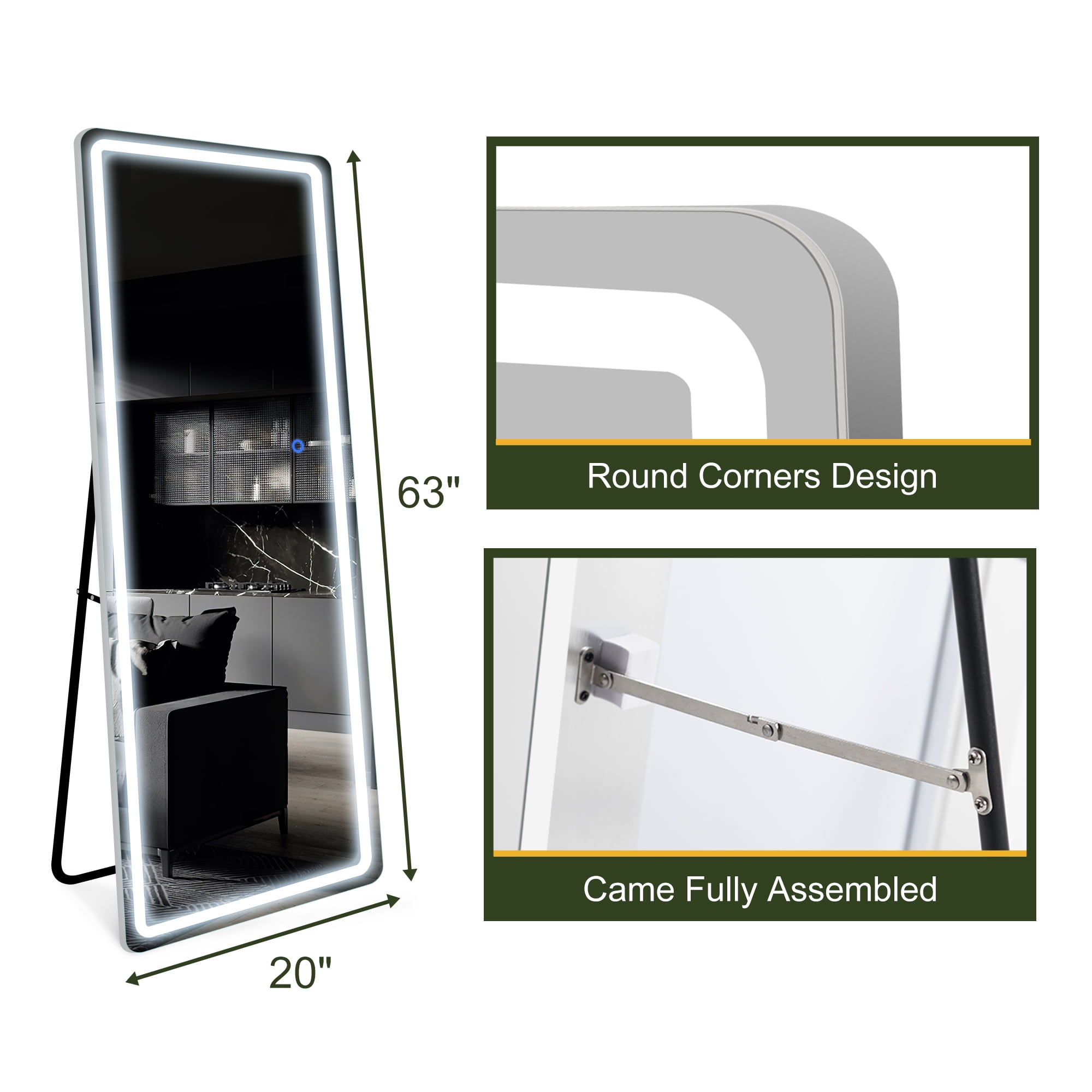 63″x20″ Modern Rectangle LED Full Length Mirror Floor Mirror with Bracket,Silver