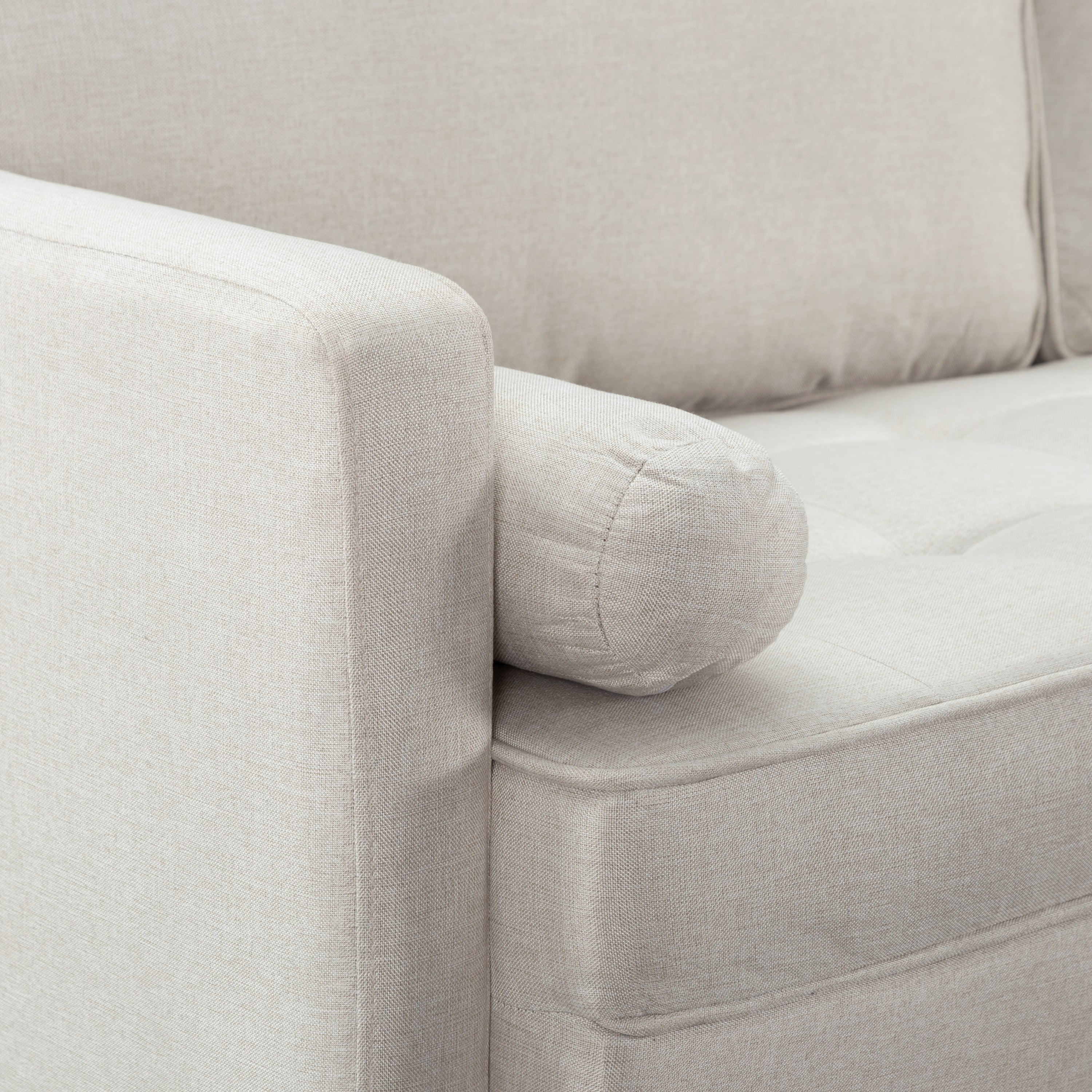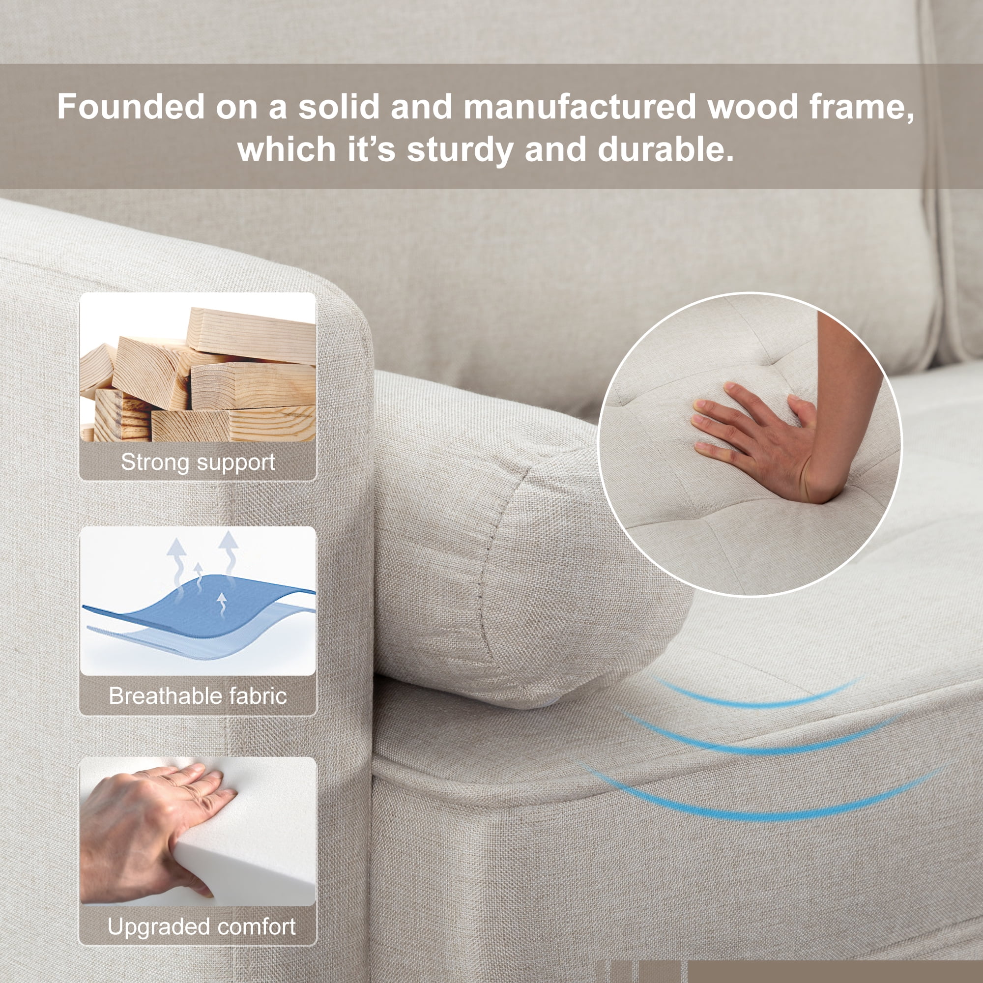 Founded on a solid and manufactured wood frame,which it’s sturdy and durable.Detachable backrest,back cushion is removable for easy cleaning,ensuring a tidy sofa. Solid tapered wood legs,with non-slip pads on the bottom of legs to ensure stability and avoid scratching the floor. Vacuum packing. Please press and pat the cushions after opening the package,wait to rebound after 72 hours at least for your perfect use.