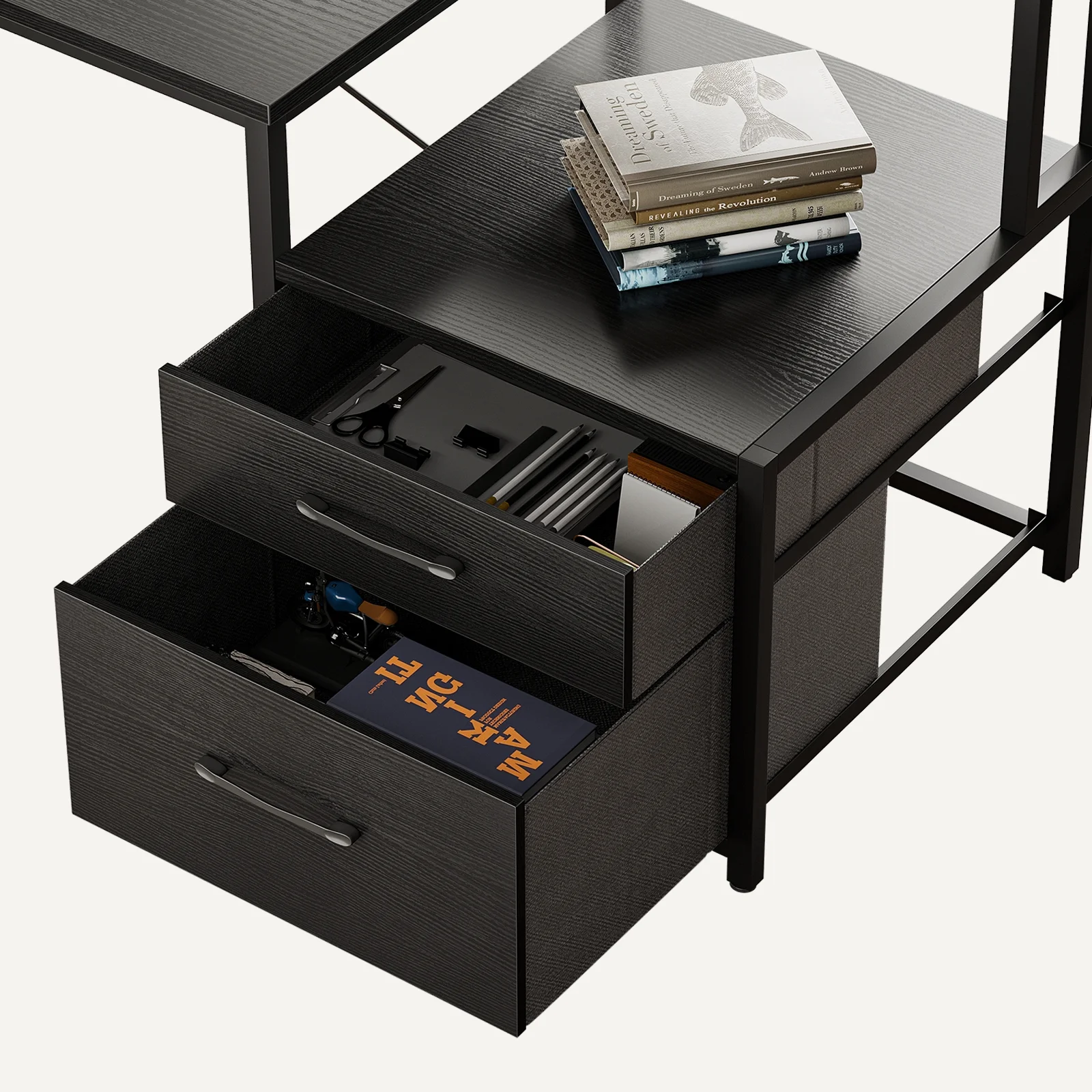 LED Lights & Power Outlets Storage Drawer & File Drawer Full Monitor Shelf & Printer Space Extra Leg Room Product Dimensions: 39.4″D x 67.8″W x 35″H Color: Black Style: Modern Base Material: Metal Special Feature: Reversible Room Type: Office, Dormitory, Bedroom, Living Room Recommended Uses For Product: Drafting, Working, Writing, Gaming Age Group: Adult
