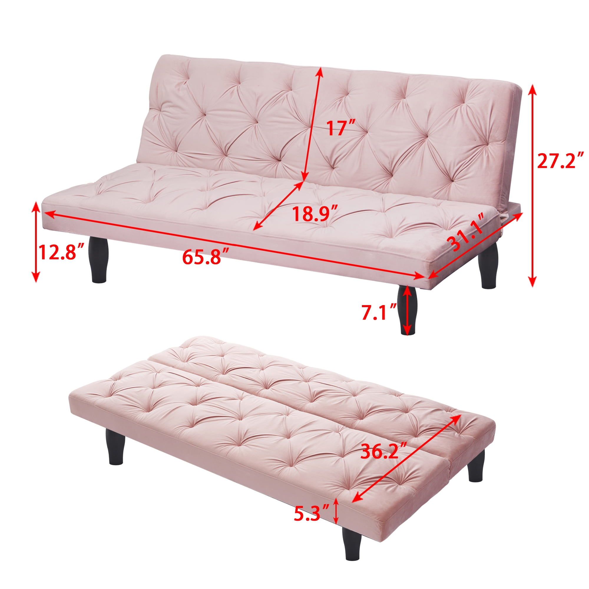 Product Type: Futon Sofa Bed Material: Velvet Products Size (L*W*H) : 66” x 31” x 27”H, Weight: 50 lbs