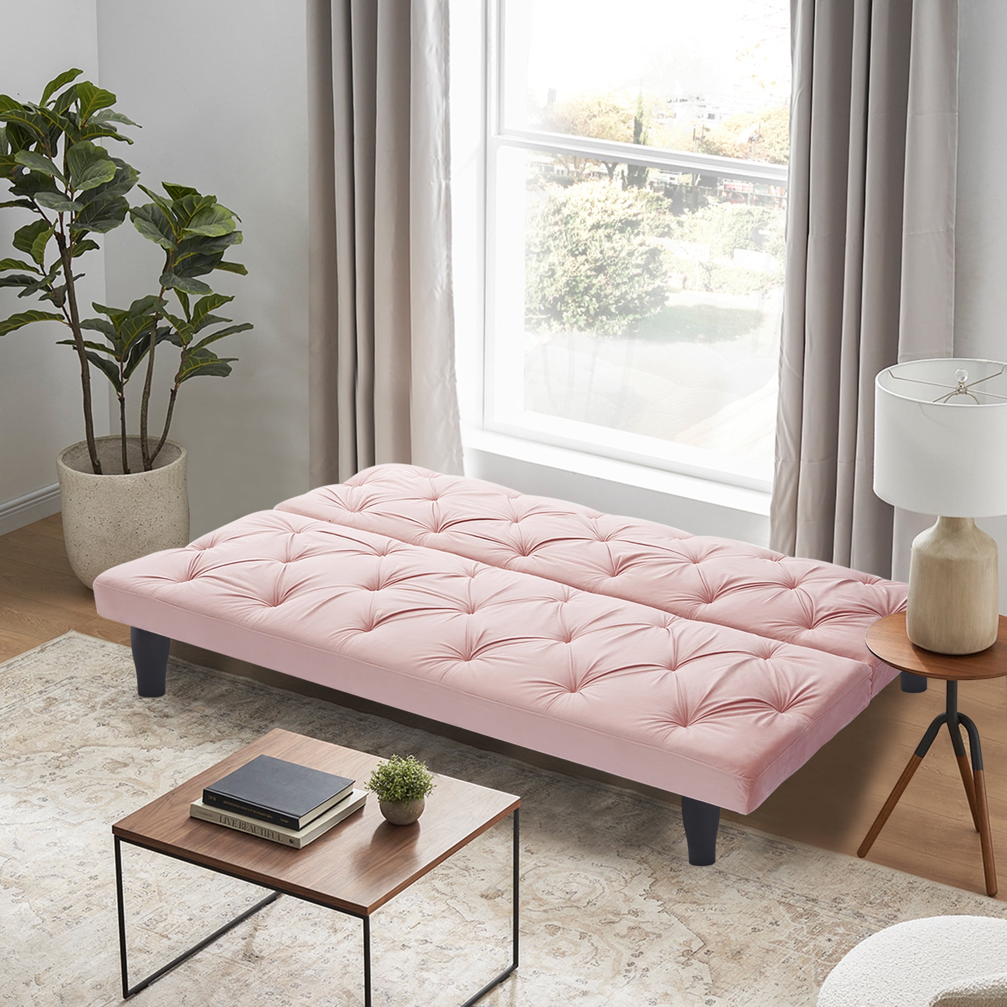 1: Fashion Appearance: This sofa is upholstered in velvet fabric, tufted back and seat, evenly distributed stitching and hand-pulled points for a more stylish look. 2: Adjustable gears: 3 adjustable positions provide you with different comfort levels, you can sit or lie down, if you want to watch TV in the living room, you can adjust the backrest, use the adjustable backrest to switch from sofa to sofa in seconds A comfortable bed with an adjustable backrest can meet the different needs of your life, ready for overnight guests. 3: Strong and durable: The sturdy wood frame is wrapped in supportive foam and durable velvet fabric, providing excellent support for this sofa sofa, which can hold up to 500 pounds. 4: Comfortable sitting feeling: The seat cushion is filled with high elastic foam and velvet fabric filling, which provides comfortable support for the body when sitting down, and can quickly recover when you get up. 5: Easy to Assemble: All parts can be easily assembled in just a few minutes, please refer to the installation instructions for details. 6: Fit for any scene: This sofa can be perfectly matched with any style of home decor. The fresh look brings comfort to your living space and joy to your mood, it can be used in any apartment, studio, living room, bedroom.